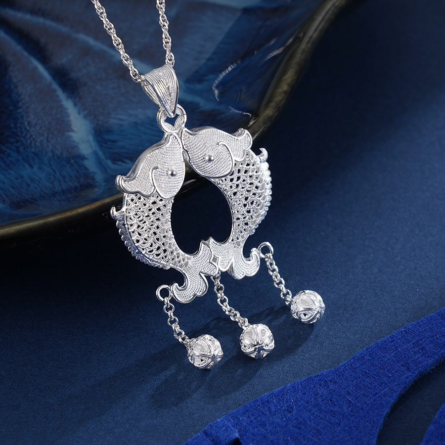 【寓意】:以银花丝工艺,打造一枚“天作之合”吊坠。以一丝一线,描摹一朝一夕的浪漫。