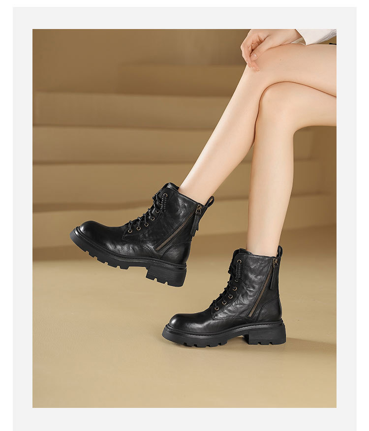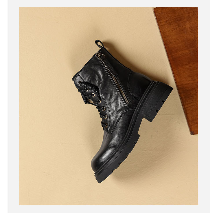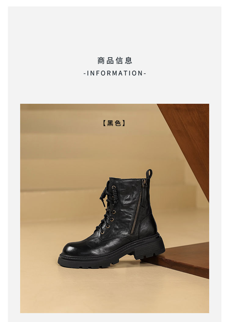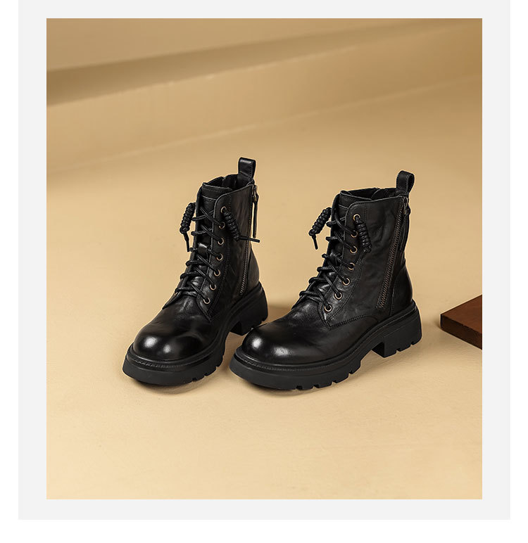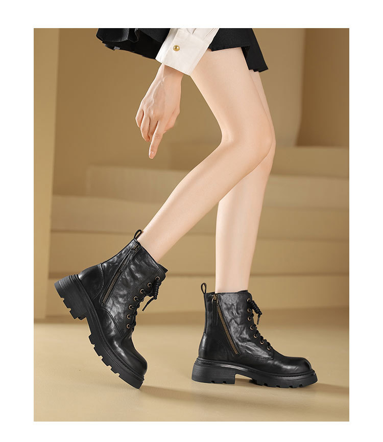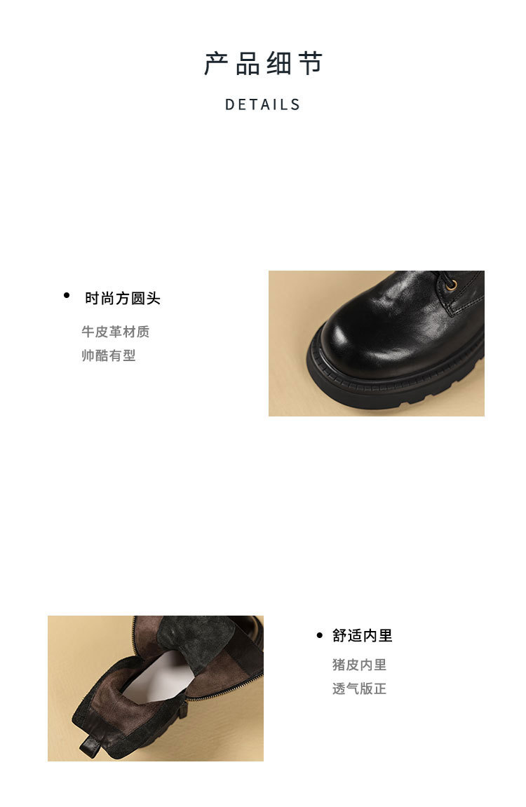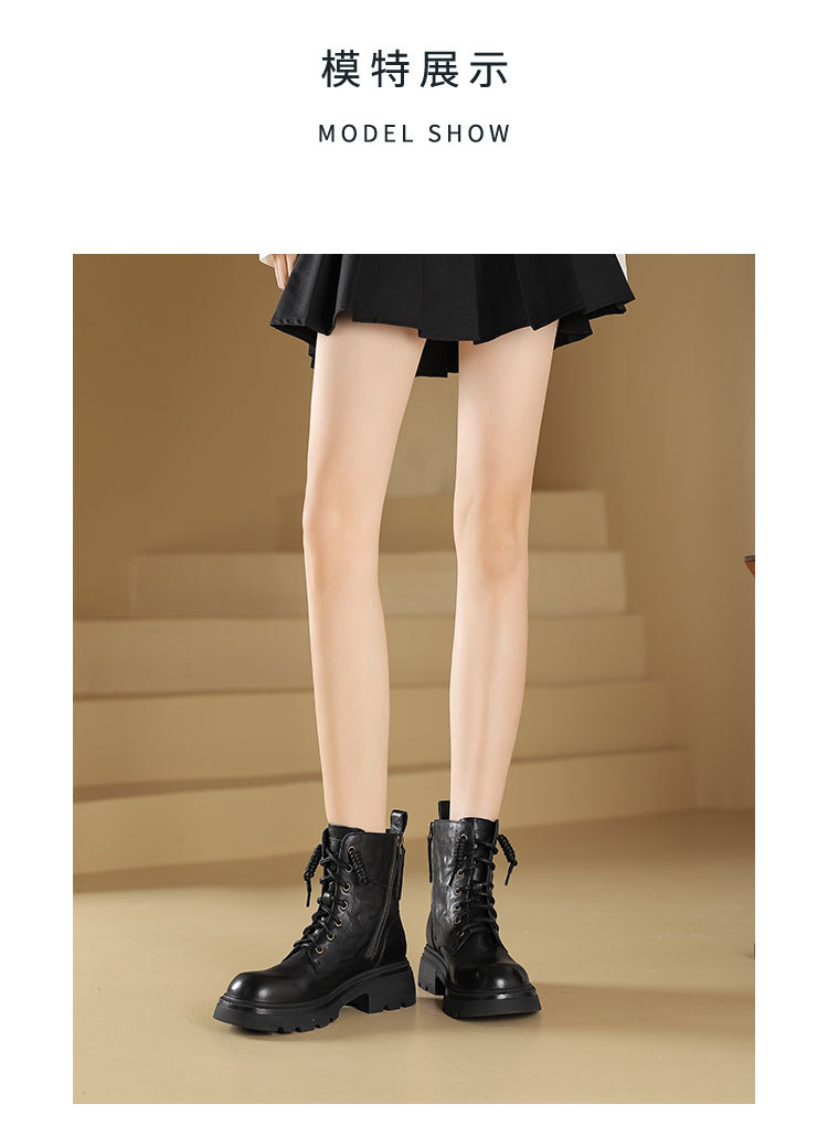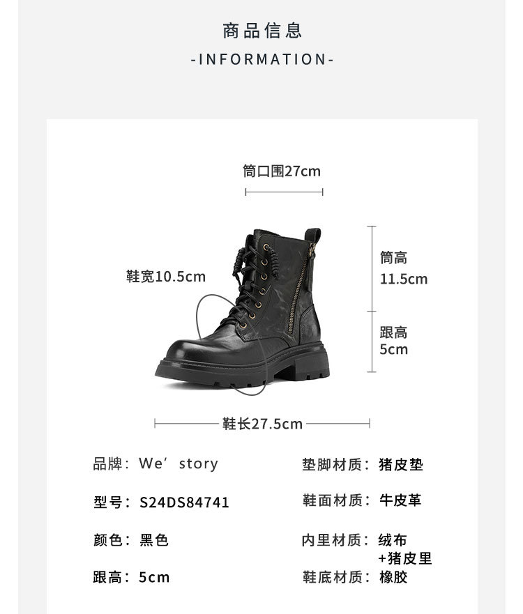 westory2024年秋冬新款优雅风厚底粗跟百搭短靴马丁靴S24DS84741