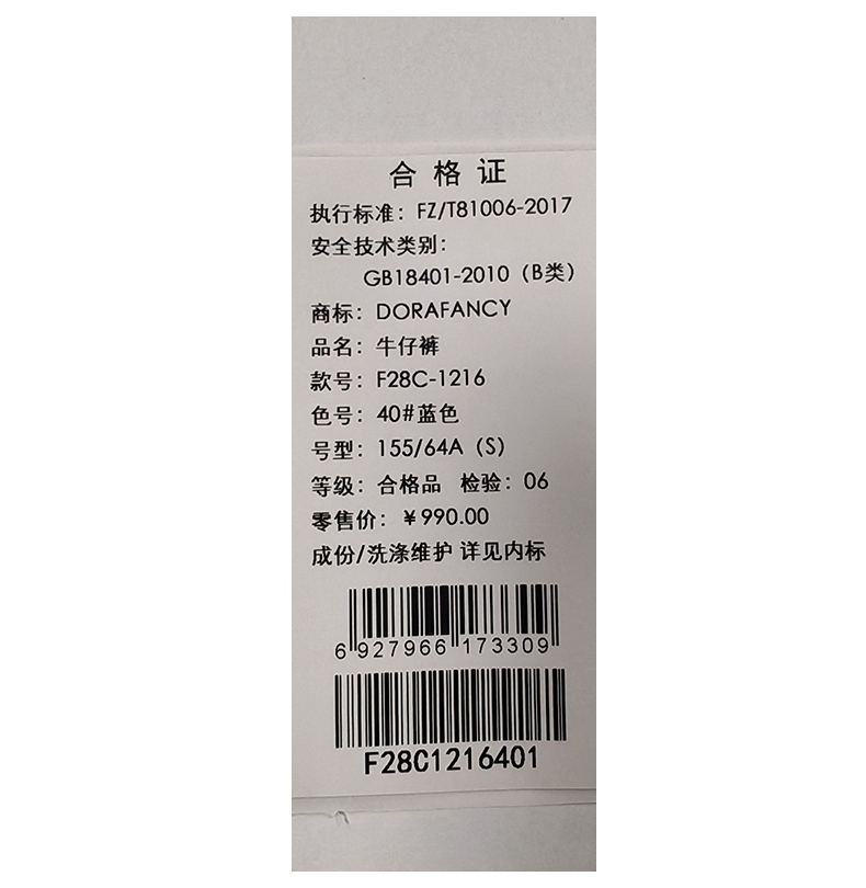 朵拉梵西牛仔裤F28C1216