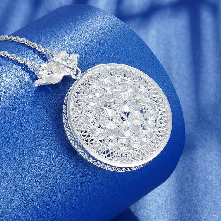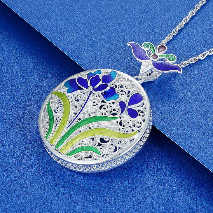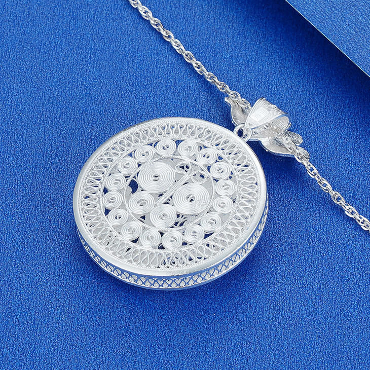 【寓意】:银丝为骨,勾勒出吊坠的基本轮廓;繁花为肉,为其注入了生命的活力。非遗银花丝工艺的加持,让吊坠在细节之处尽显精致。