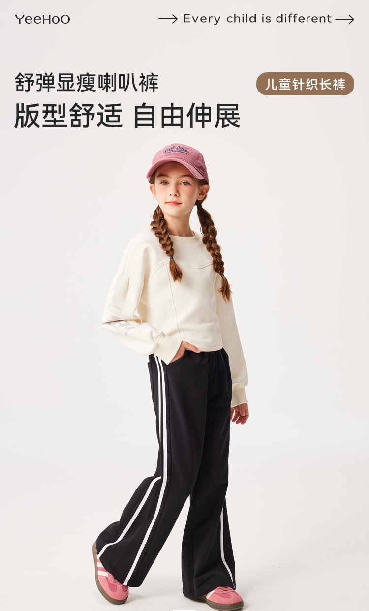 【英氏】【110-170】女童春秋裤子阔腿长裤