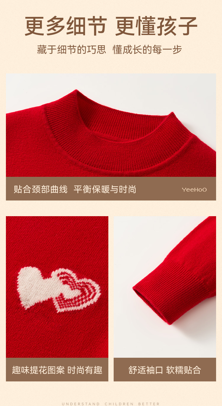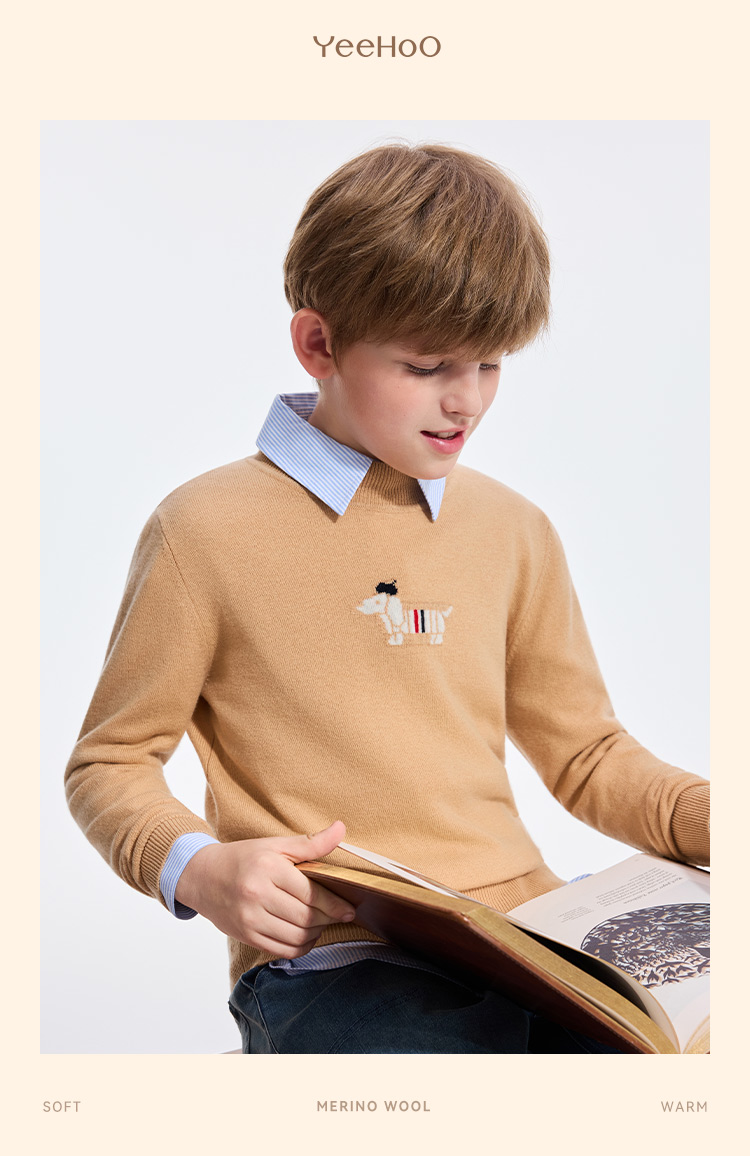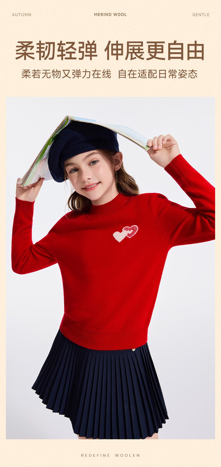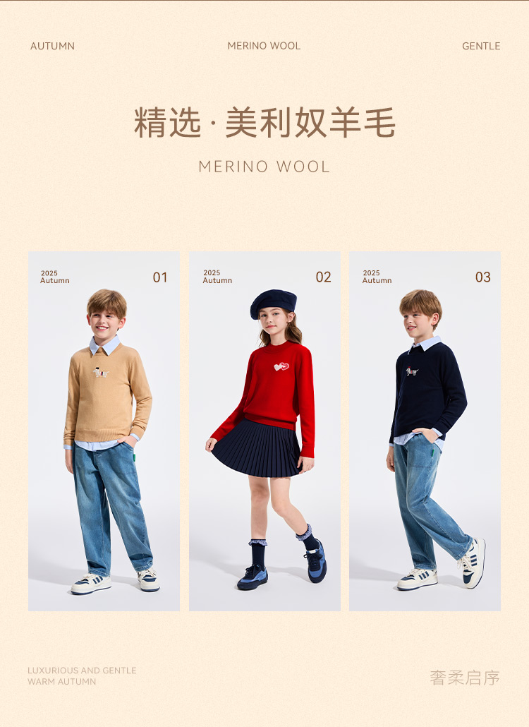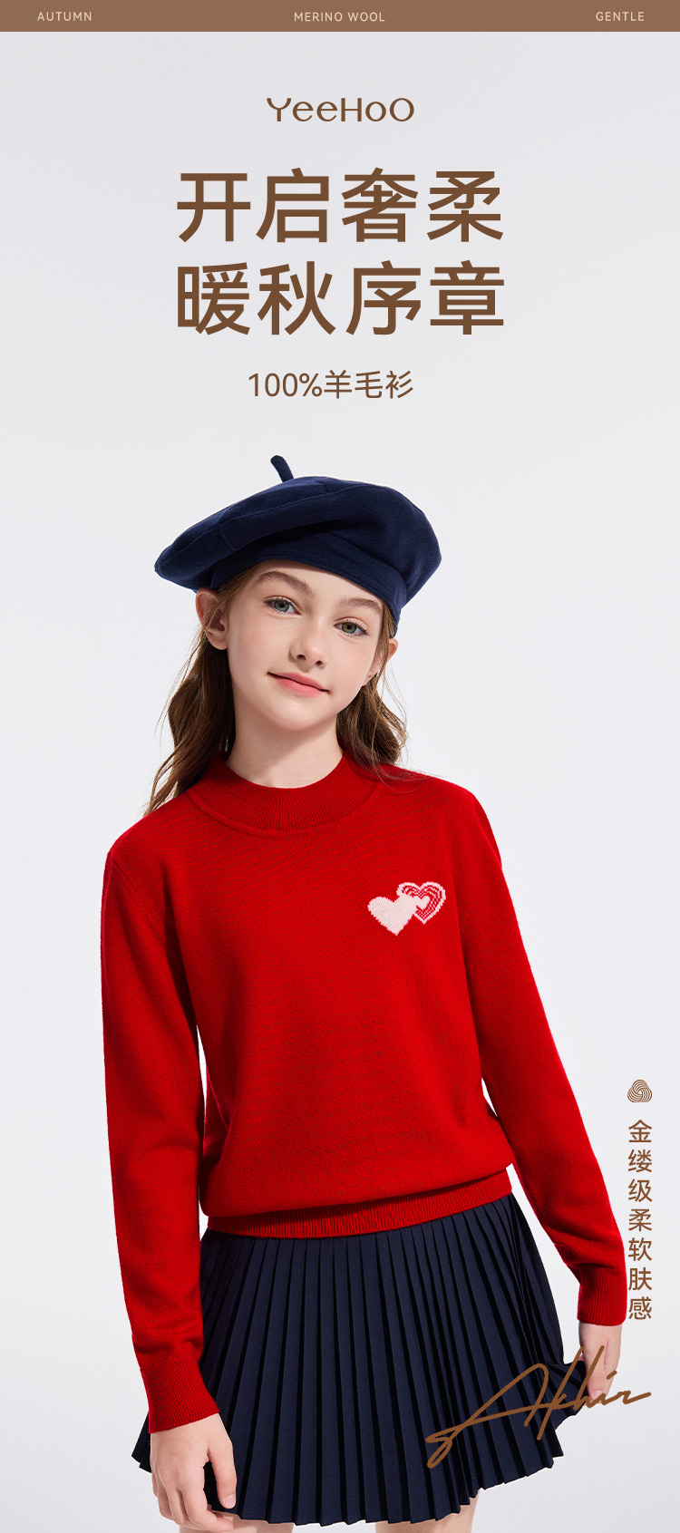 【英氏】【100%绵羊毛】【110-150】男女童秋冬羊毛衫针织衫
