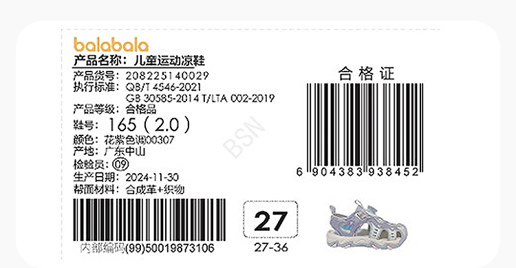巴拉巴拉童鞋儿童运动凉鞋女童鞋子透气2025夏新款包头溯溪鞋防滑