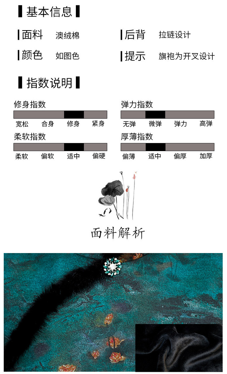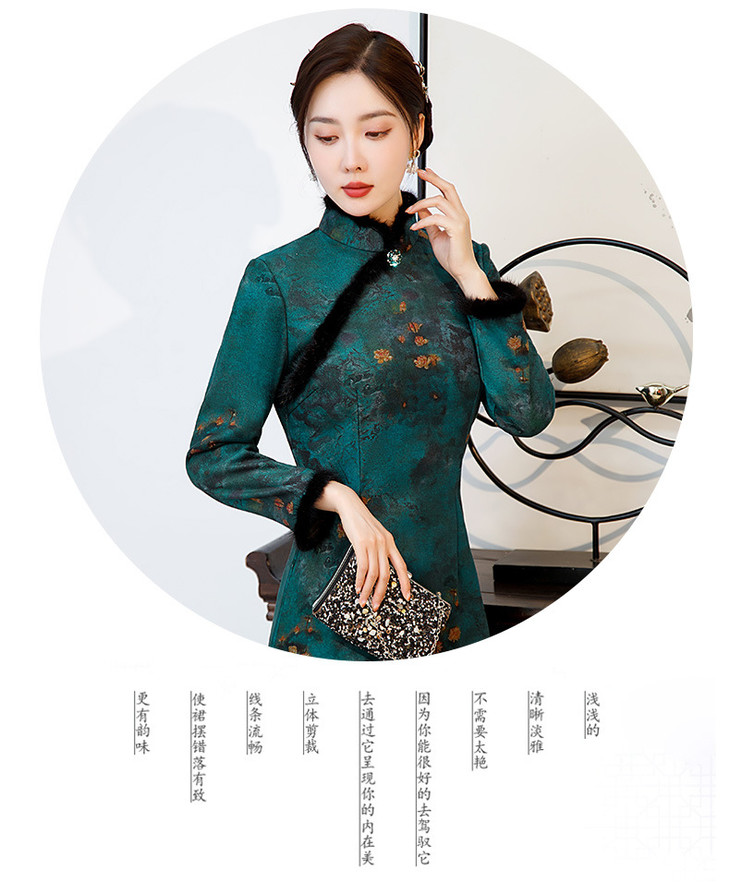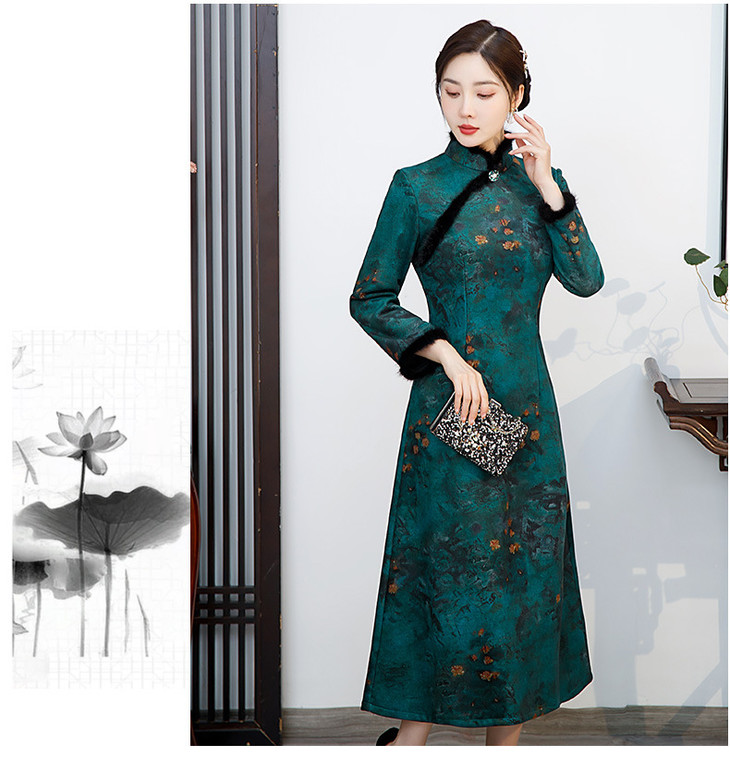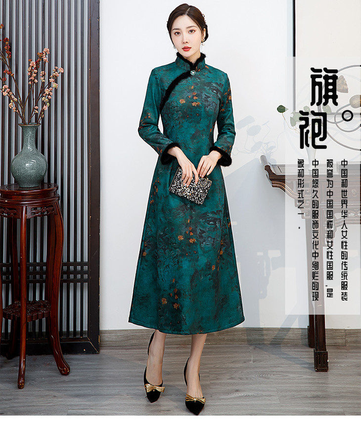 冬季加绒加厚保暖旗袍大摆裙,日常改良优雅大码修身显瘦减龄XS857