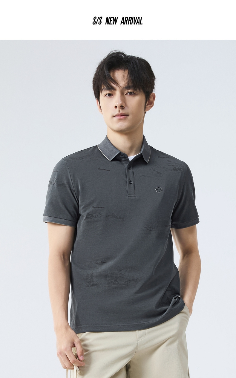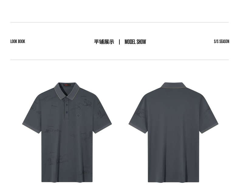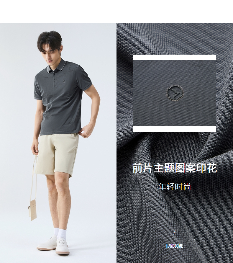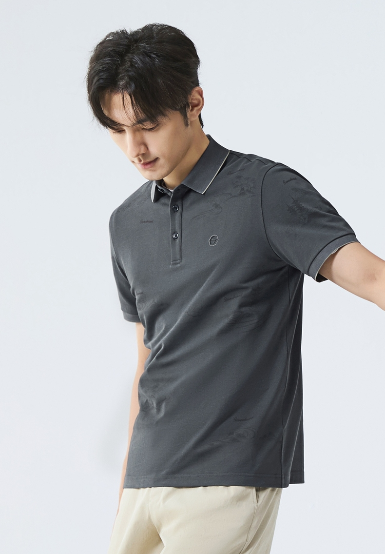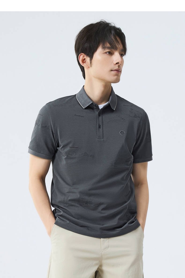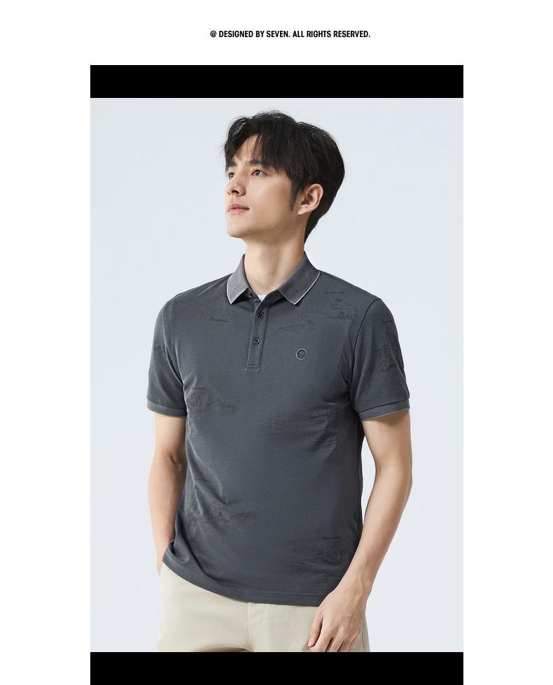 【国风图案polo衫/凉感】柒牌短袖POLO衫男夏季新款印花翻领上衣128T71320