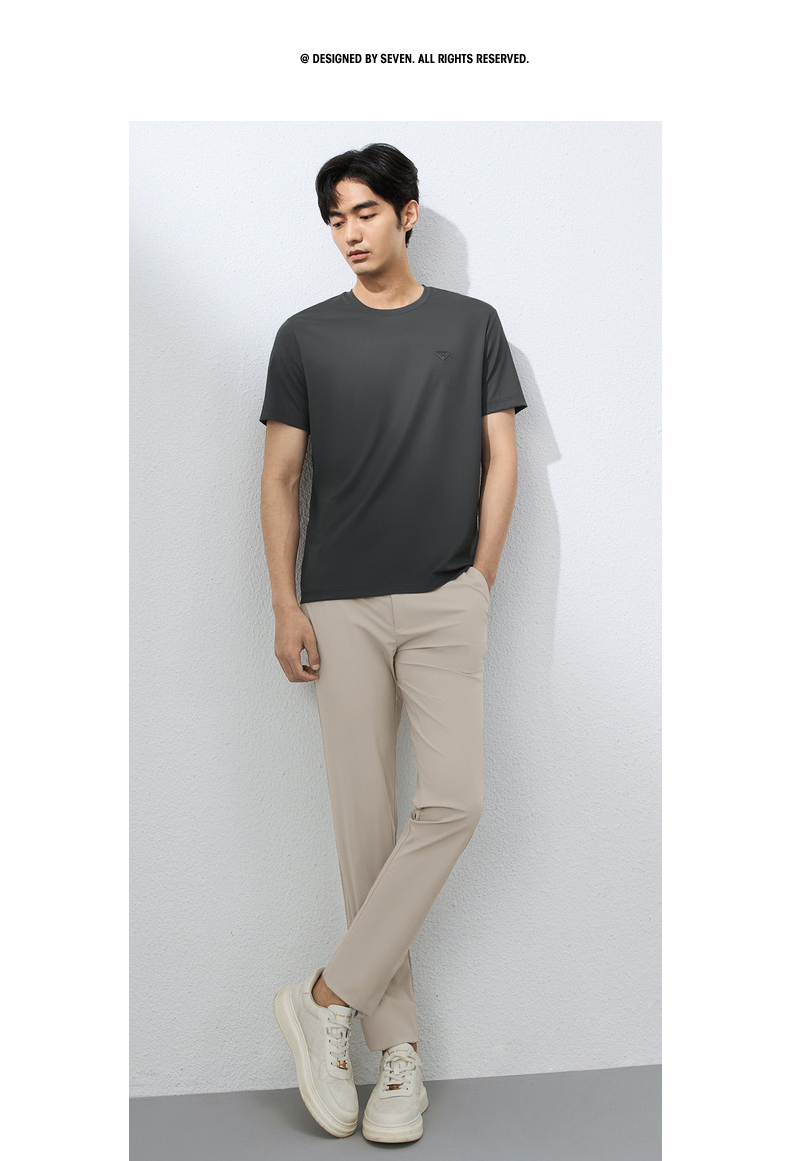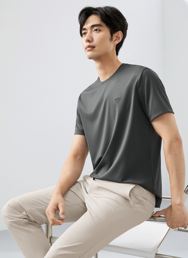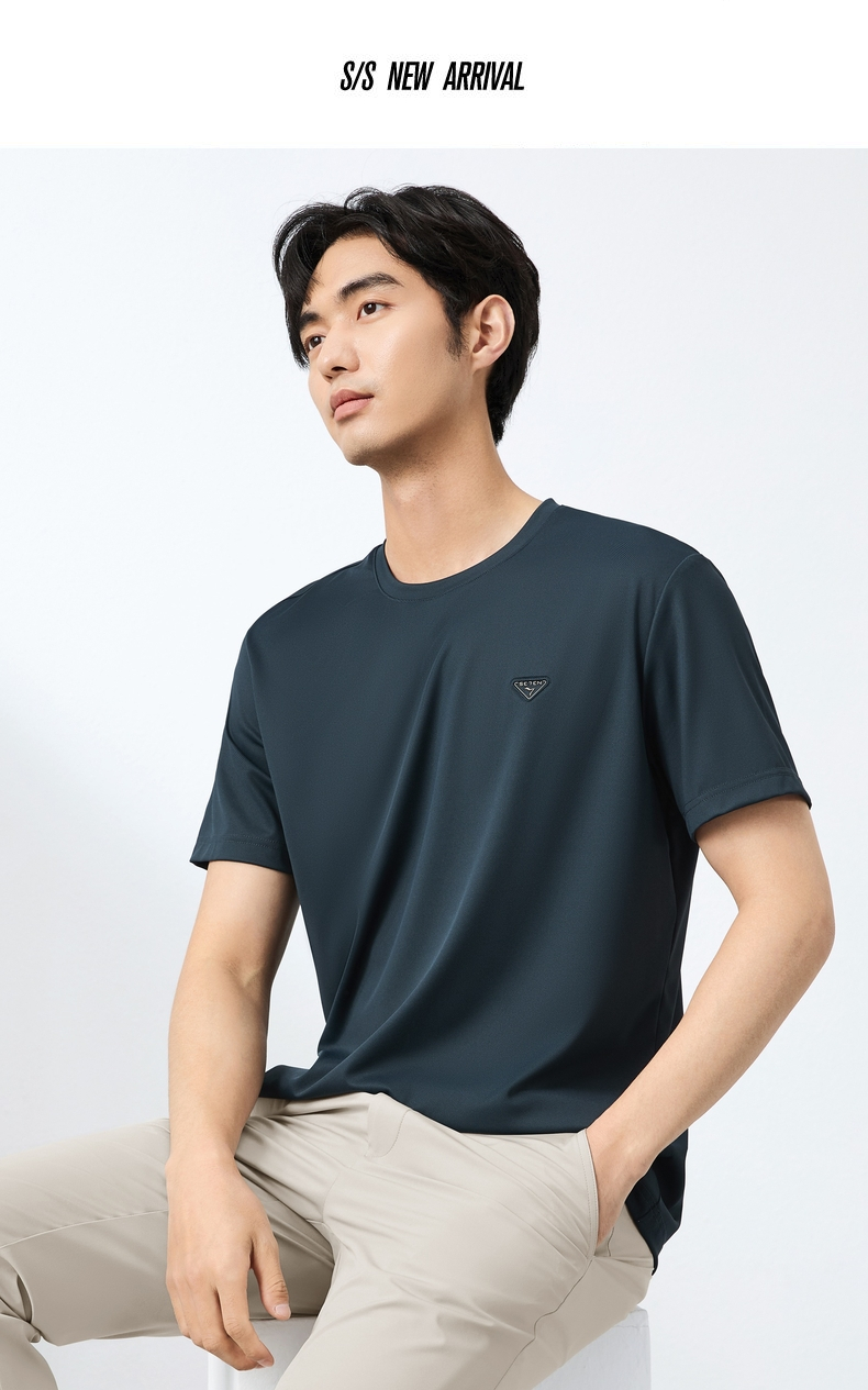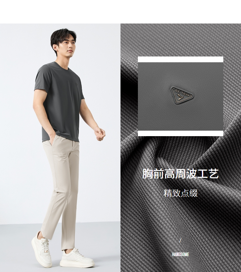 【瞬间凉感】柒牌男士短袖T恤2025夏季薄款时尚休闲斜纹圆领体恤128T70910