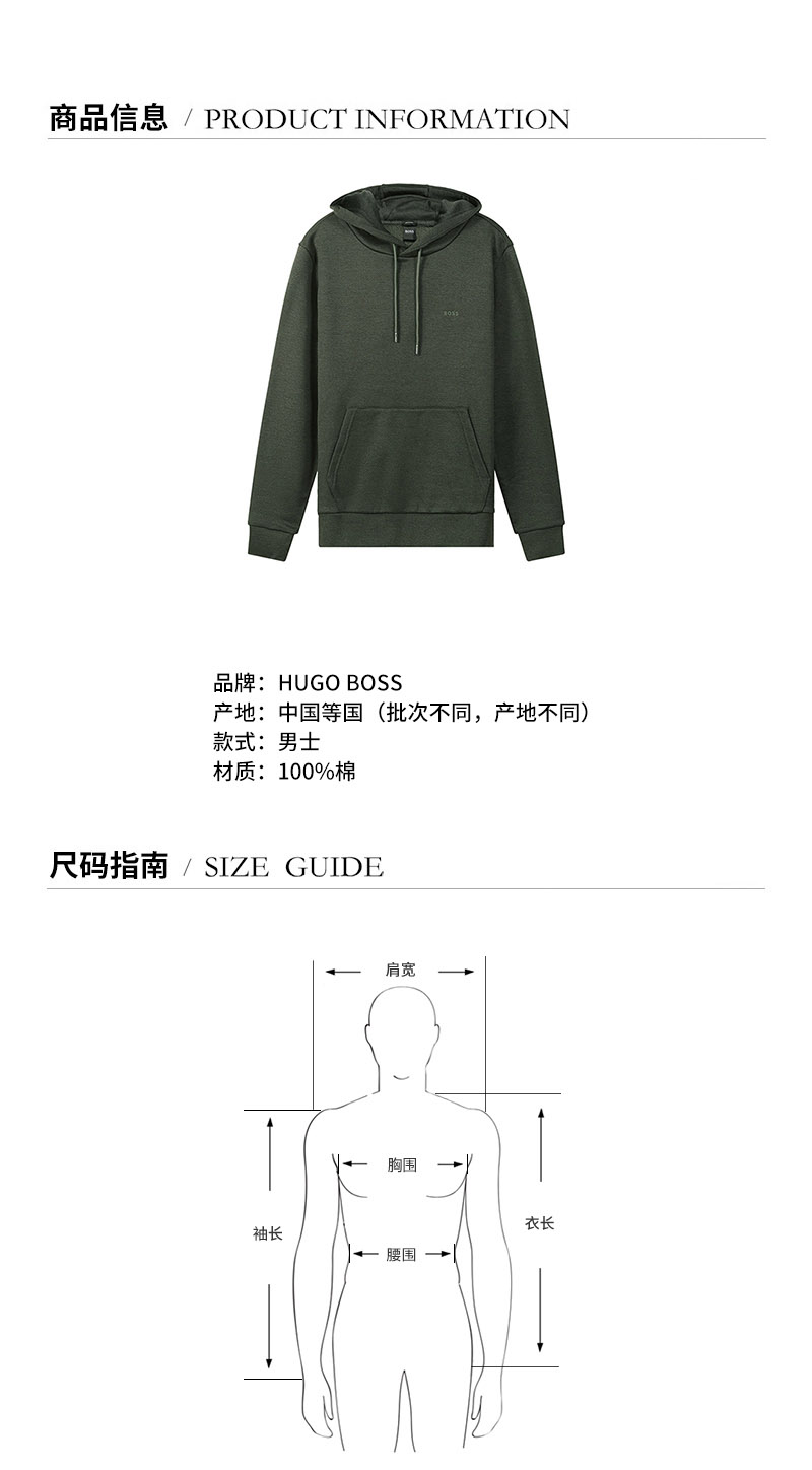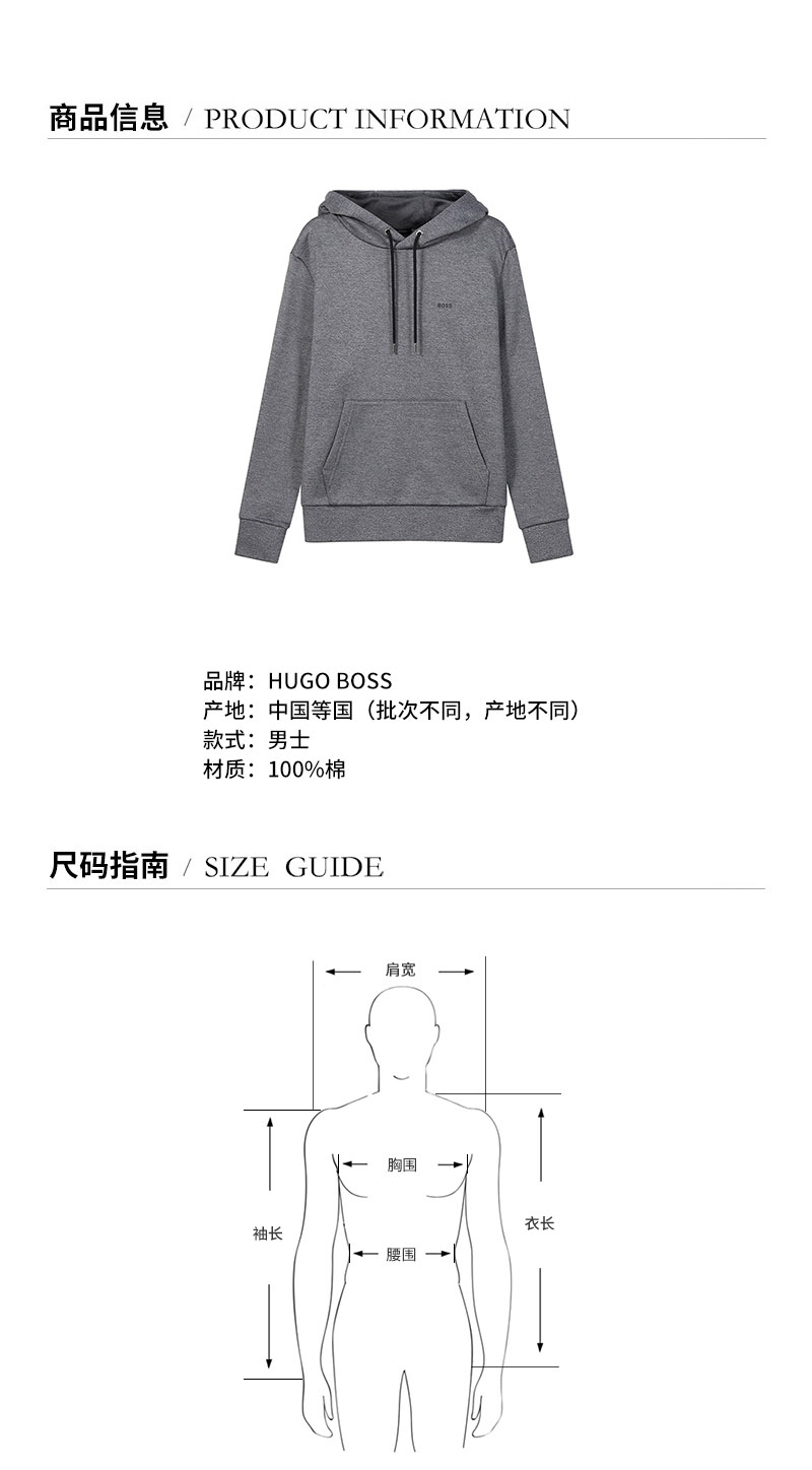 HUGO BOSS/雨果博斯【22春夏新款】男士棉质连帽卫衣运动衫 50462619