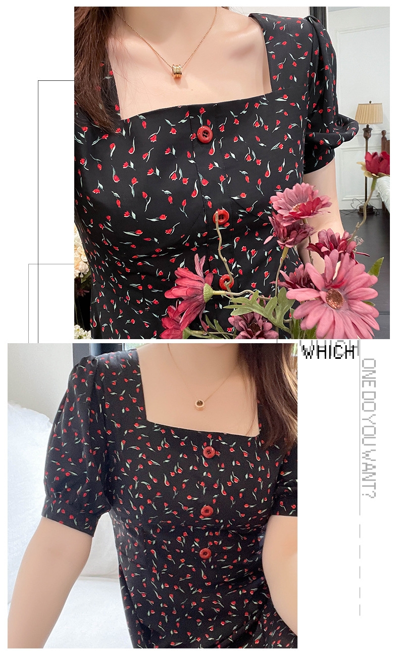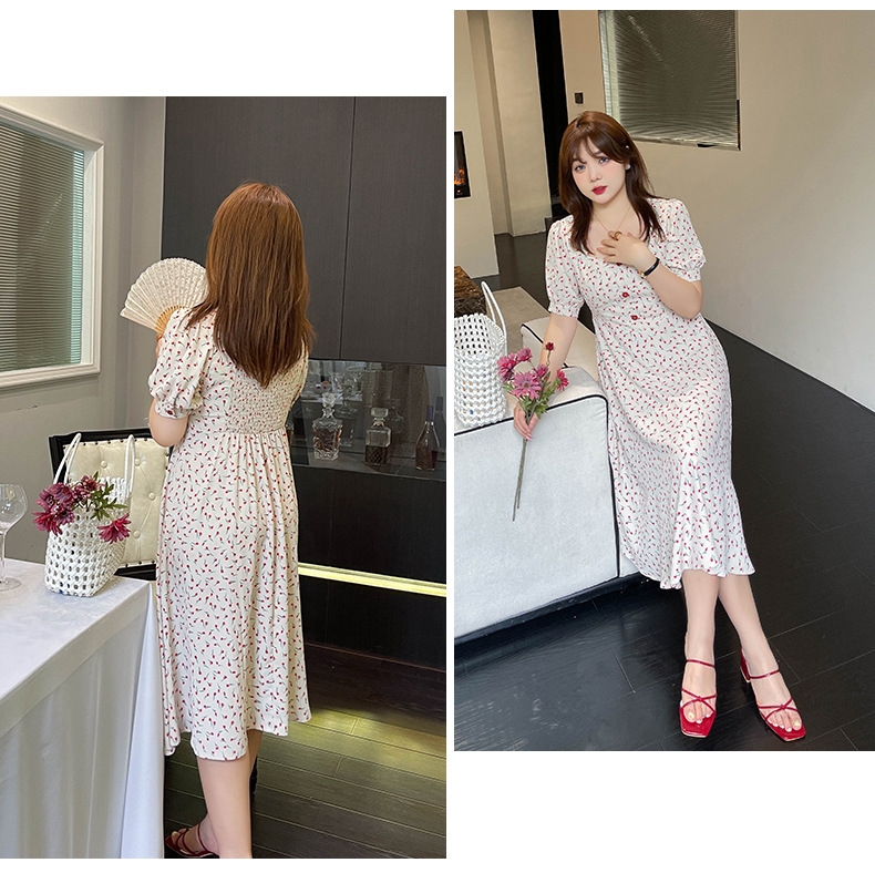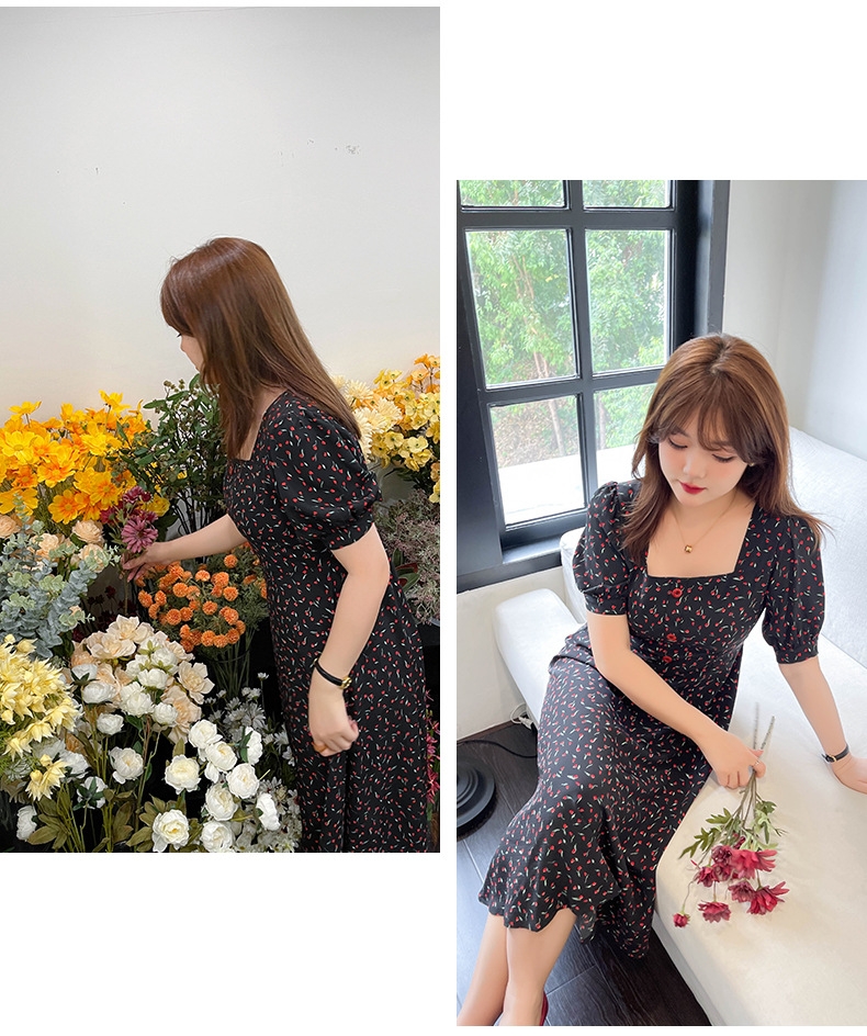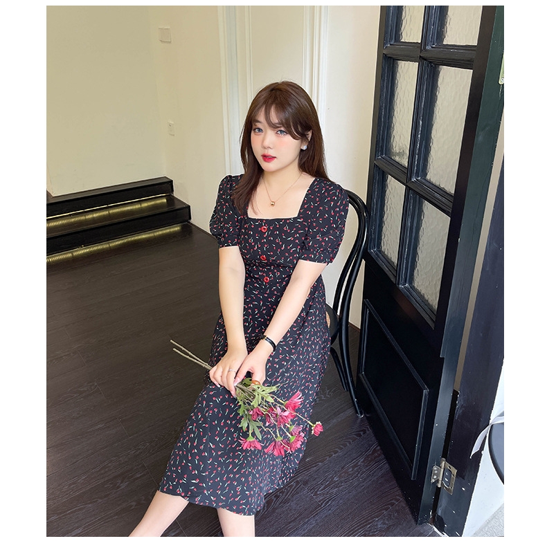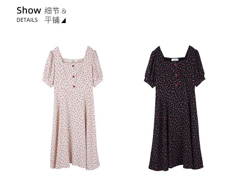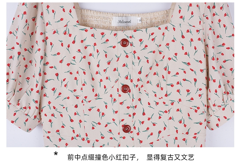 (清仓现货)【社群供R】胖仙女复古文艺方领印花连衣裙