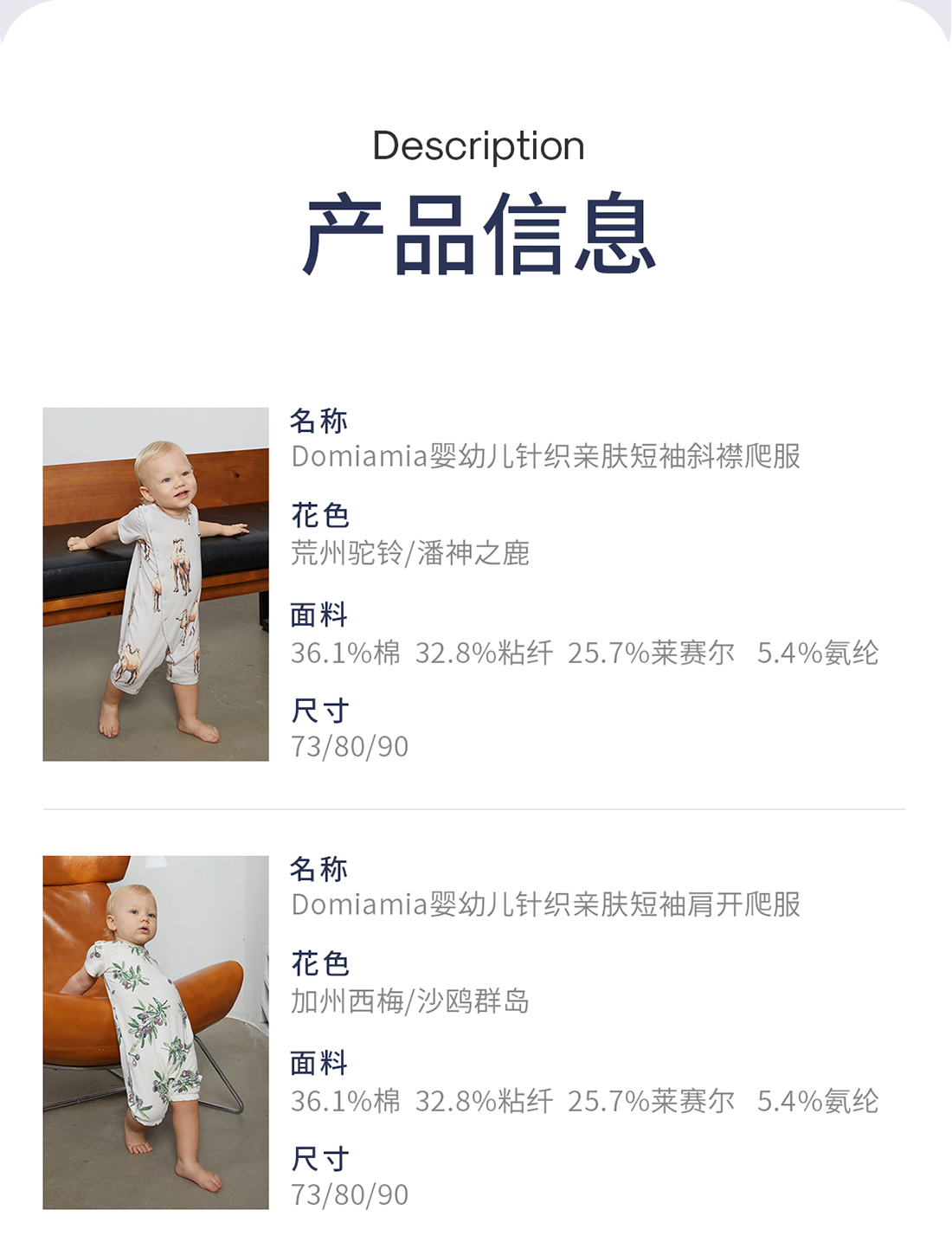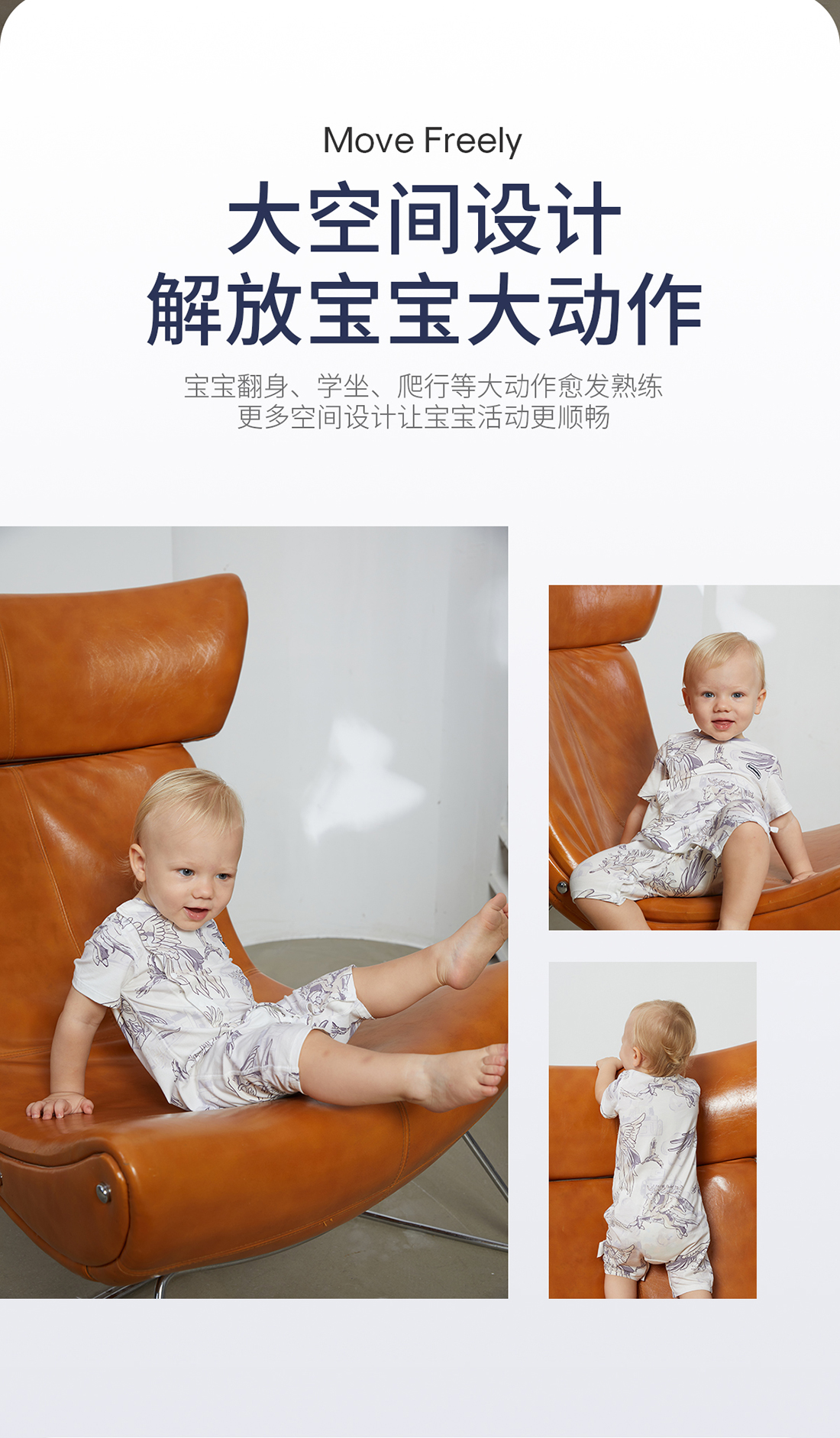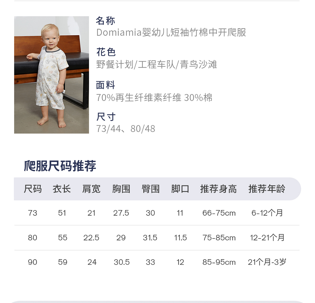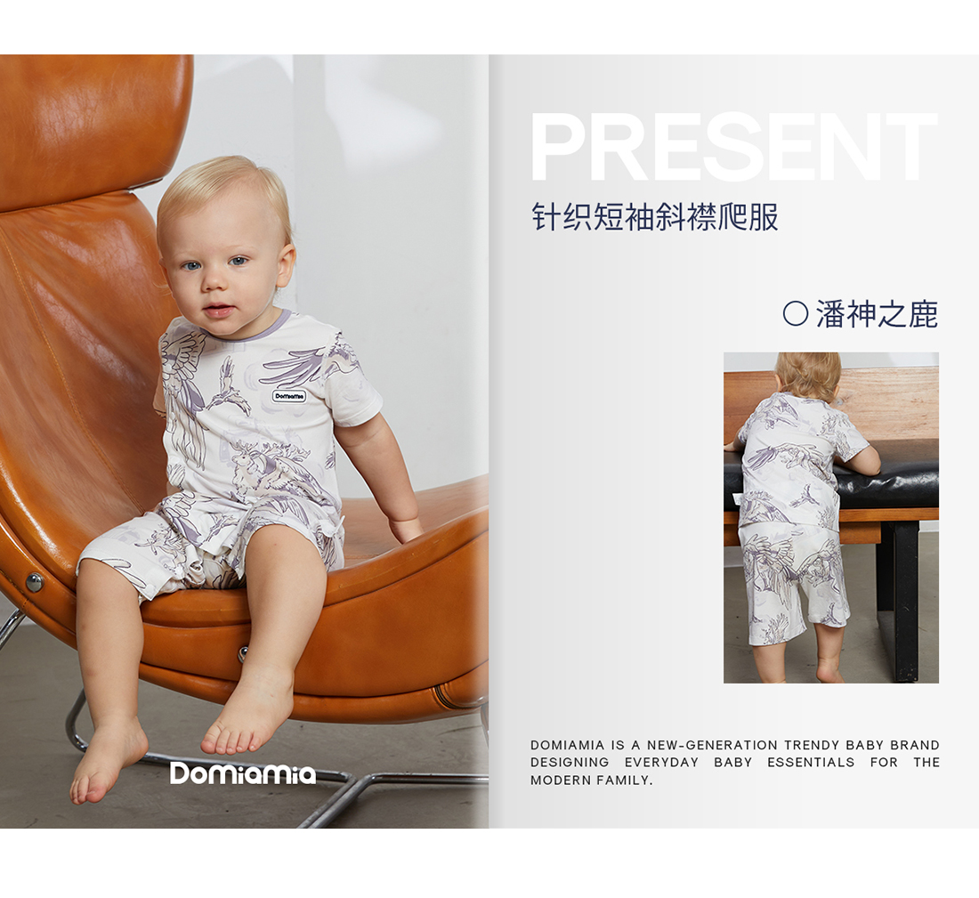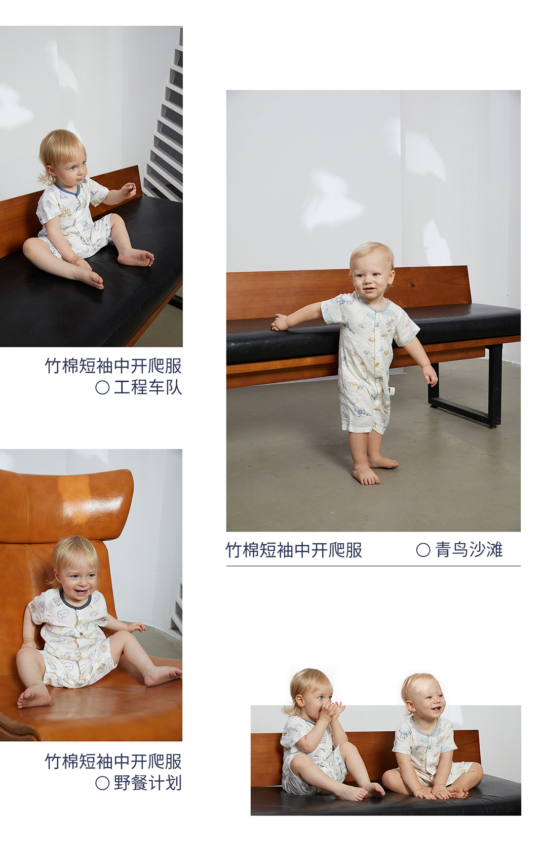 Domiamia哆咪呀婴儿夏季连体衣宝宝夏装睡衣抑菌凉感竹棉爬服哈衣短袖中开斜襟肩开