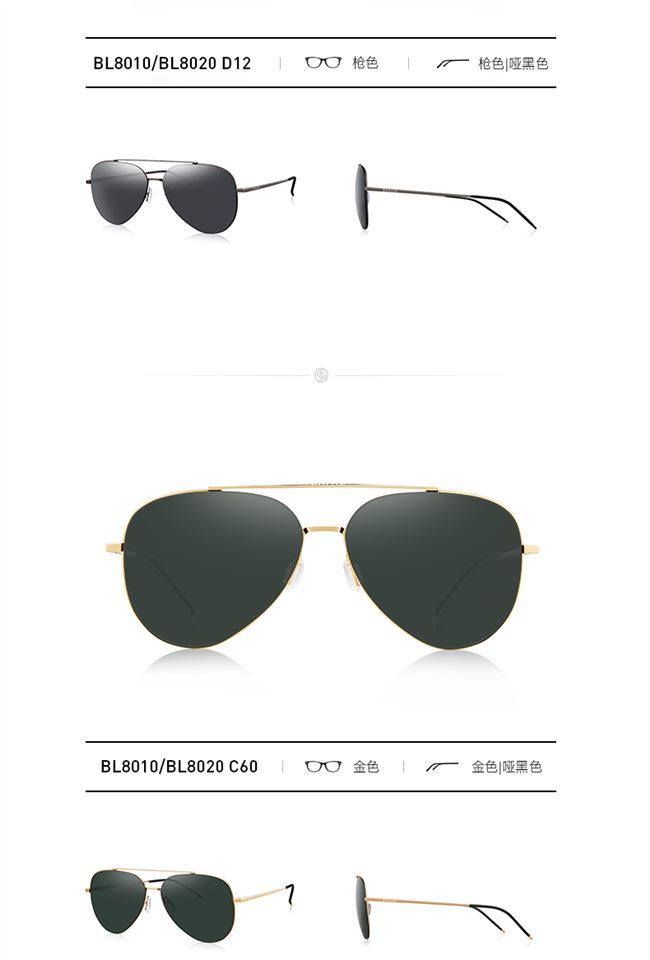 BOLON暴龙偏光太阳镜男女复古蛤蟆镜时尚金属墨镜开车眼镜BL8010