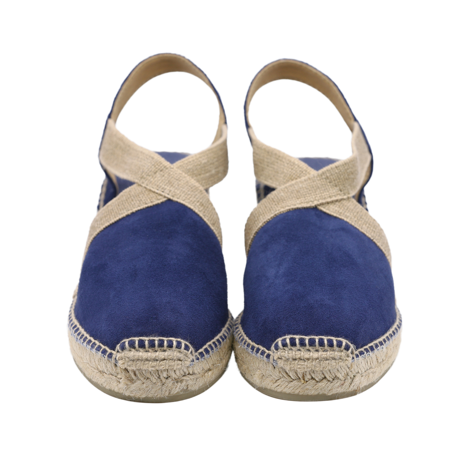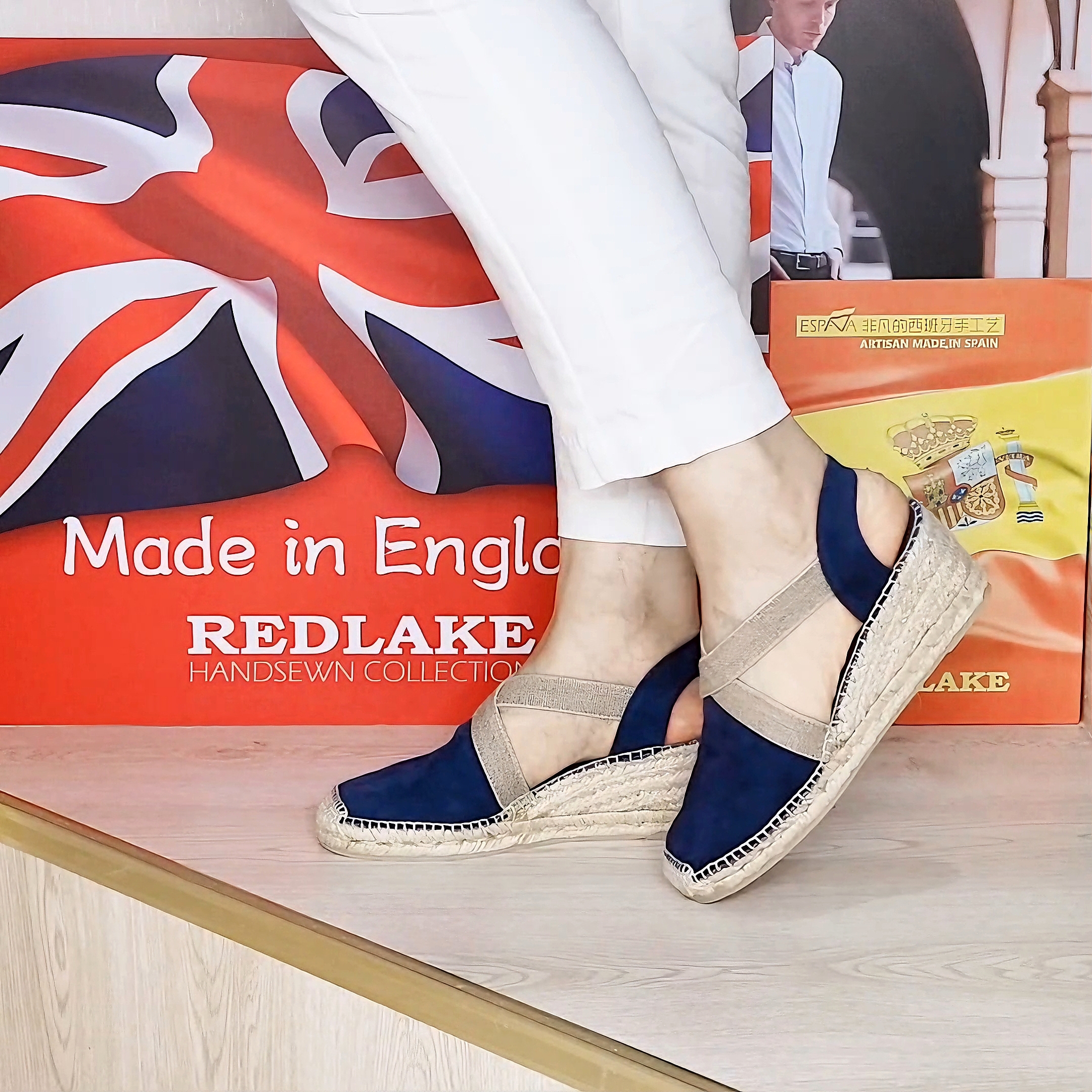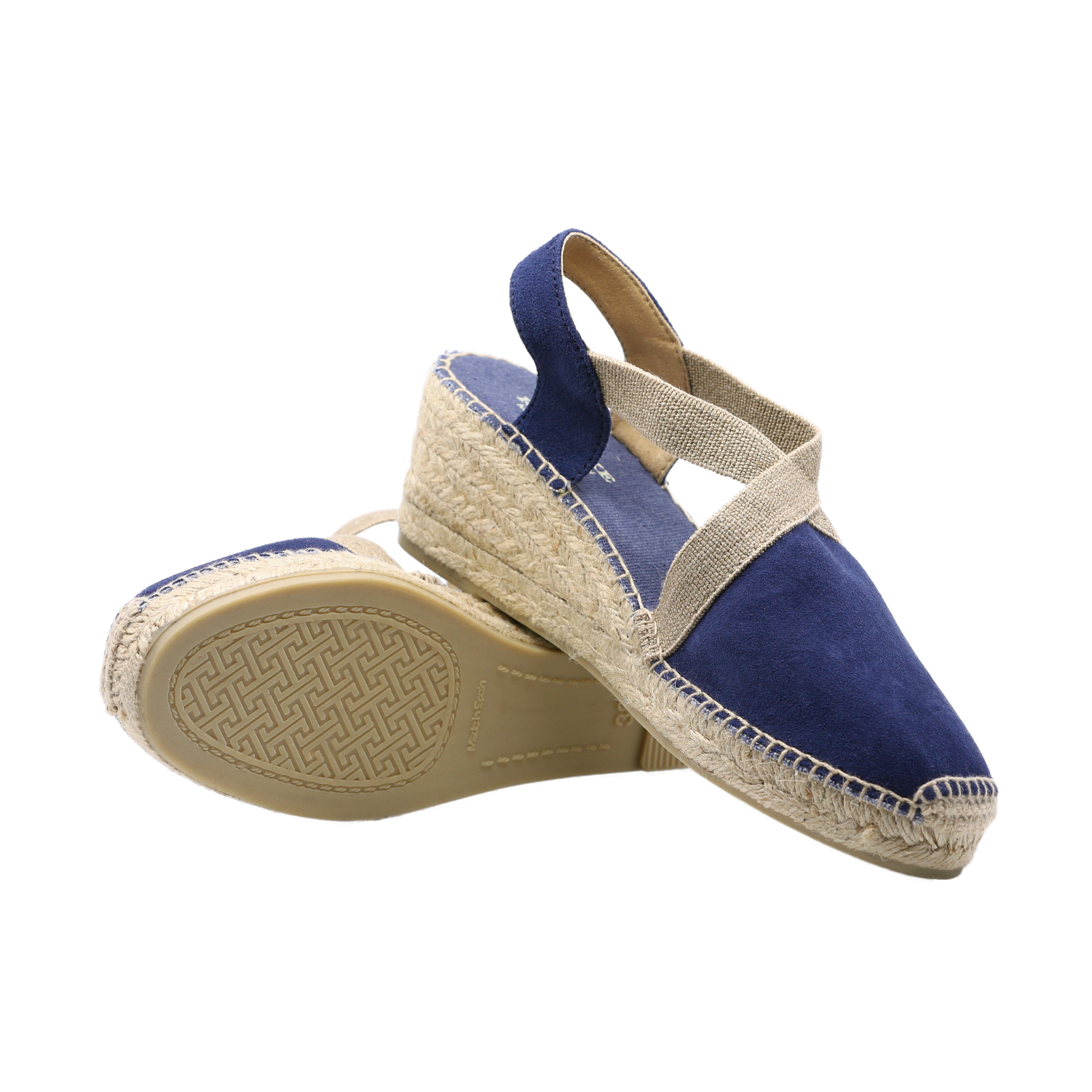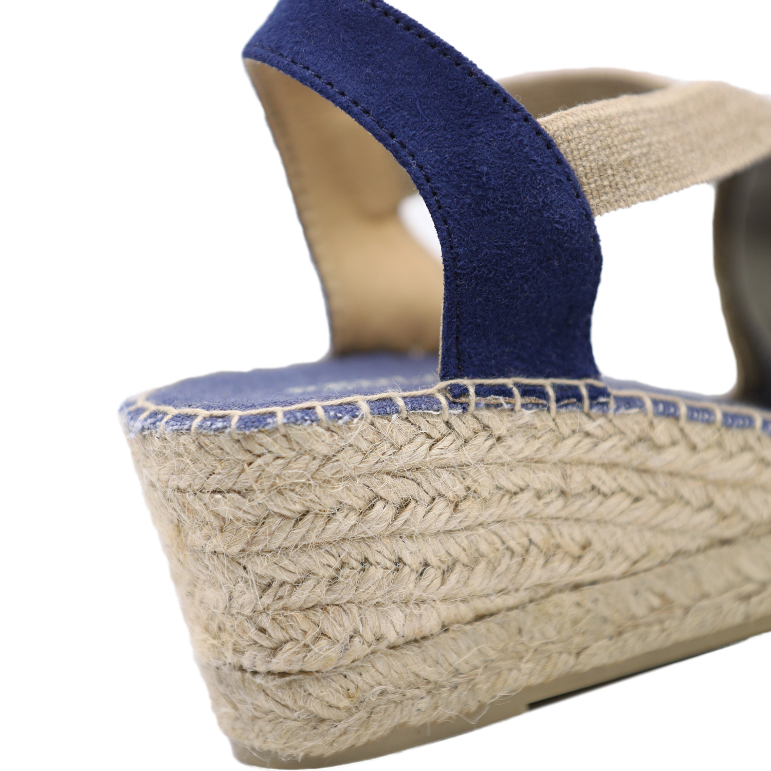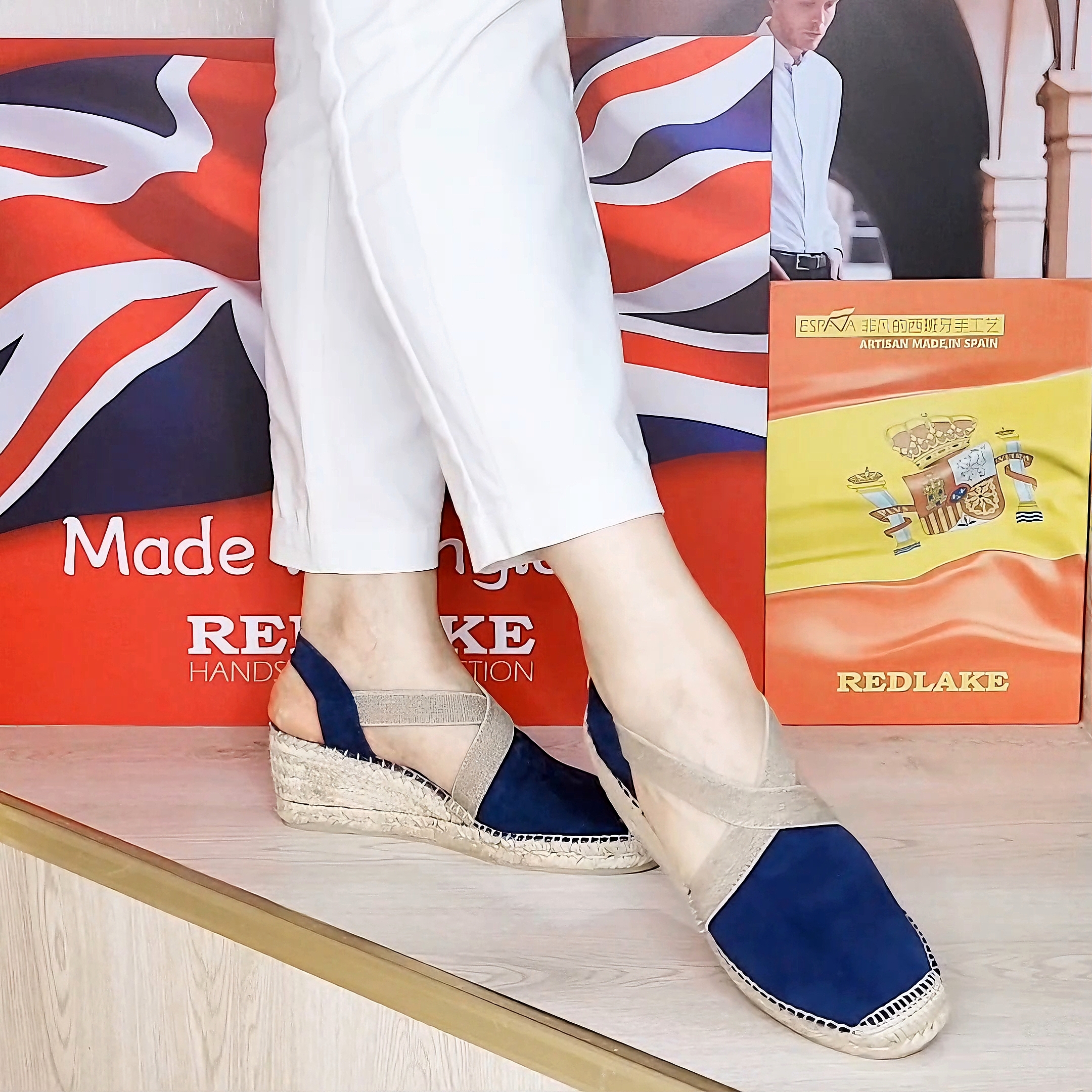 西班牙原产手工制作时尚轻便超舒适女款草编鞋 311A-深蓝色/米色
