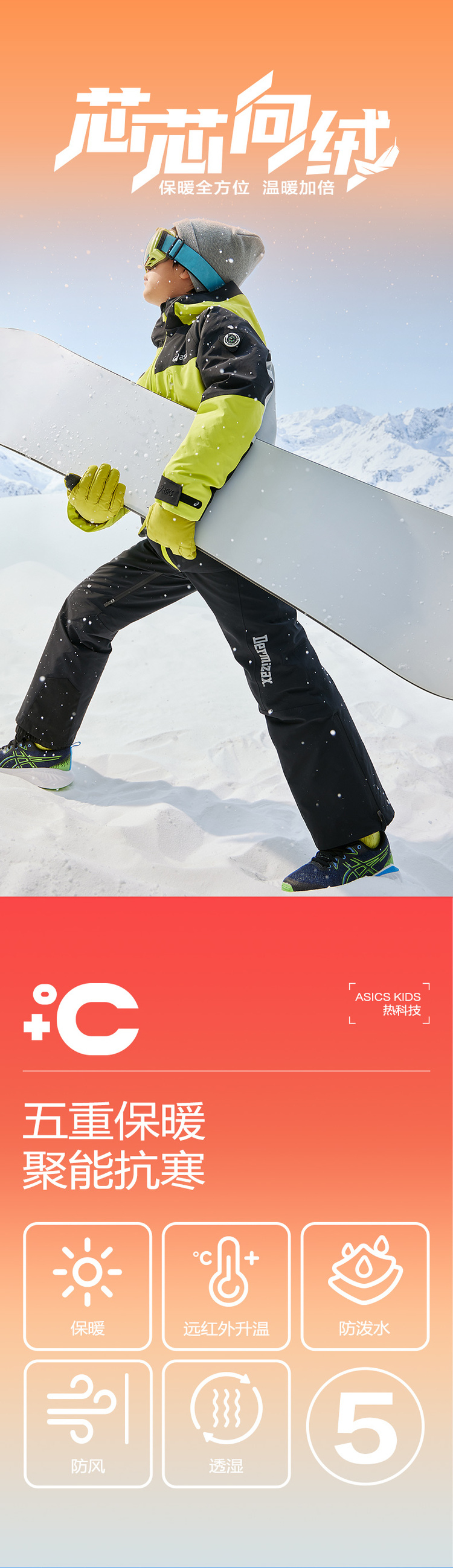 【商场同款滑雪服】Asics/亚瑟士童装保暖滑雪服套装冬新品