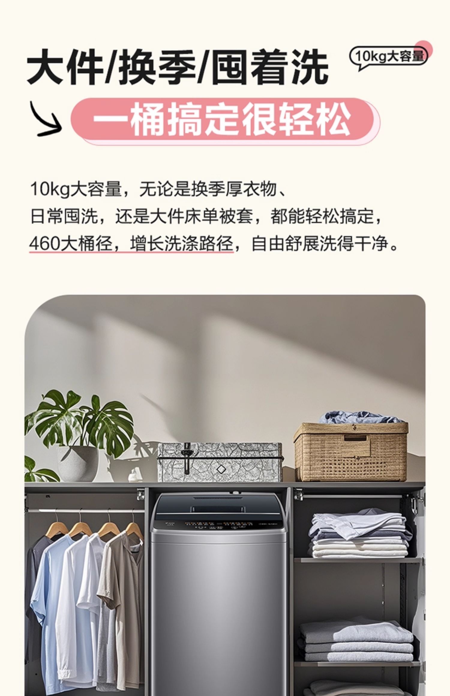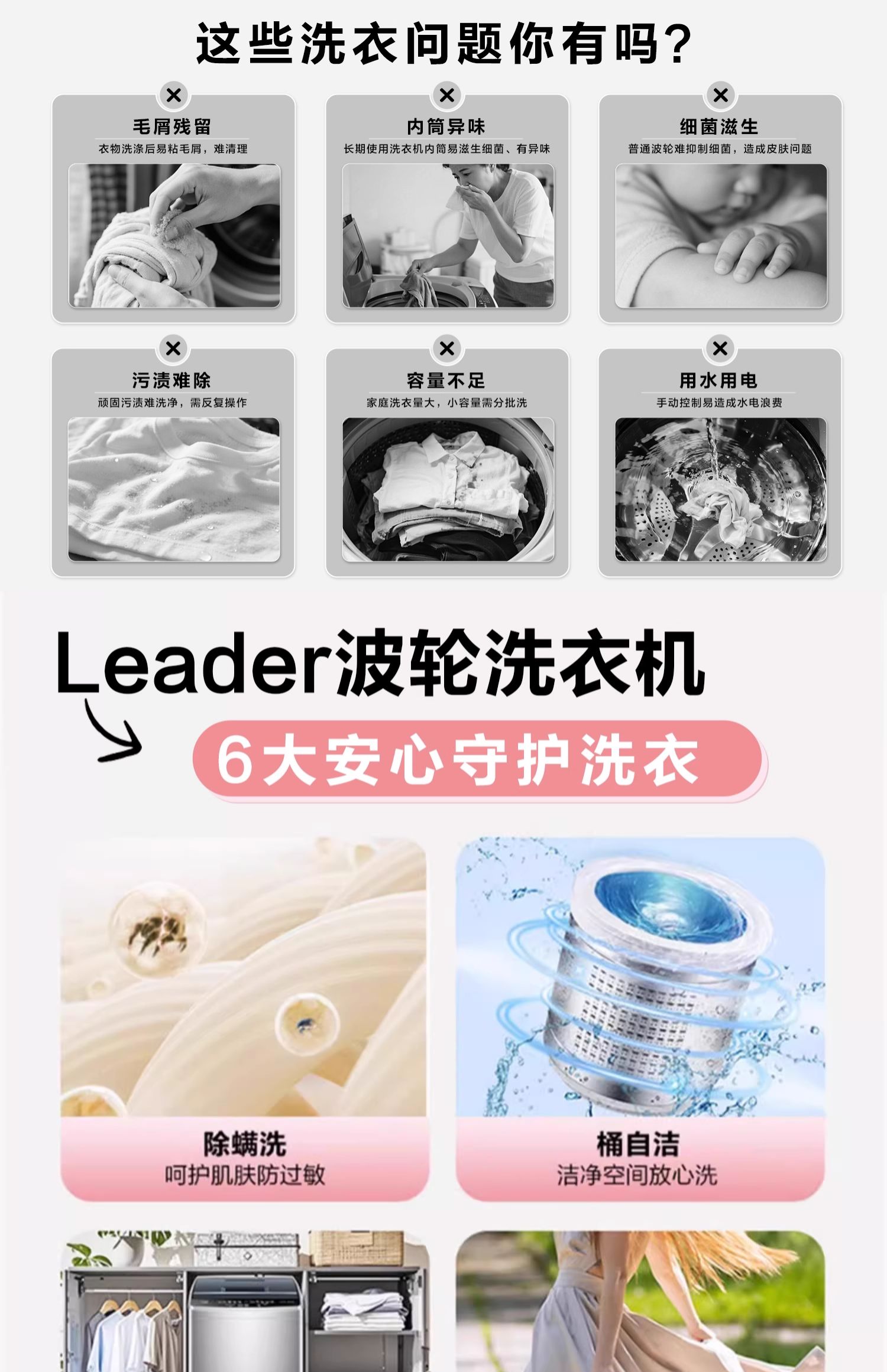 海尔智家Leader/统帅大容量10kg家用全自动波轮洗衣机洗脱一体527