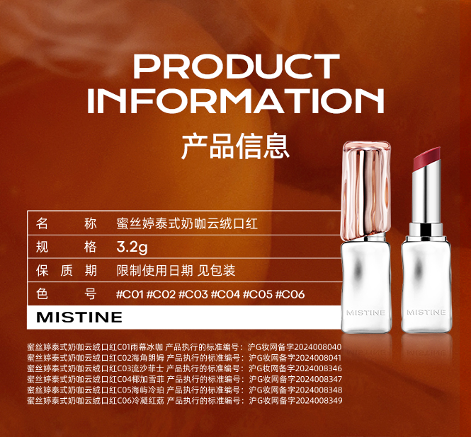 【品牌优选】蜜丝婷泰式奶咖云绒/流光口红