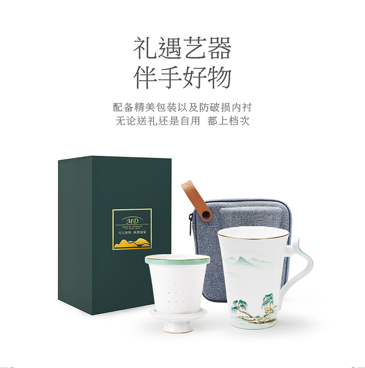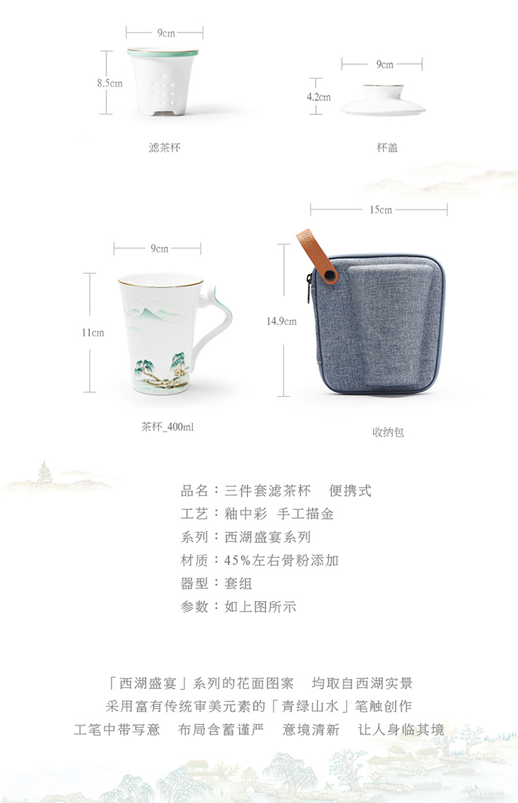 【玛戈隆特】B7F 西湖盛宴三件套滤茶杯骨瓷旅行茶杯 家用便携式 礼盒包装