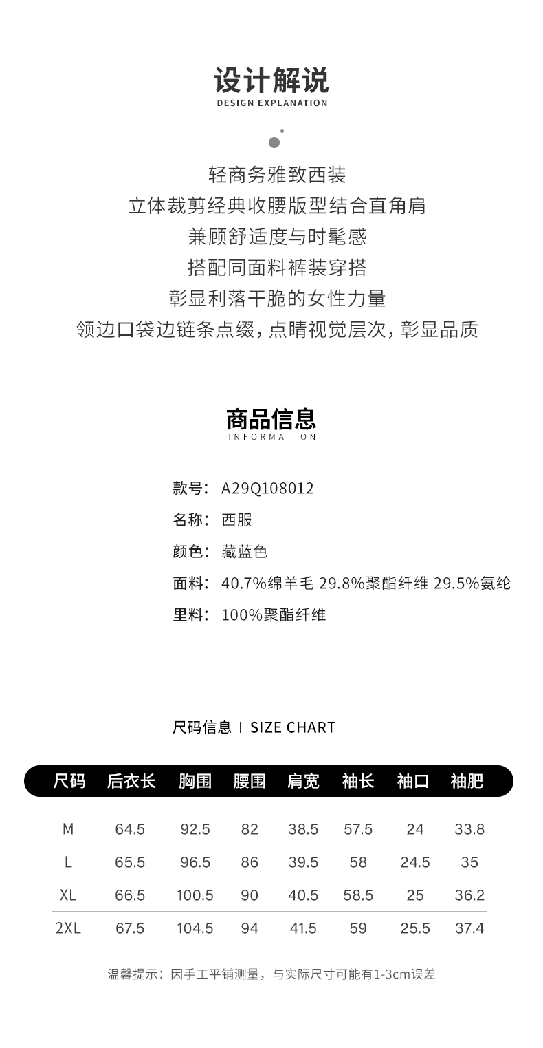 【商场同款】阿菁娜2024秋季新款轻商务雅致西装A29Q108012