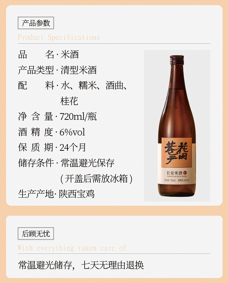 花田巷子 | 长安米酒 酒精度6%vol 720ml×6瓶