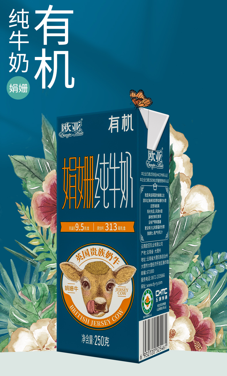【三重有机】欧亚娟姗有机纯牛奶250g*12盒/箱*2箱