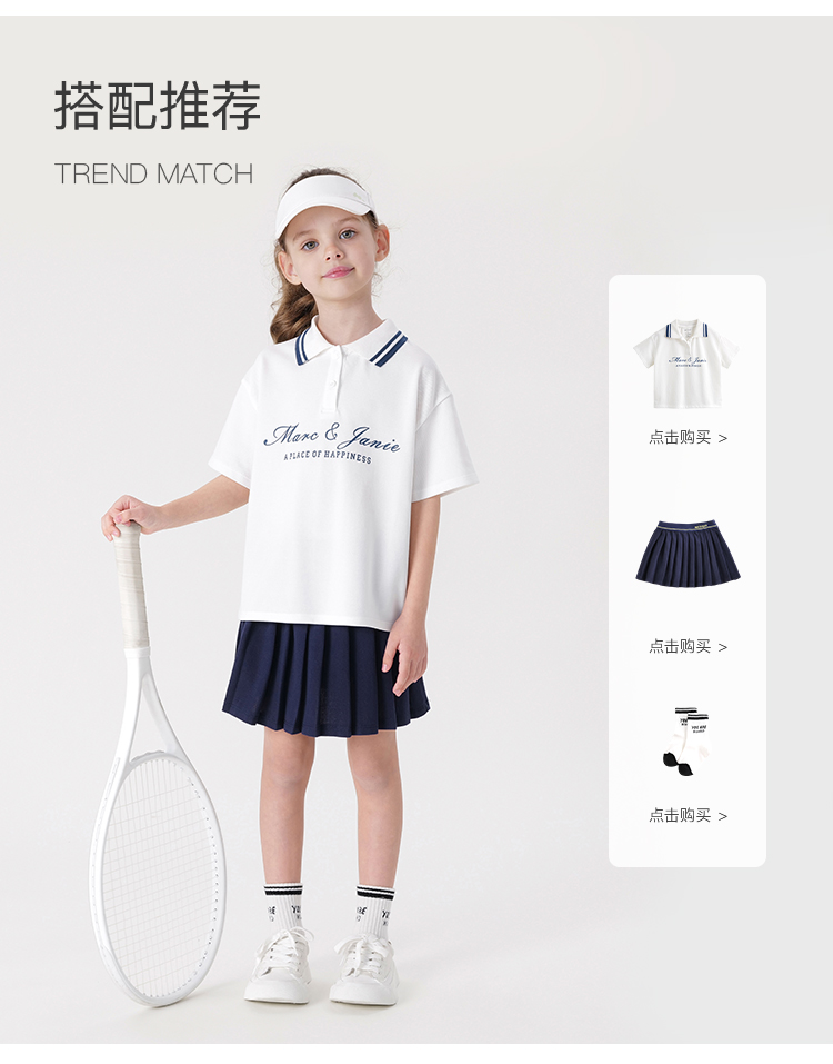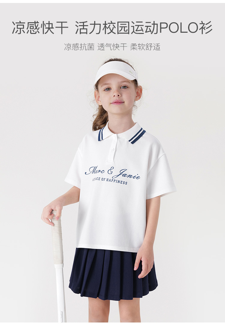 【凉感快干】马克珍妮女童活力校园运动polo衫短袖上衣夏装240596