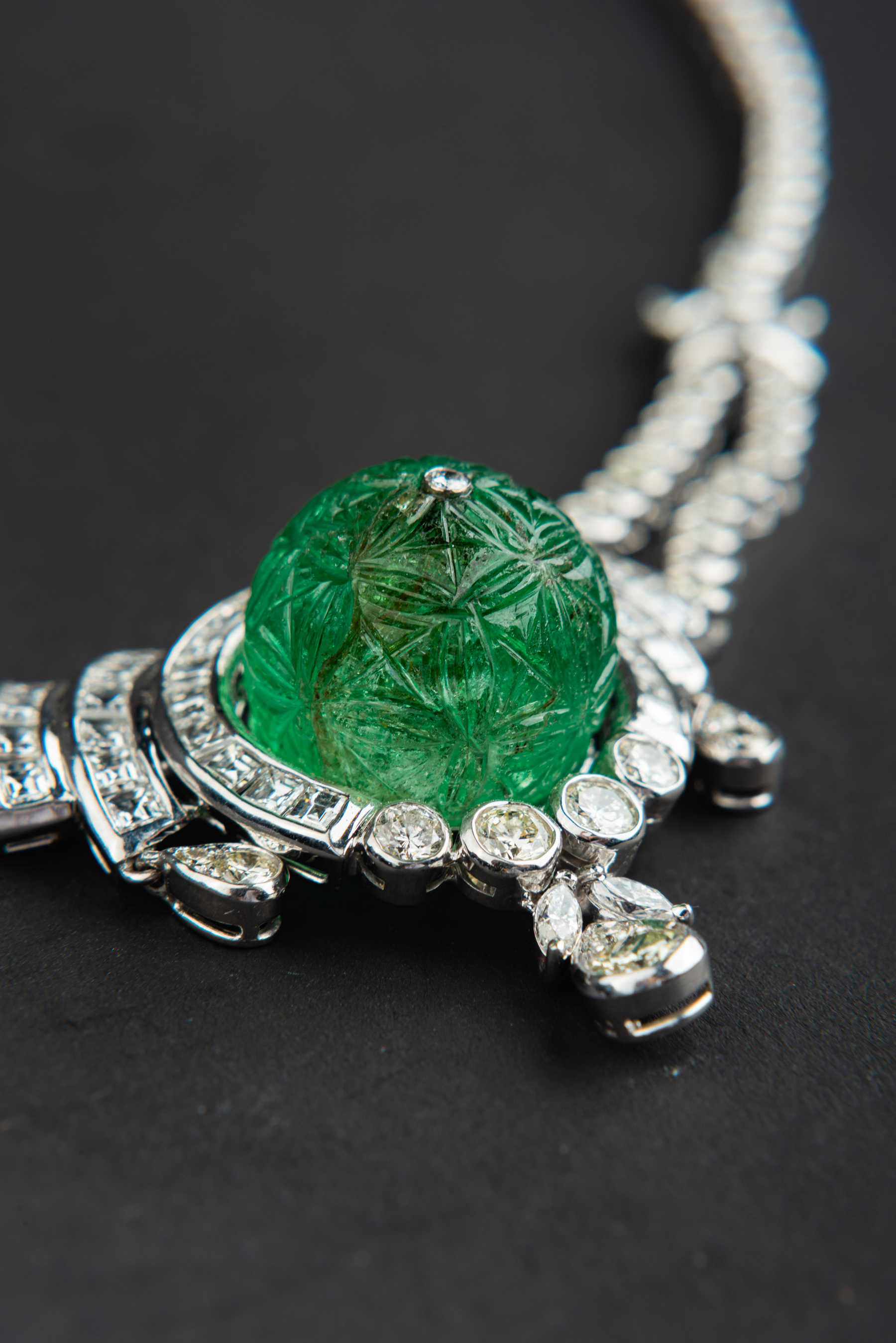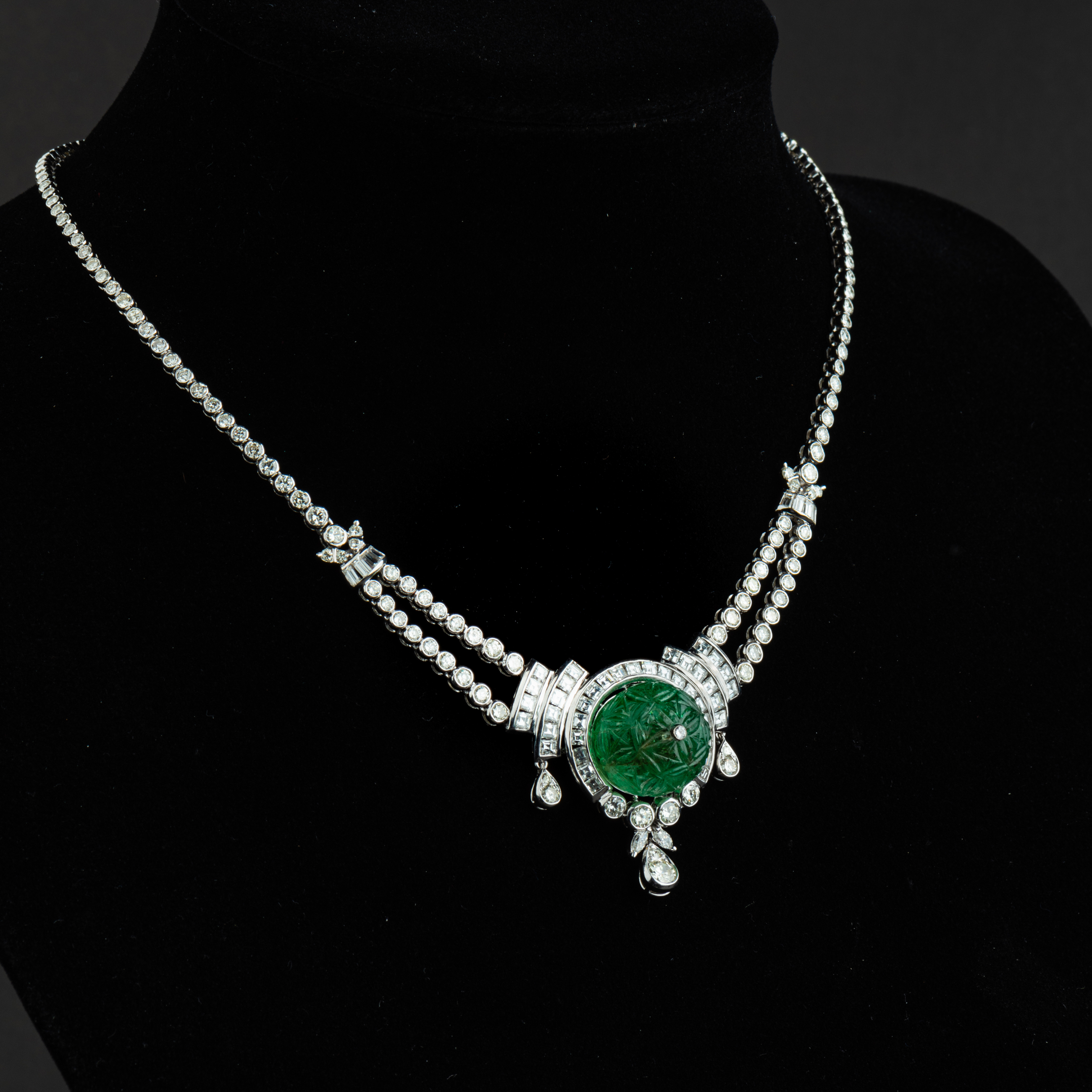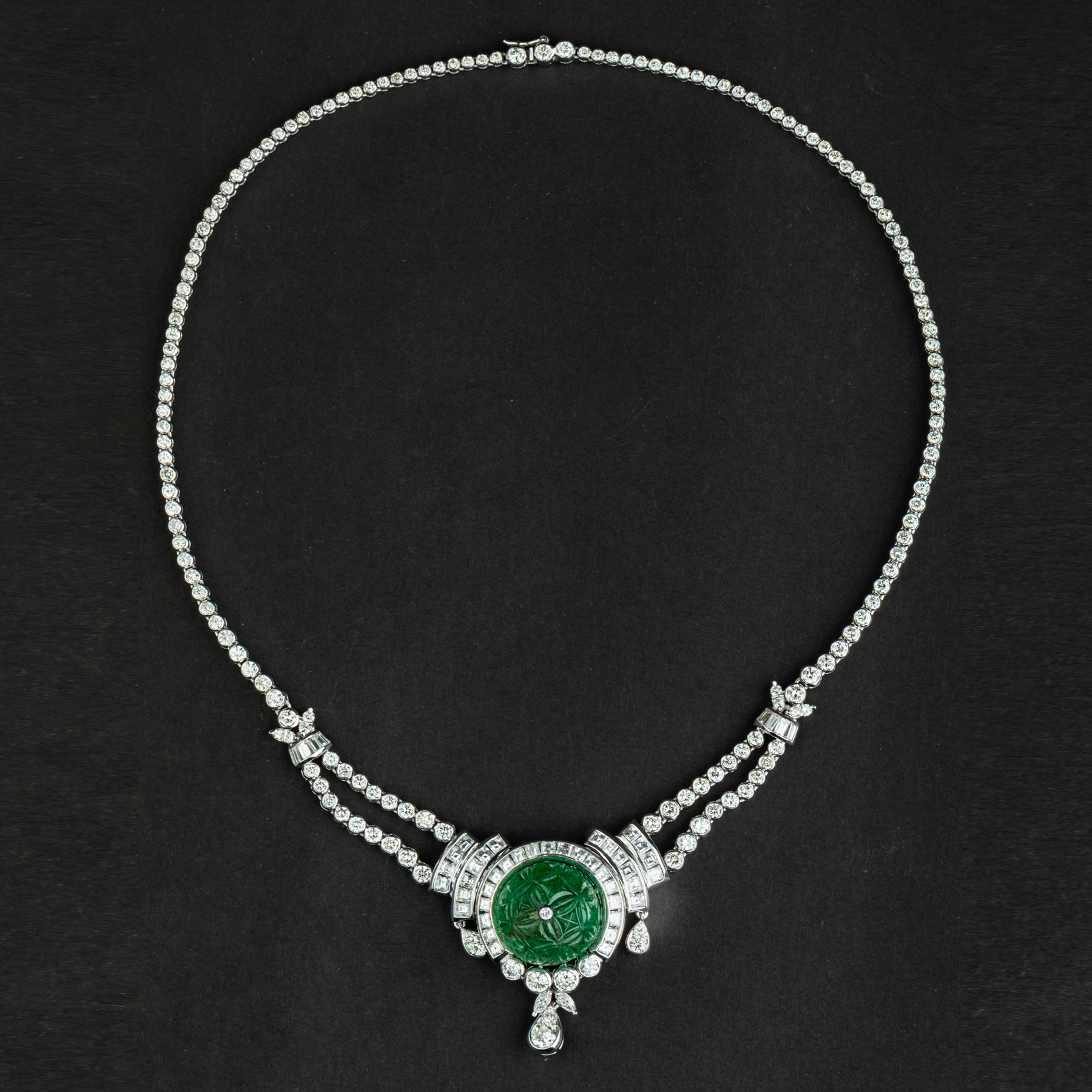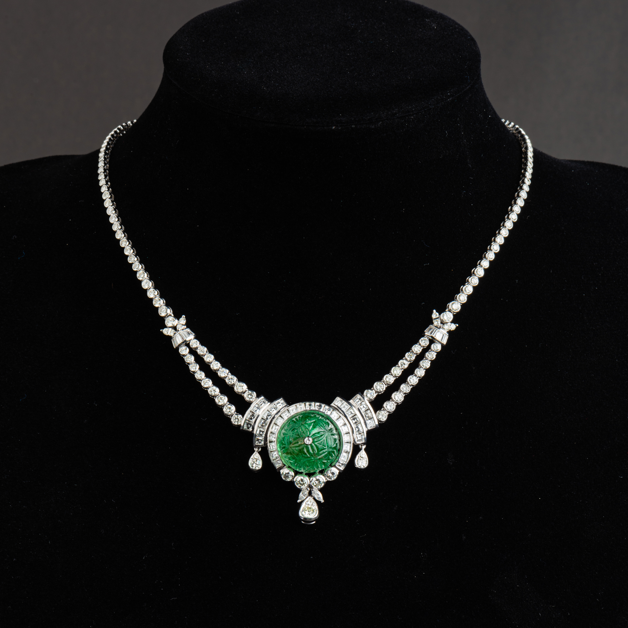 独角鹿西洋古董珠宝欧洲铂金镶嵌钻石哥伦比亚祖母绿公主型项链