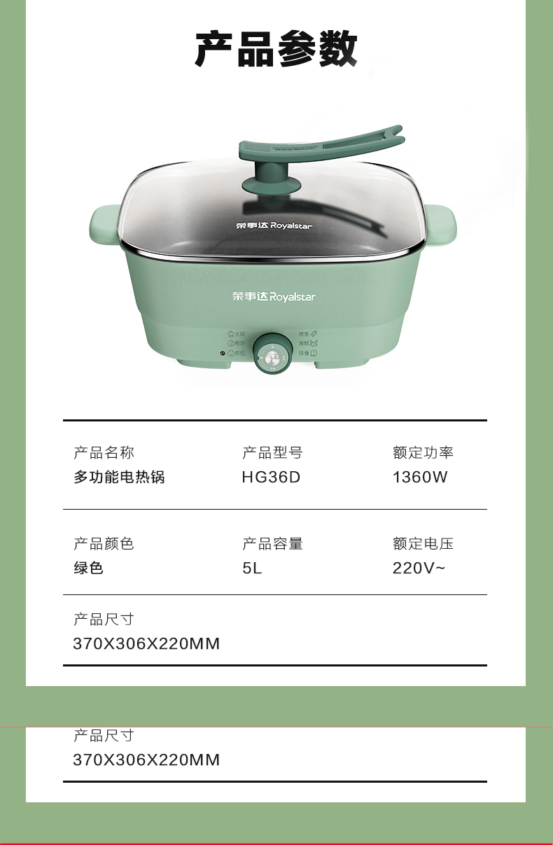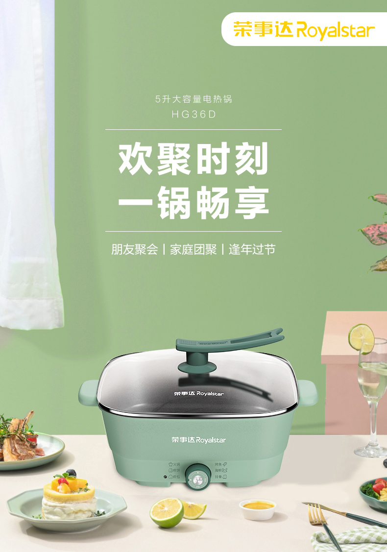 工美-云中飞鹤电火锅分体式锅体设计内胆单独清洗1200W大功率发热盘