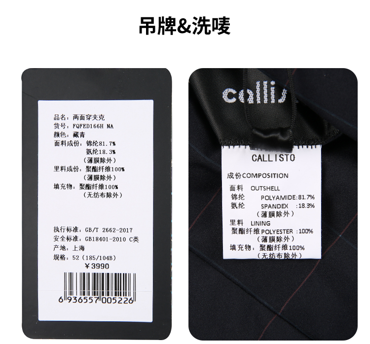 callisto锦纶混纺两面穿夹克 FQFED166H
