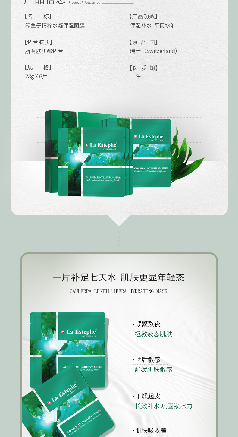 瑞士进口瑞斯美鱼子精萃水凝保湿面膜28g*6片