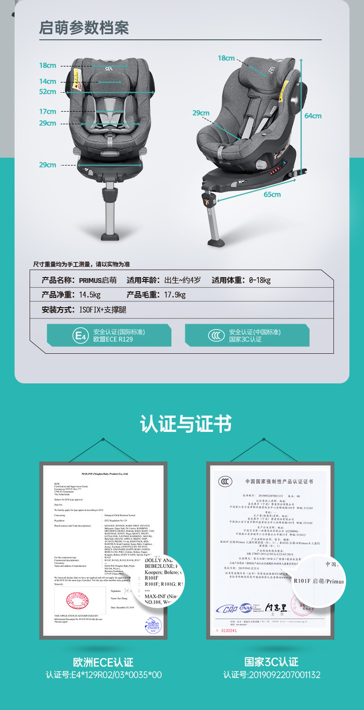 (超值)Baby first 宝贝第一 启萌0-4岁 新生儿儿童安全座椅360度旋转汽车用宝宝婴儿