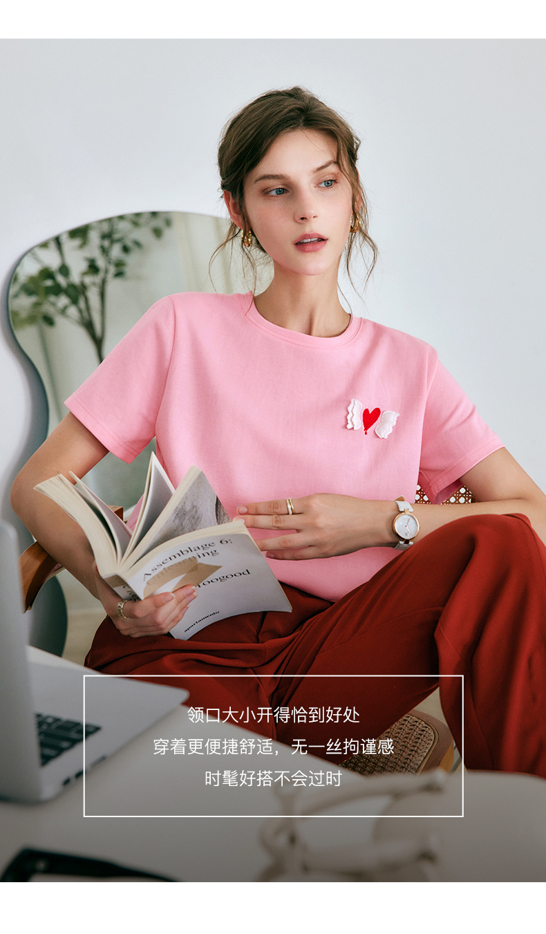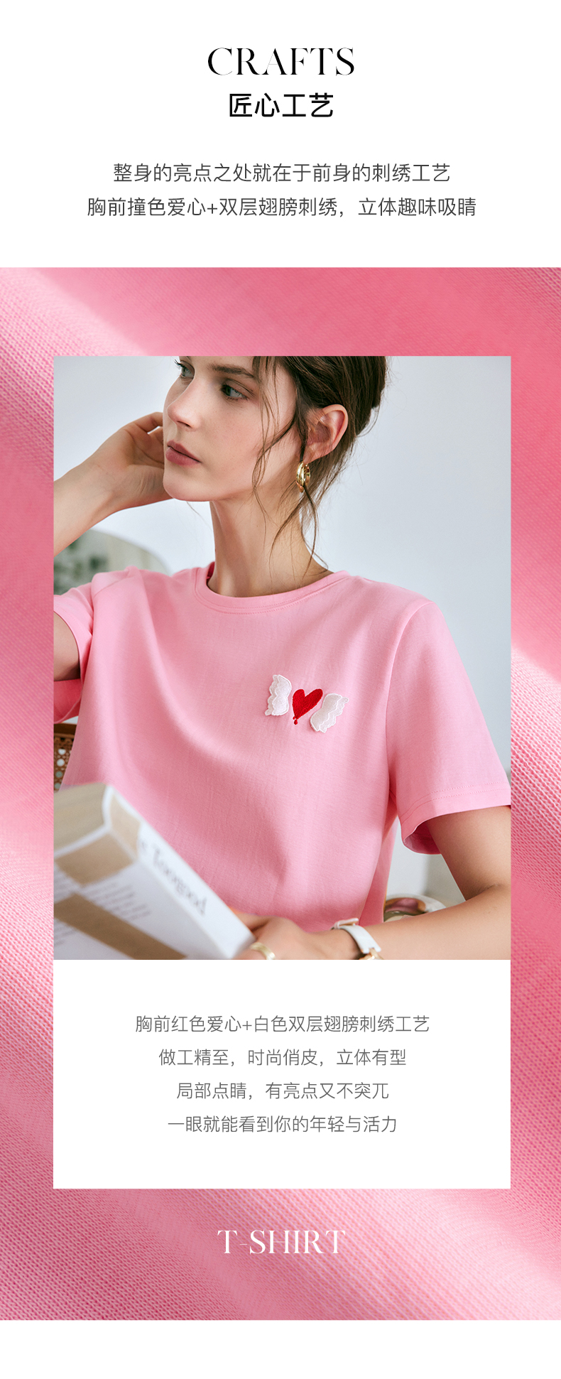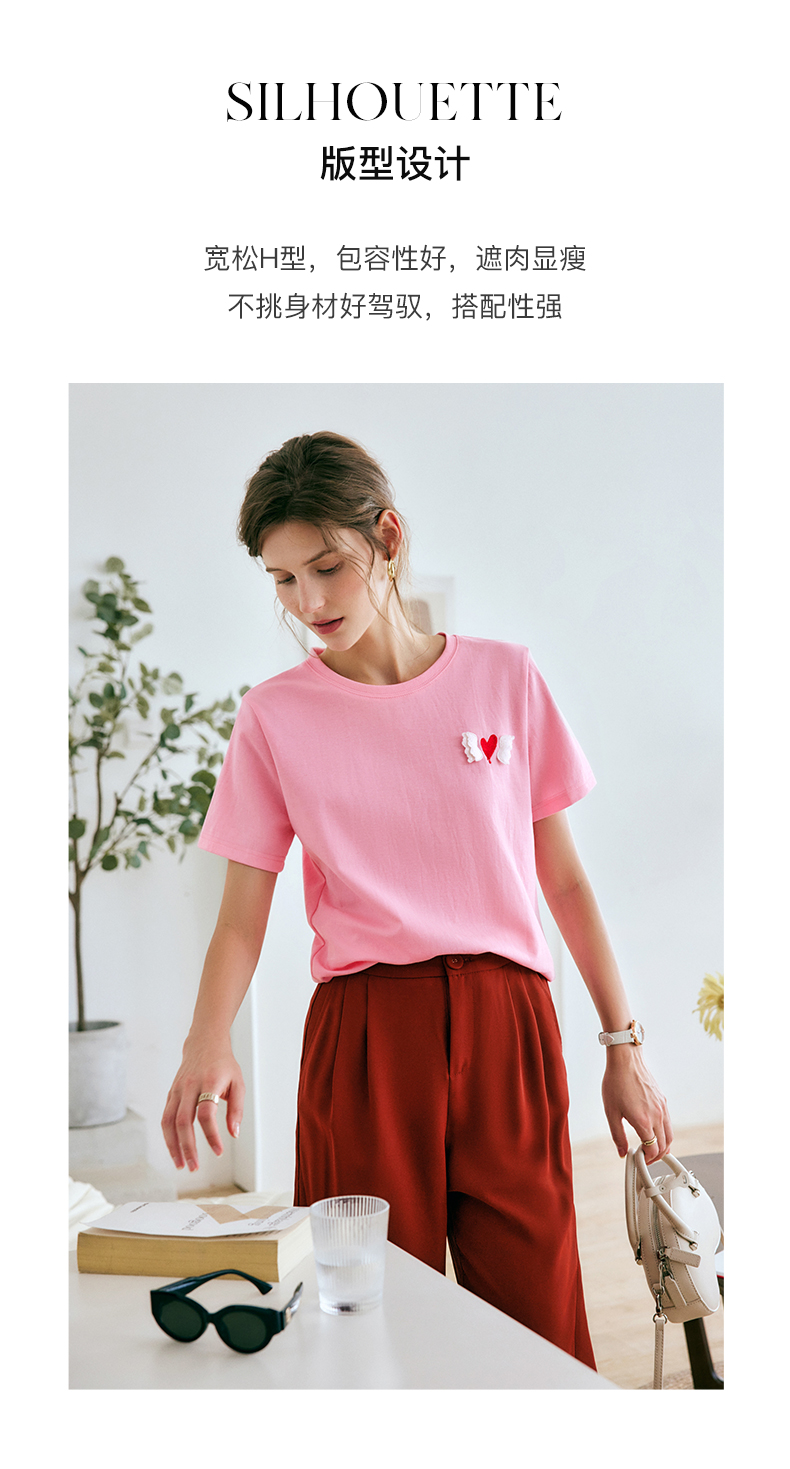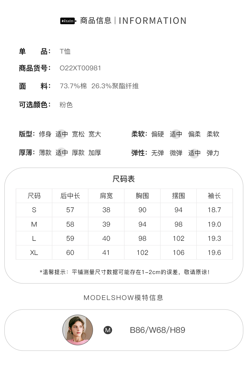 OLrain法式高级穿搭粉色t恤女夏季2022新款宽松薄款显瘦短袖上衣