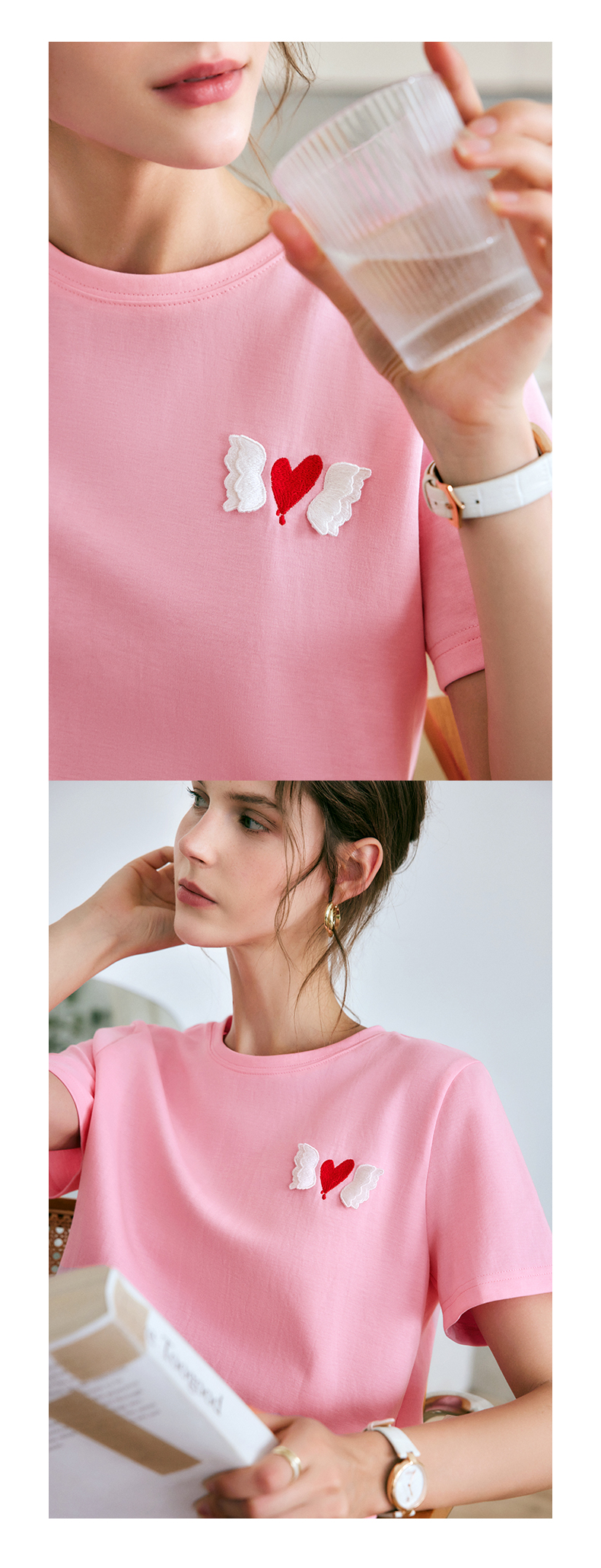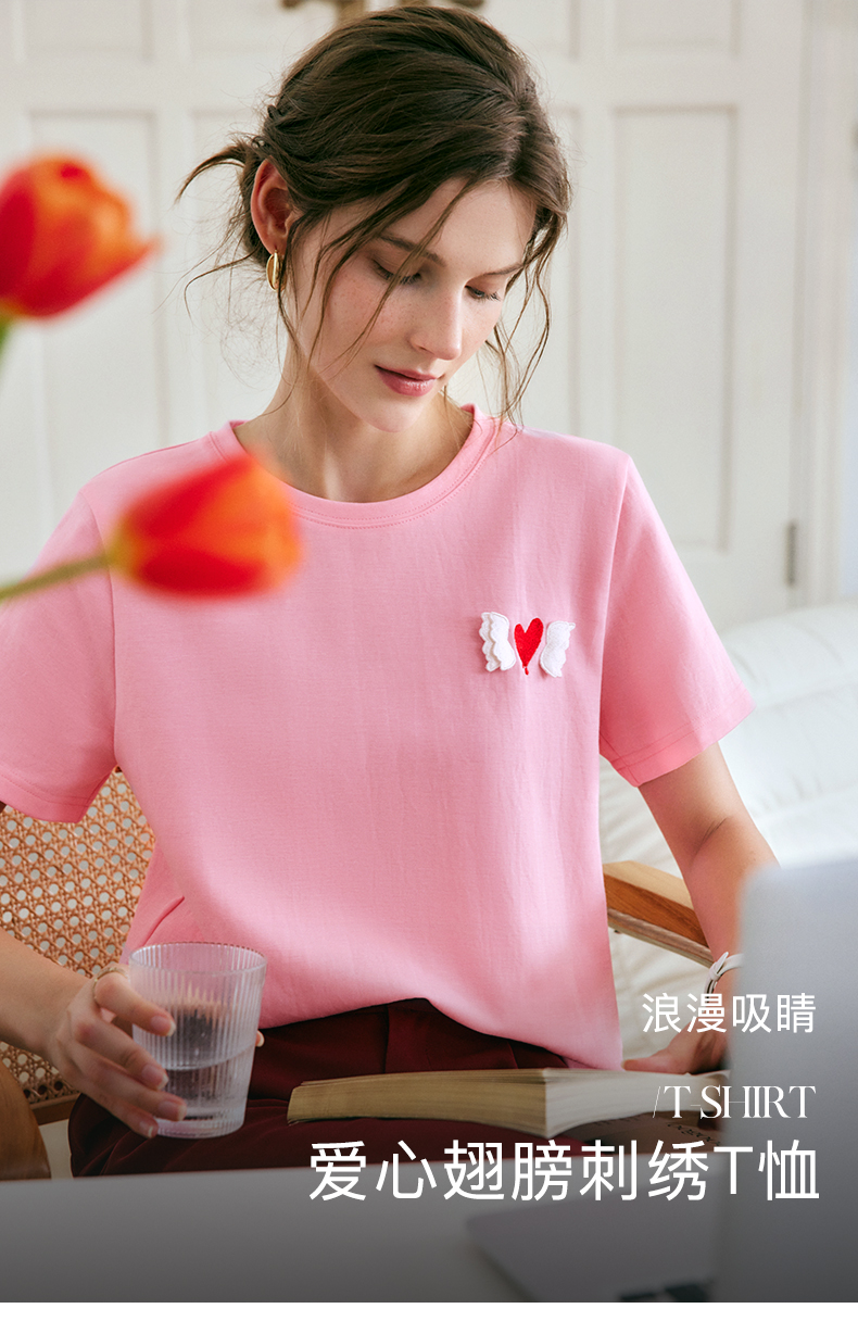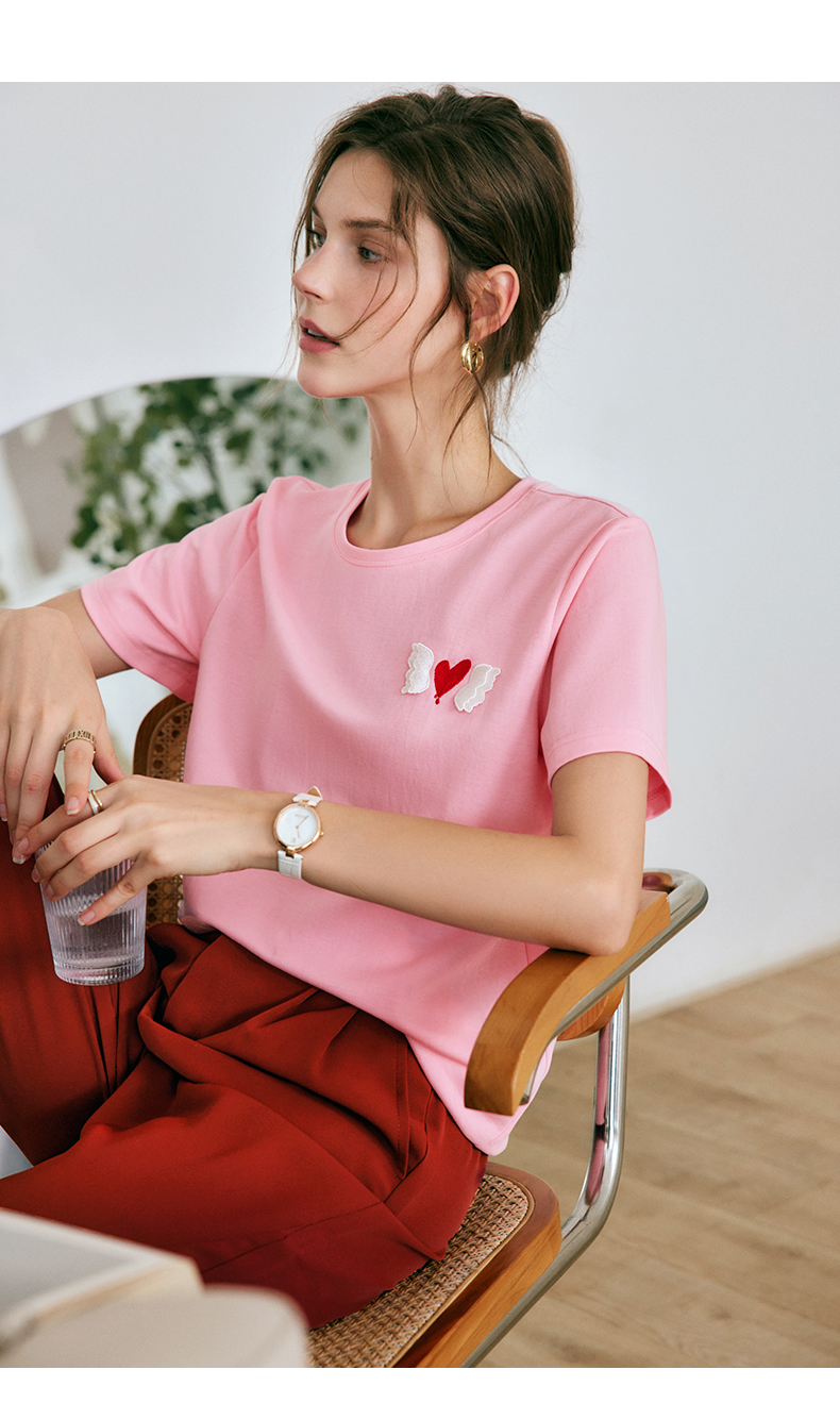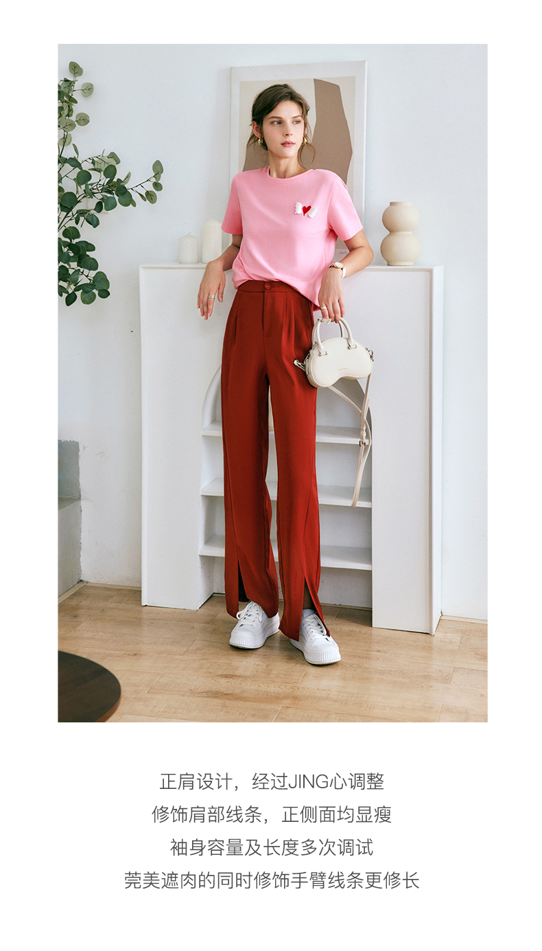 OLrain法式高级穿搭粉色t恤女夏季2022新款宽松薄款显瘦短袖上衣