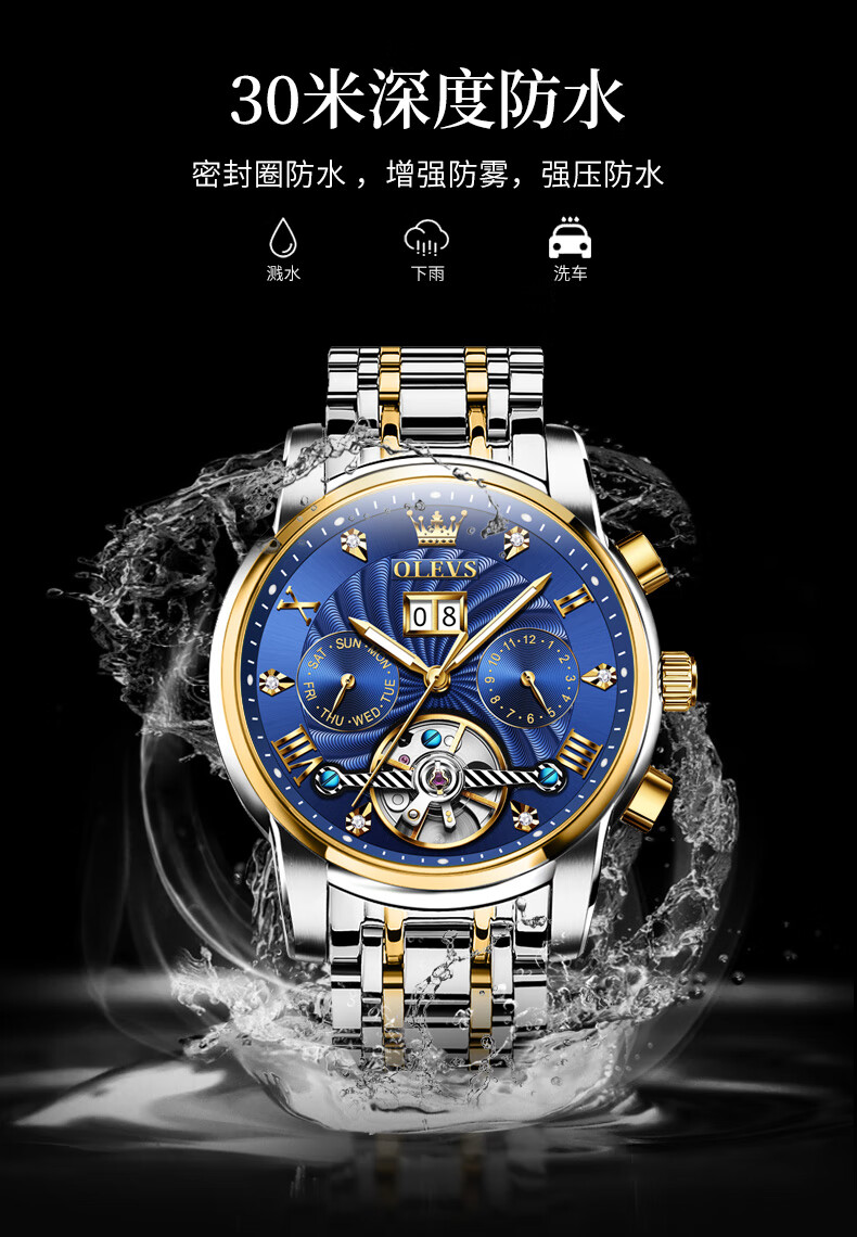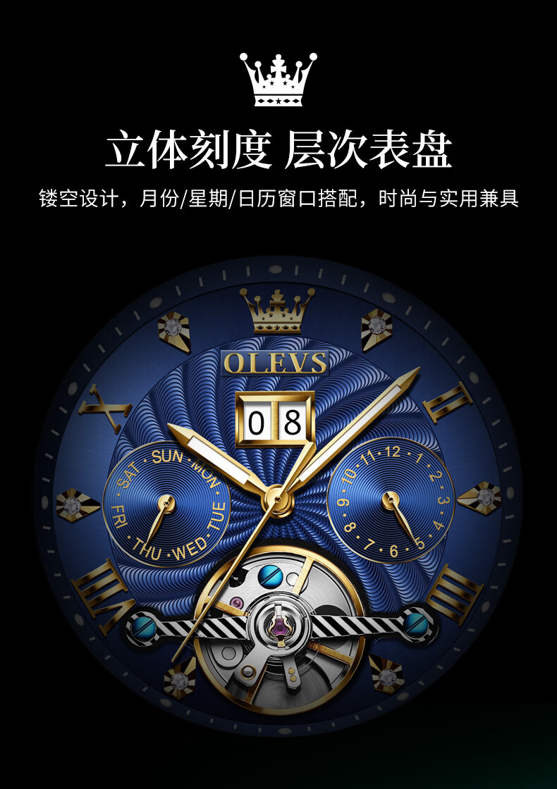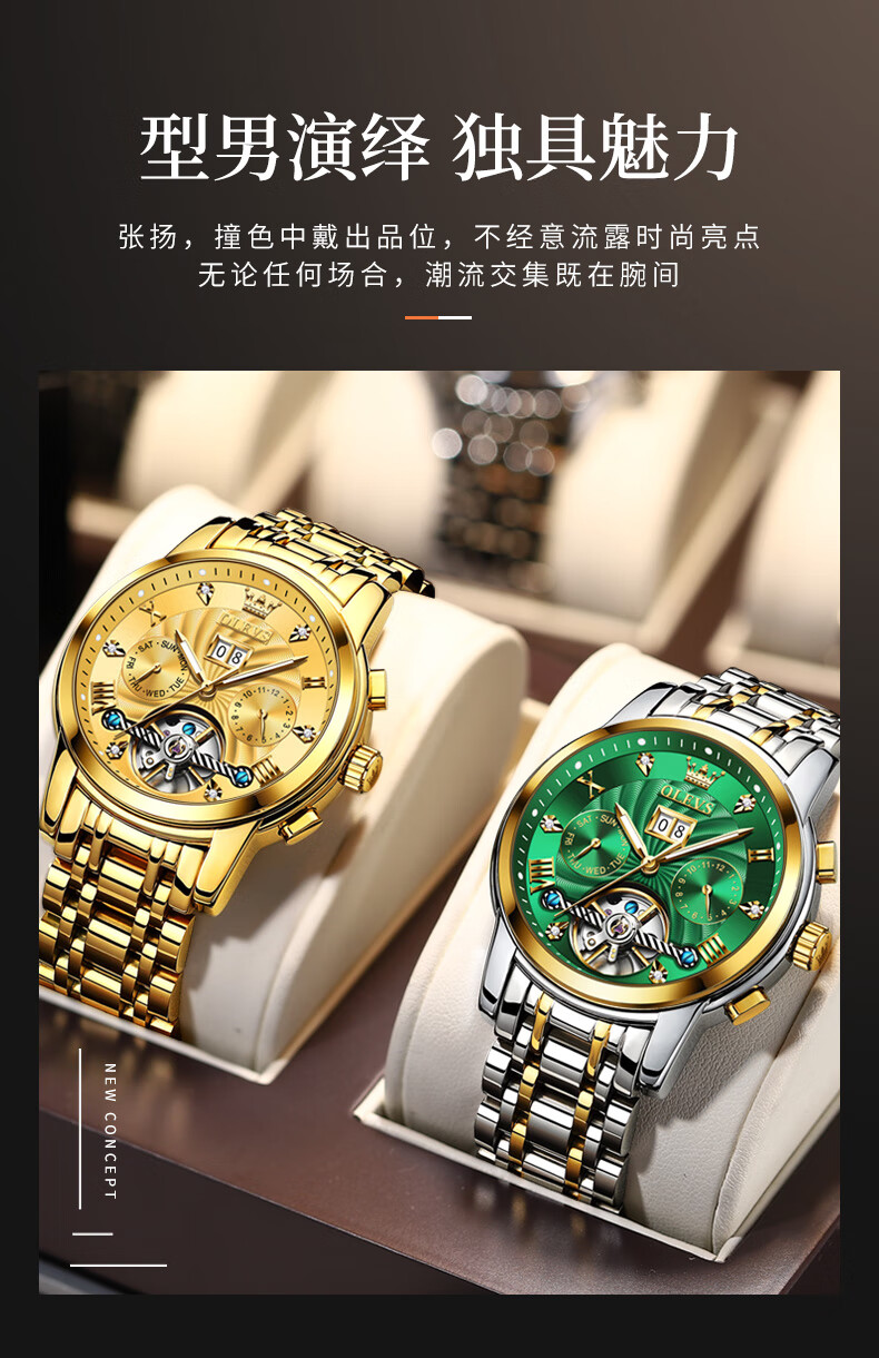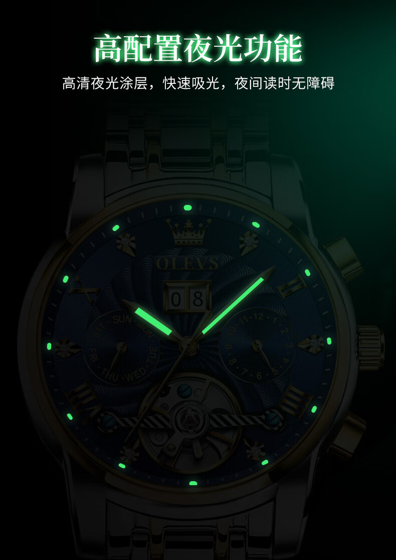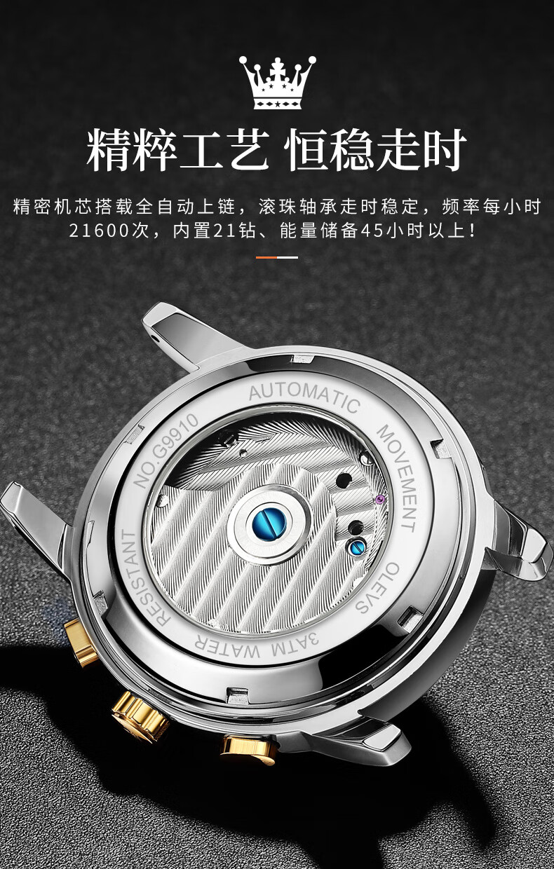 欧利时OLEVS 机械表 9910 瑞士认证品牌 全自动男士手表夜光防水潮流腕表