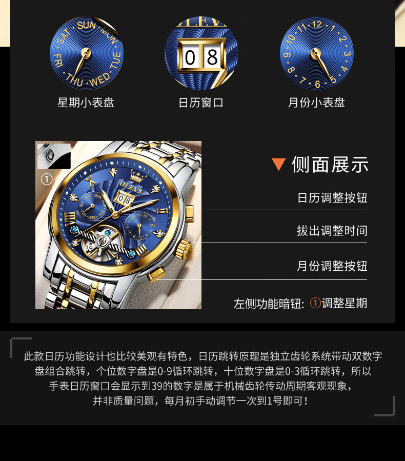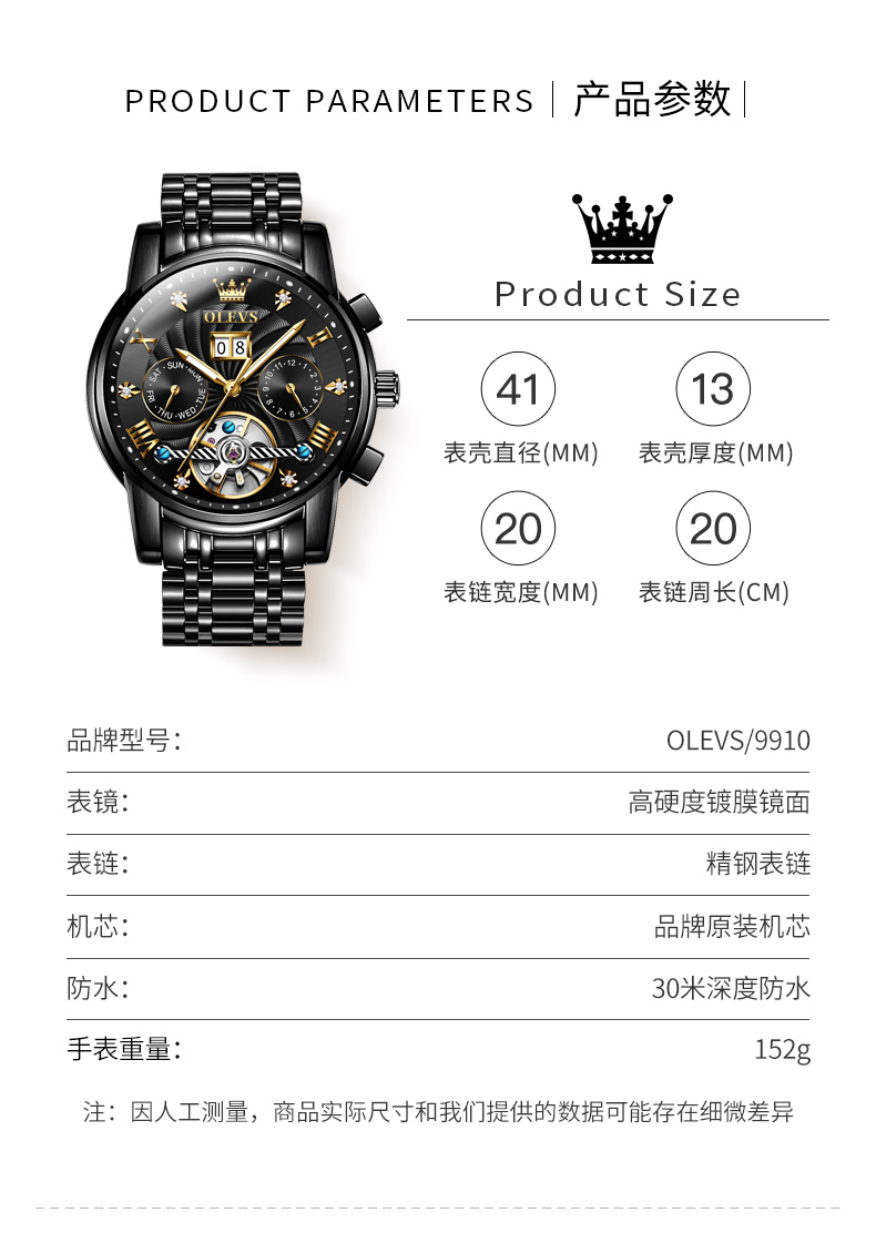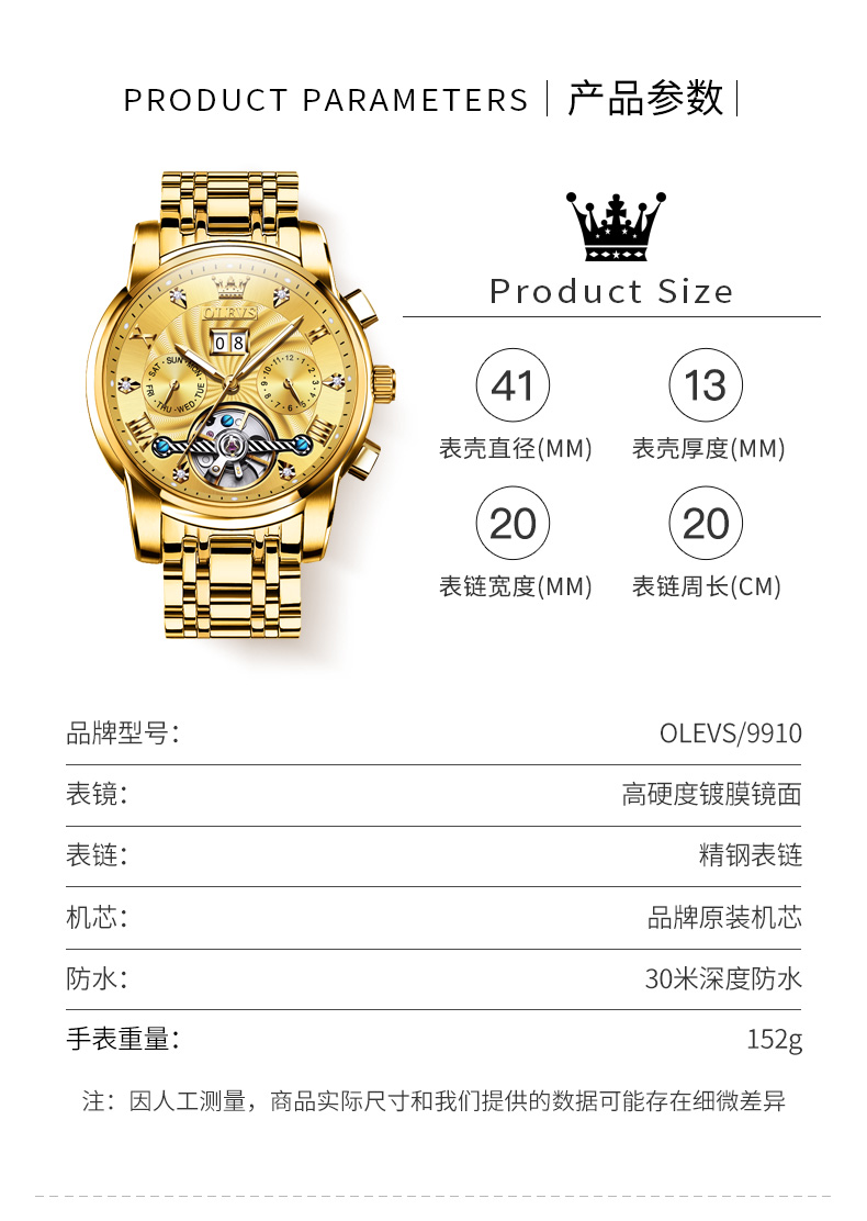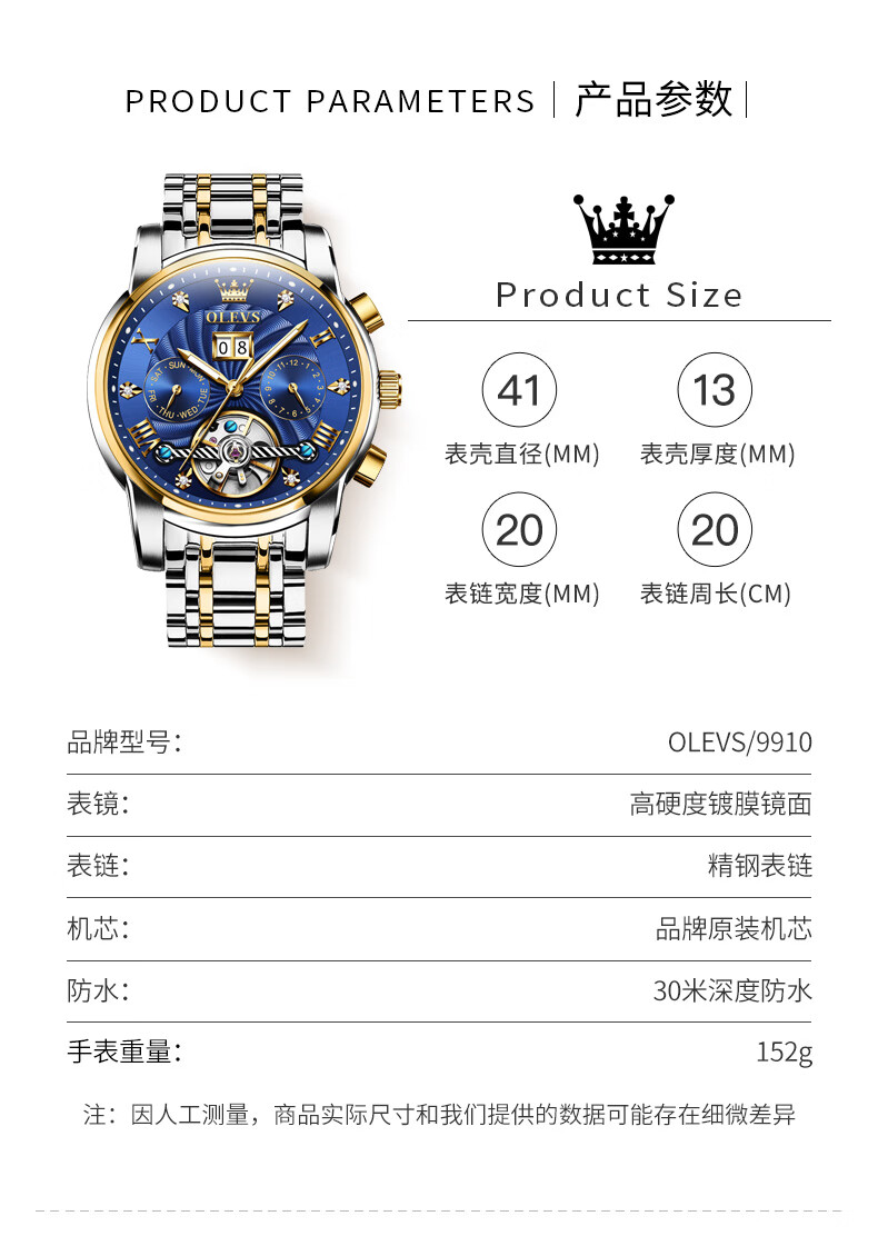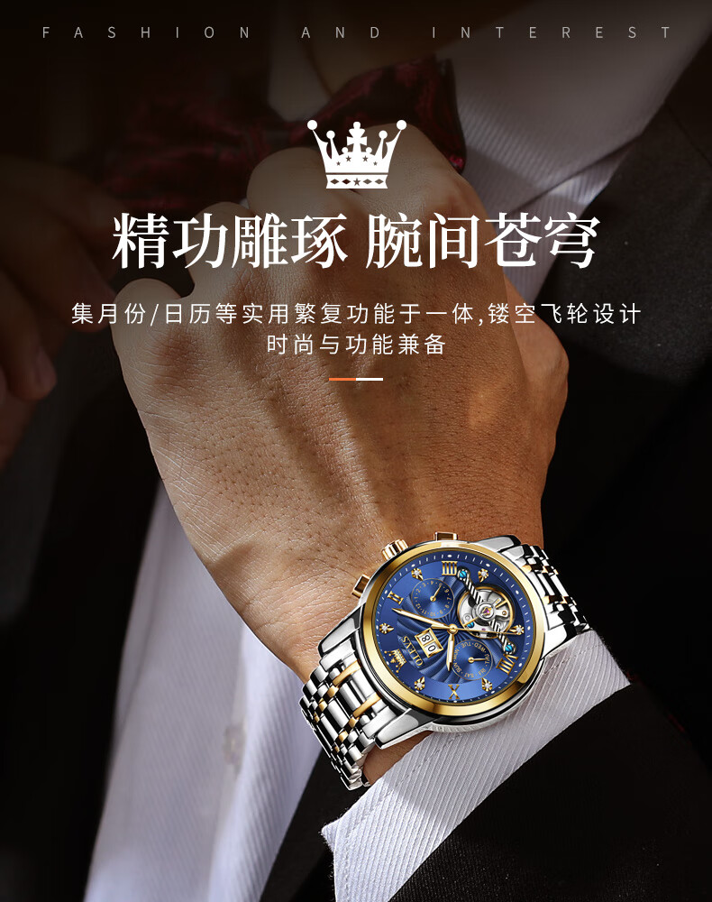欧利时OLEVS 机械表 9910 瑞士认证品牌 全自动男士手表夜光防水潮流腕表