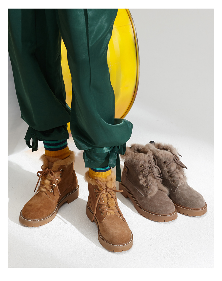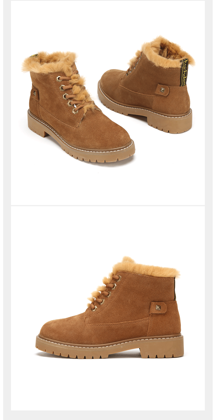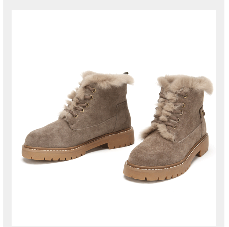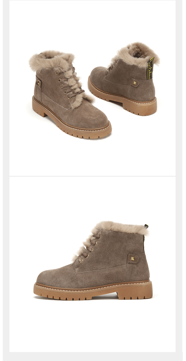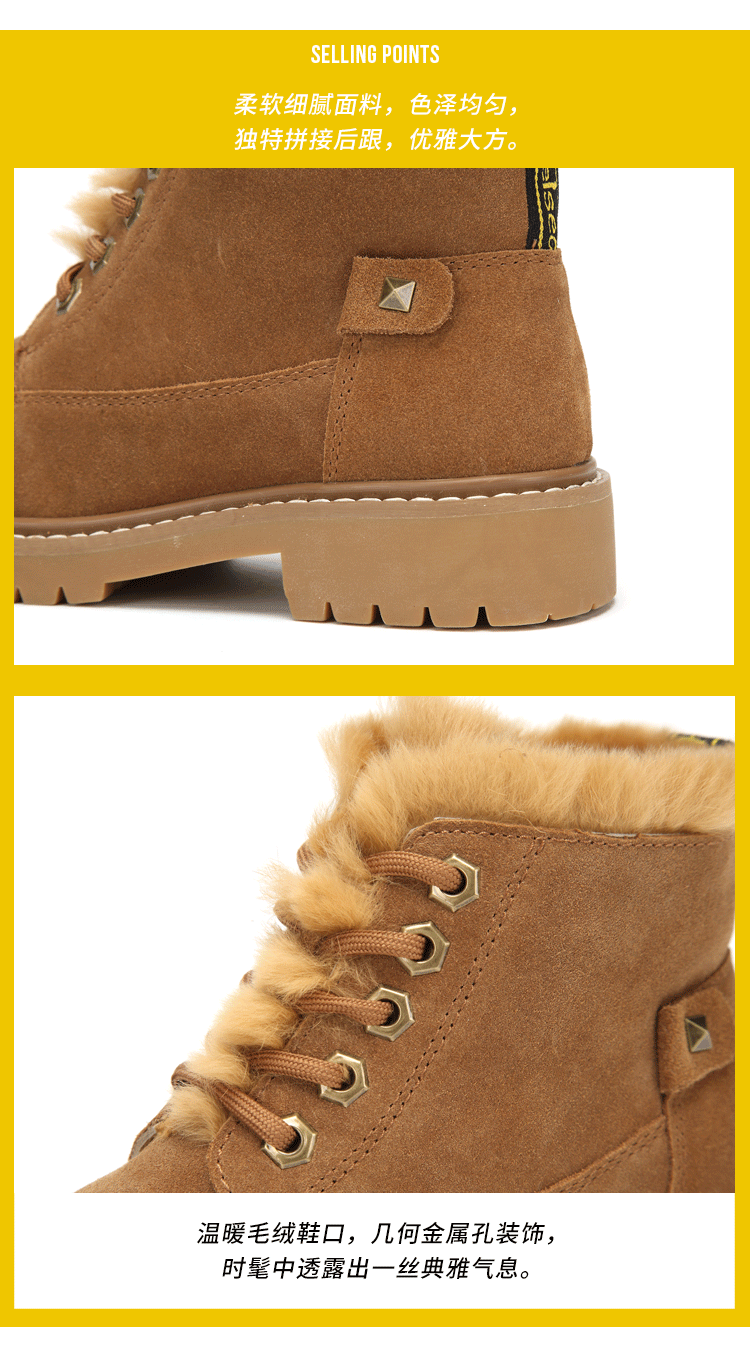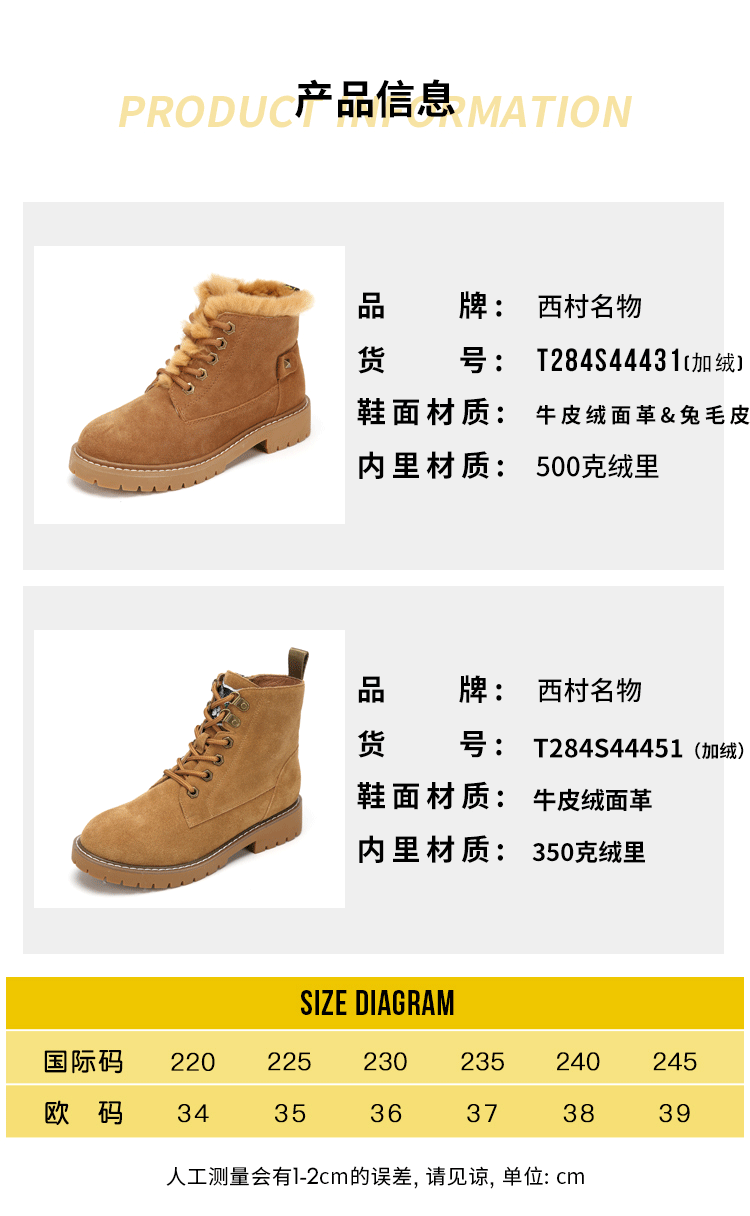 西村名物马丁靴女冬季新款加绒保暖短靴复古磨砂皮女鞋T284S44431