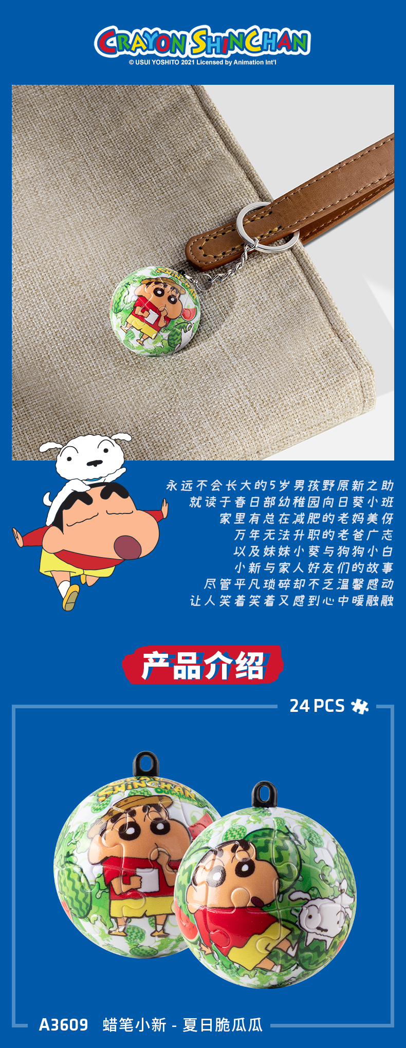24片 钥匙扣拼图 塑料拼图 A3609 蜡笔小新-夏日脆瓜瓜