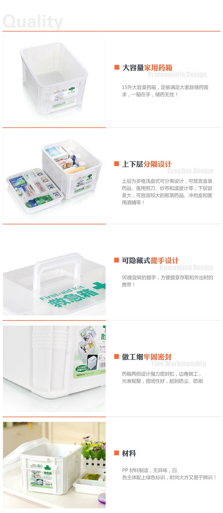 心选 日本制进口塑料多层医药箱 药品收纳盒多层急救小药箱
