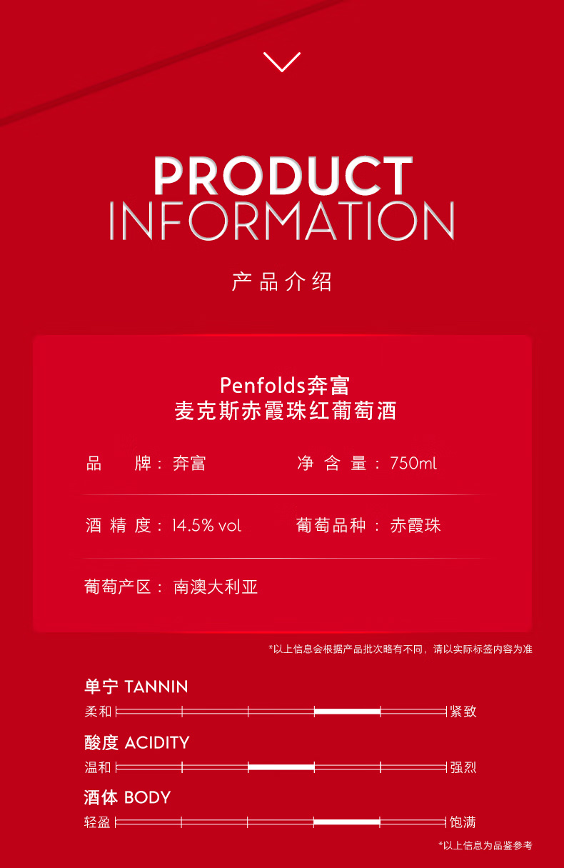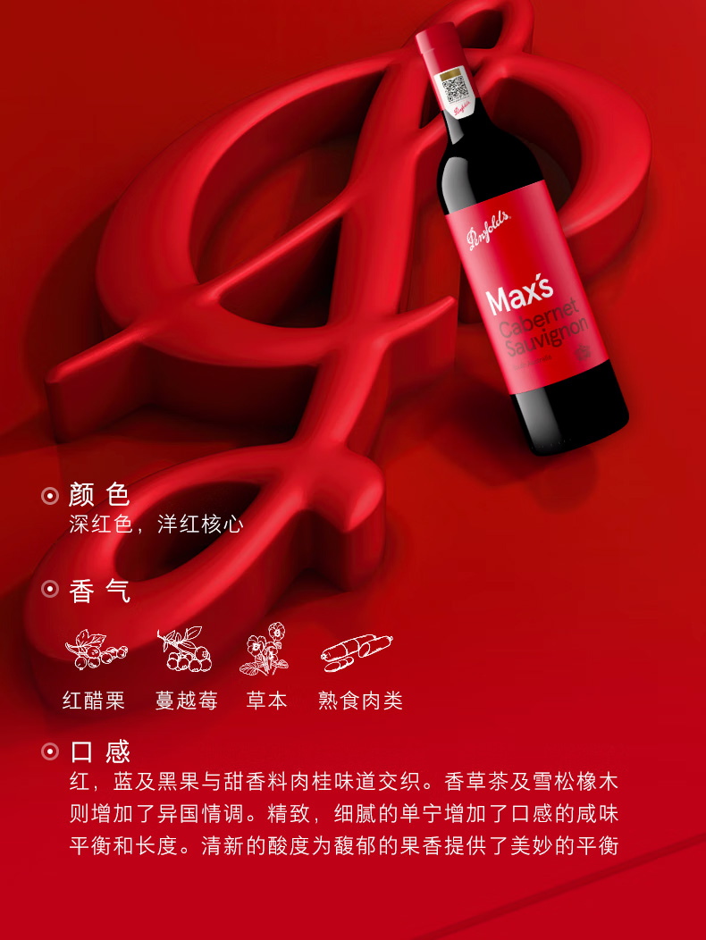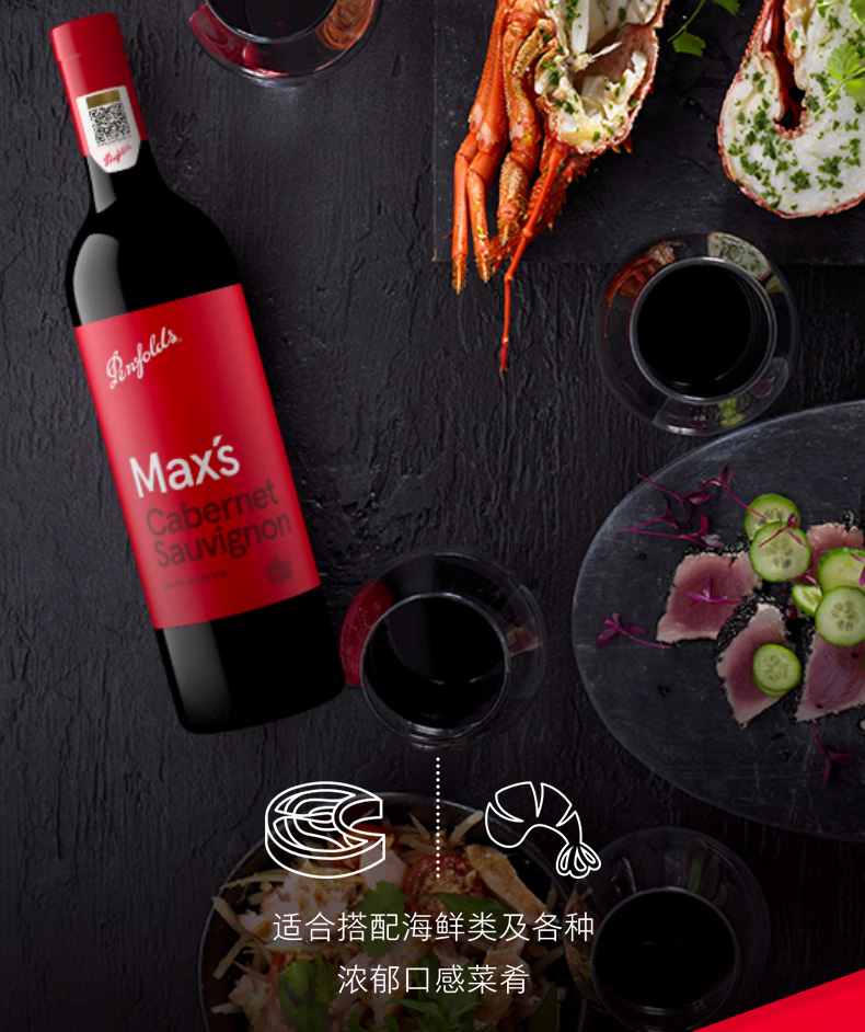 奔富麦克斯赤霞珠红葡萄酒750ml