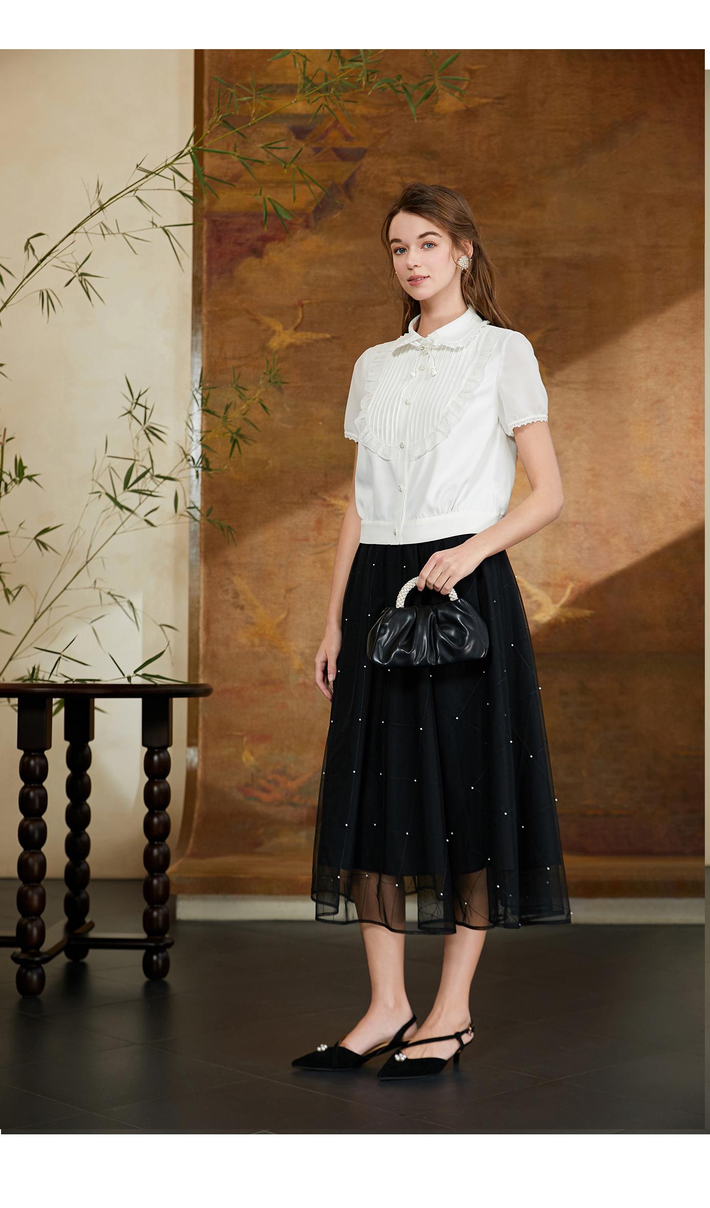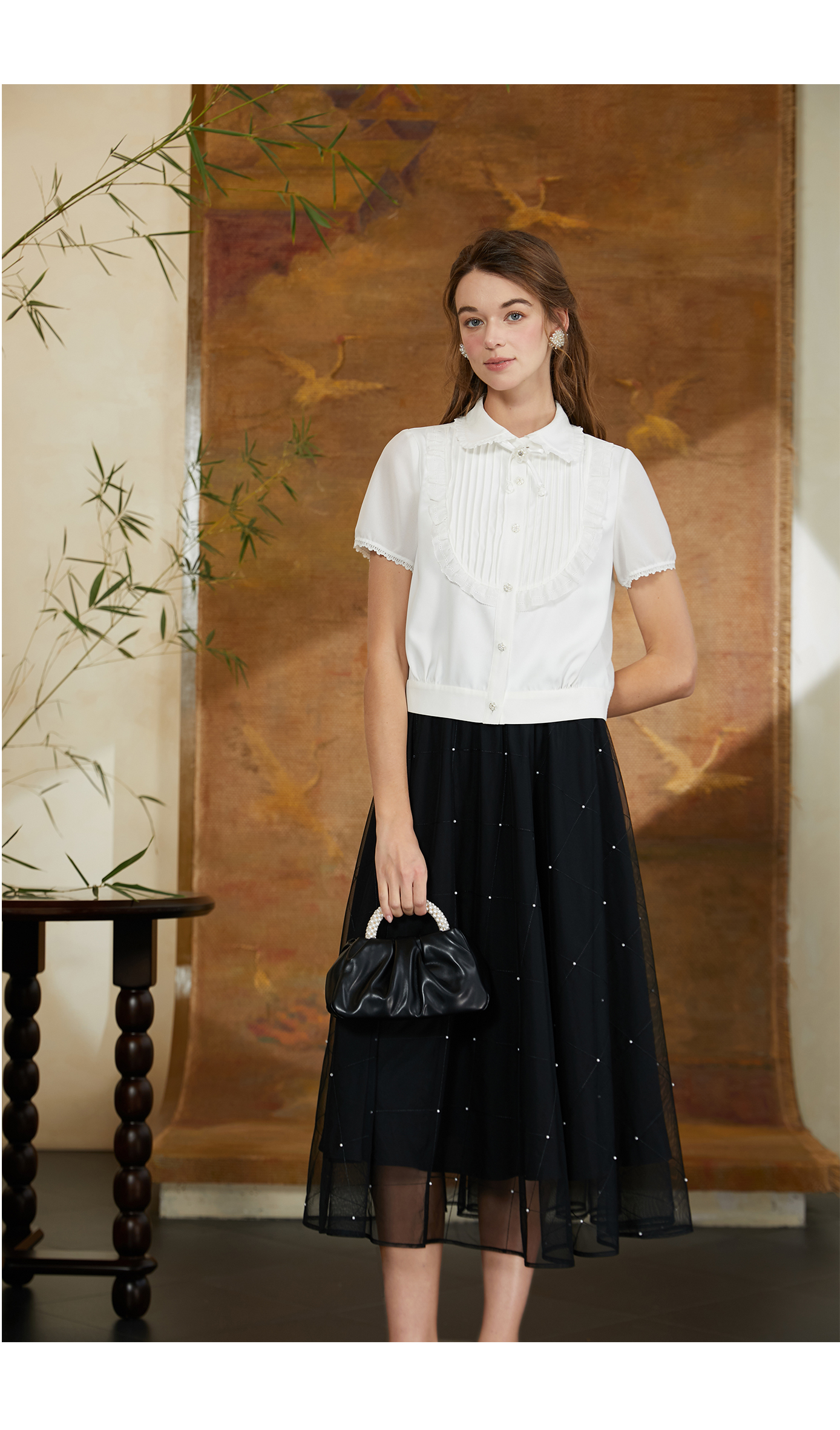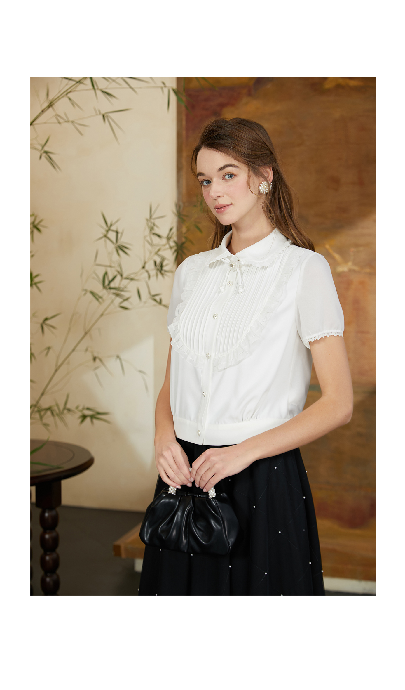 司歌短袖翻领衬衫女精致优雅T911071Y