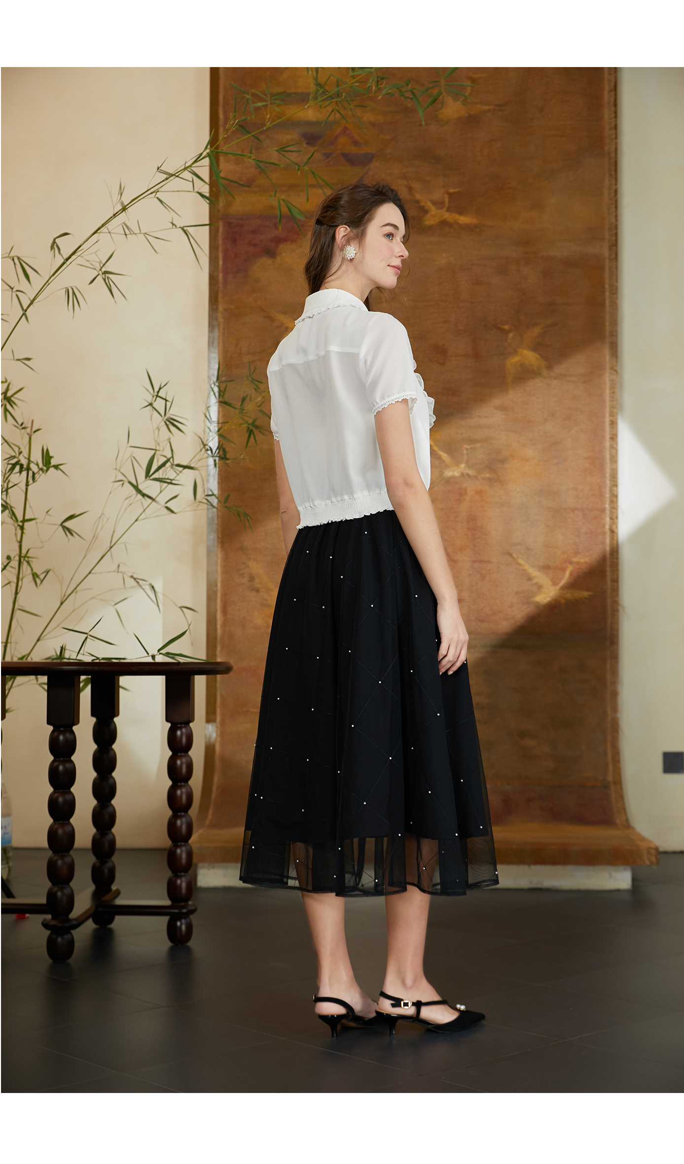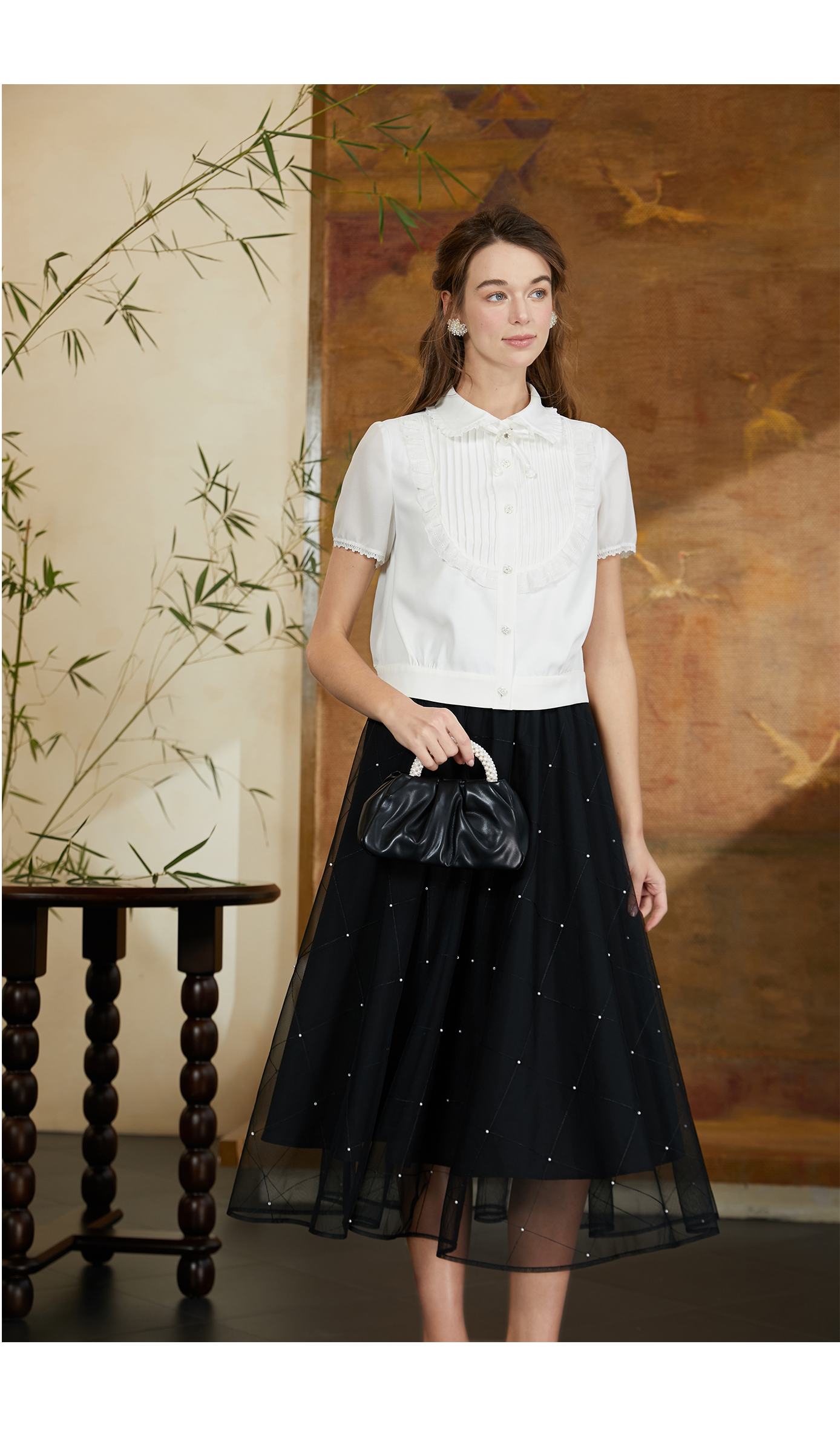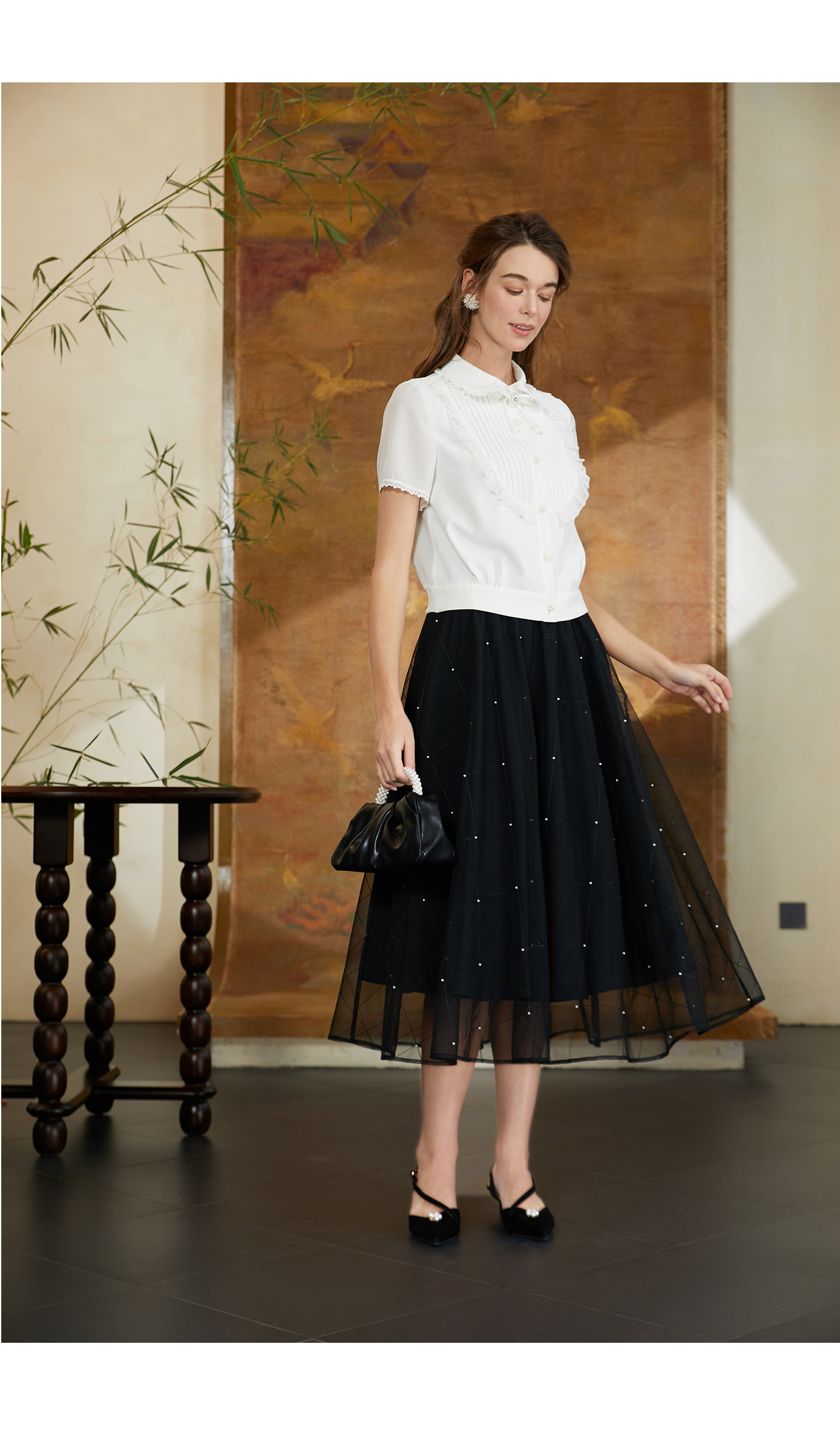 司歌短袖翻领衬衫女精致优雅T911071Y