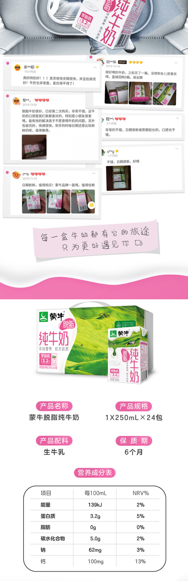 蒙牛脱脂纯牛奶利乐包250ml×24包
