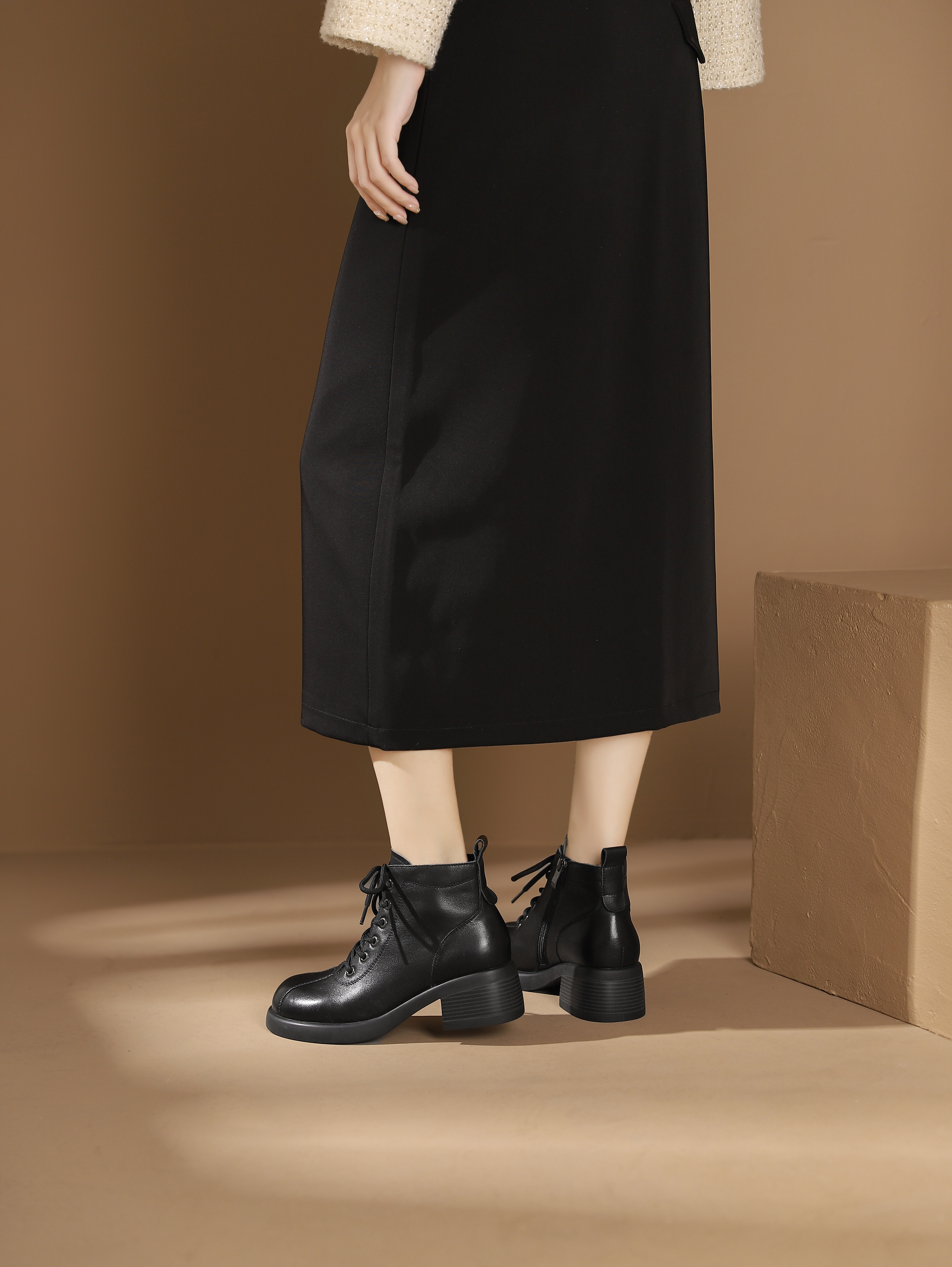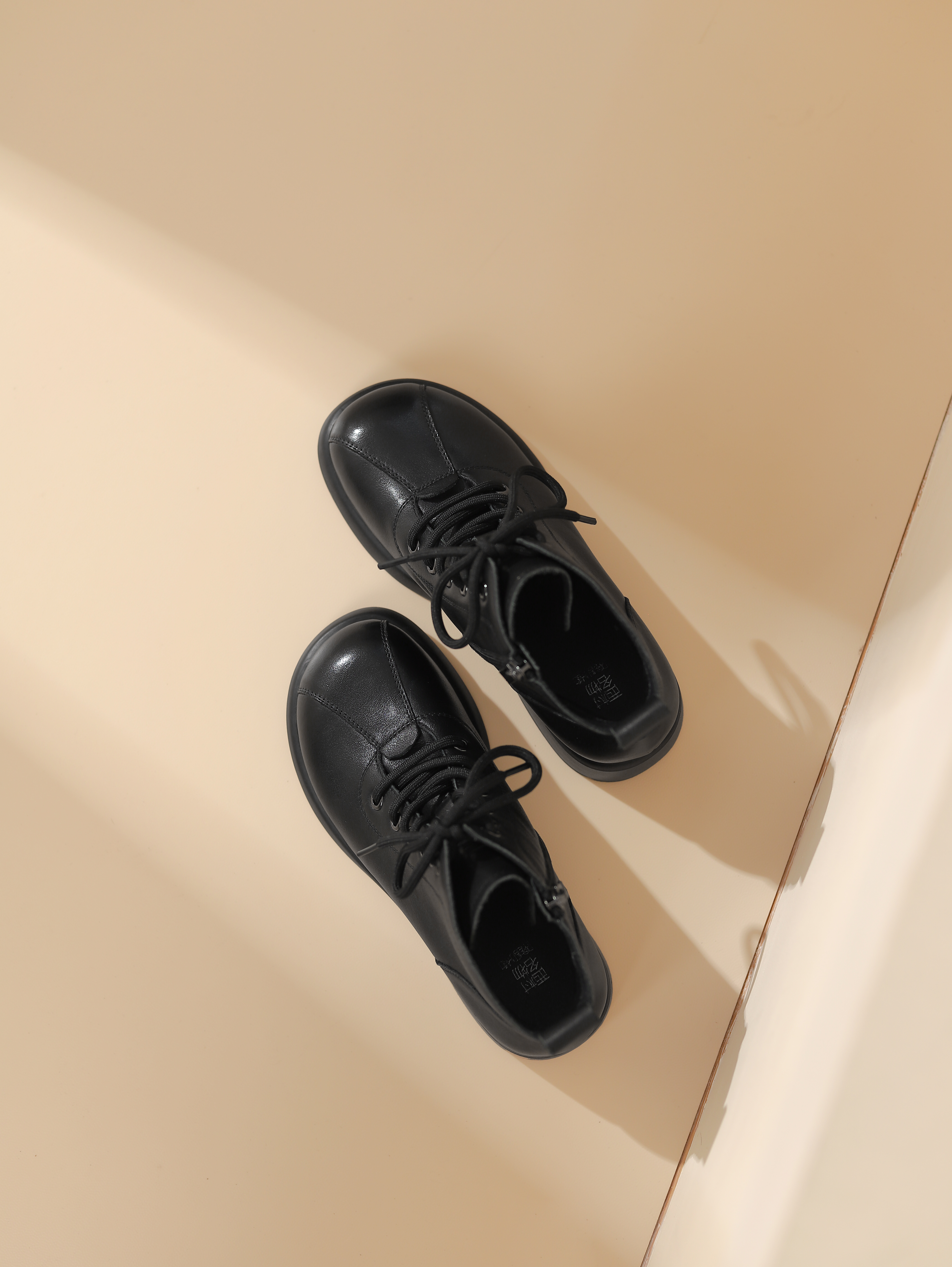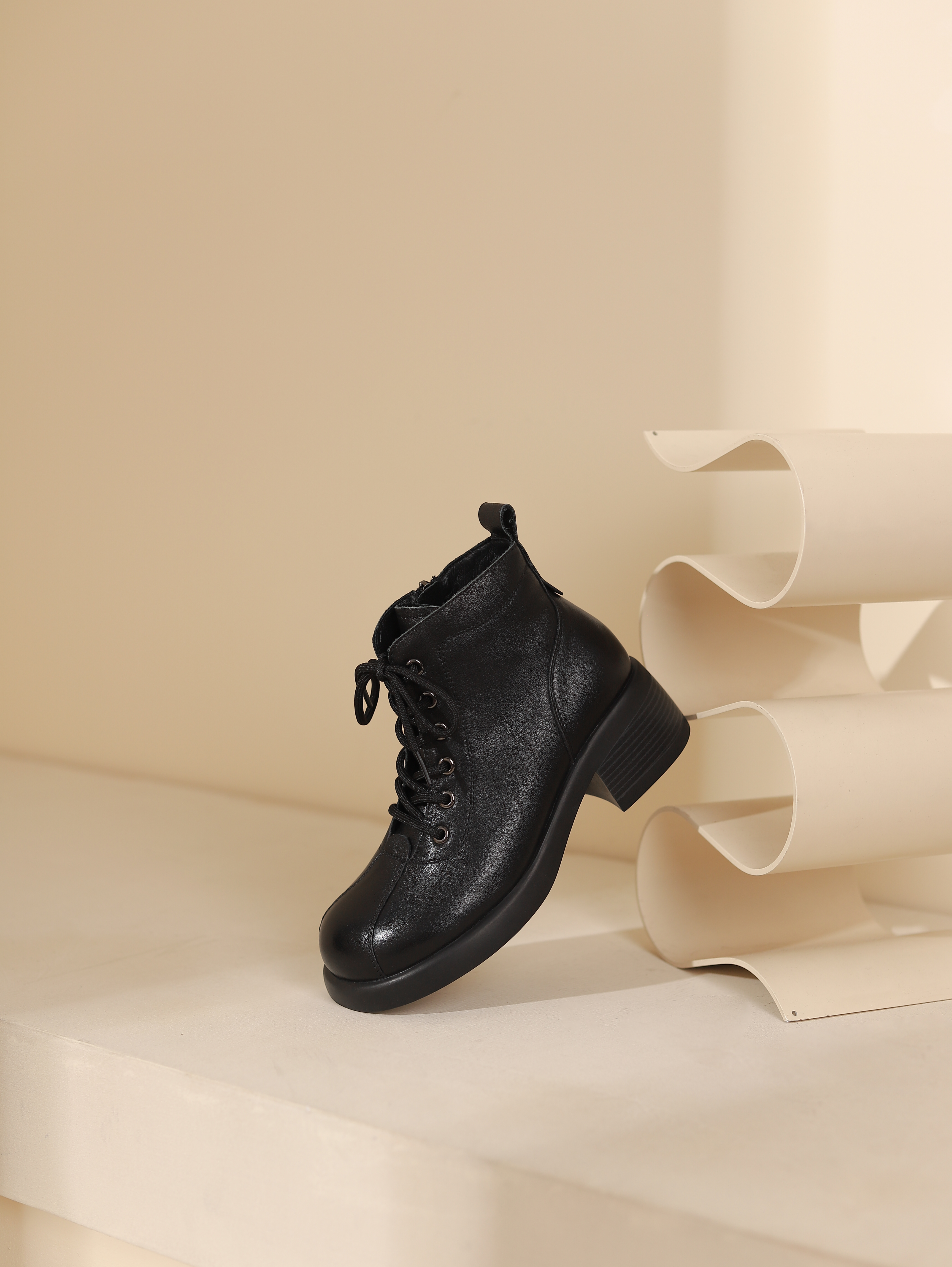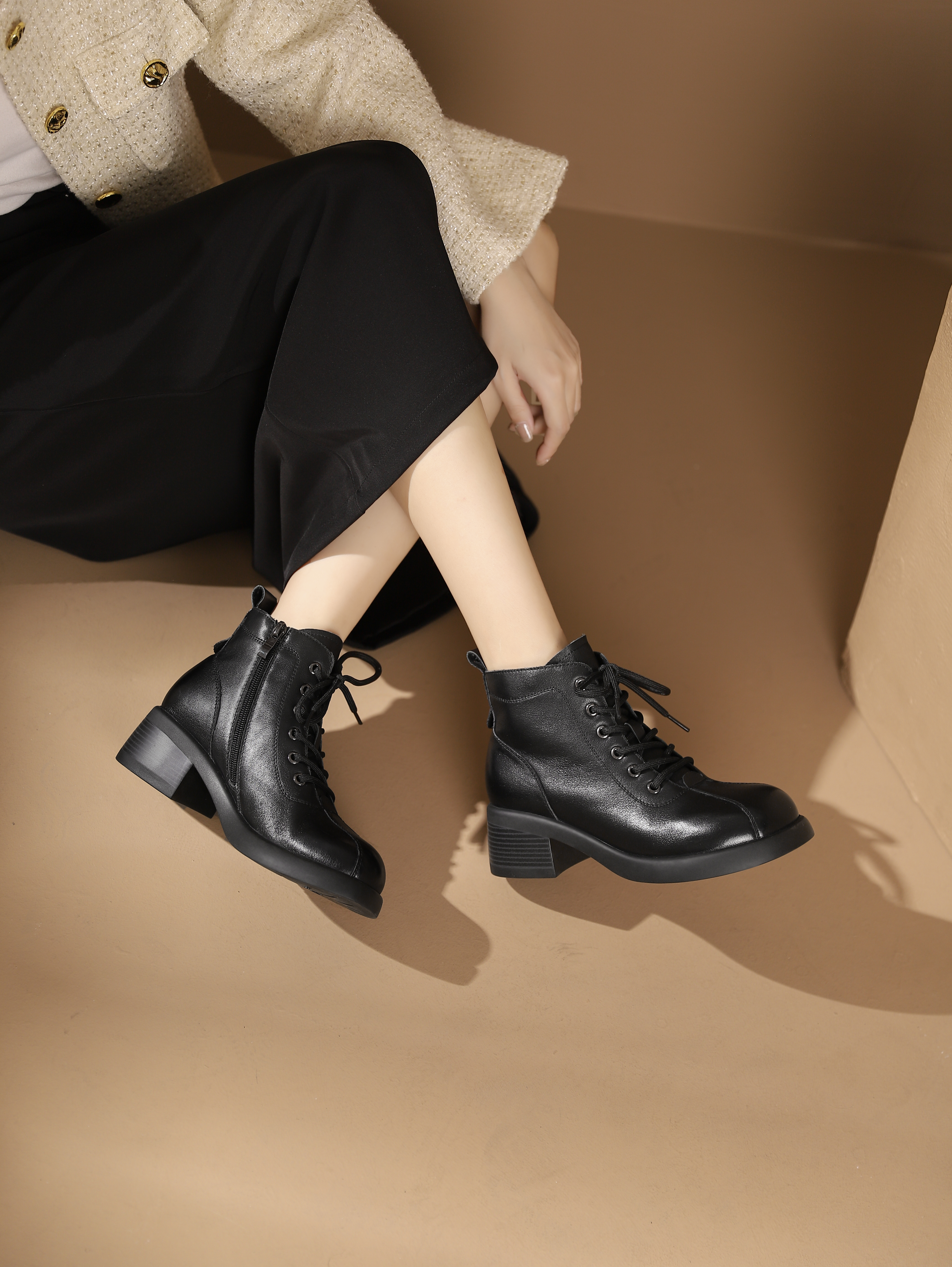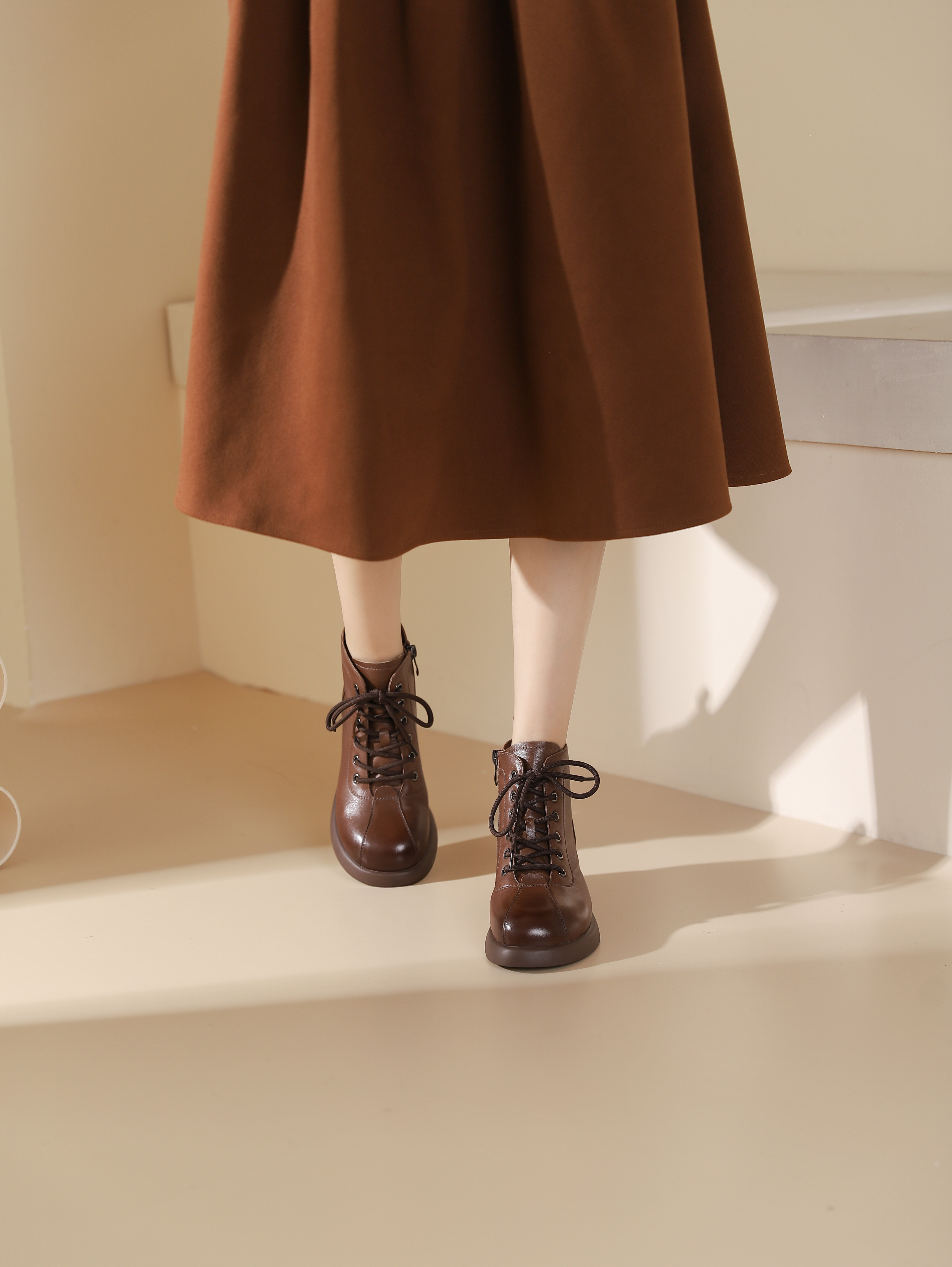 西村名物2023秋季新品复古圆头粗跟裸靴系带短靴马丁靴X23DS46511
