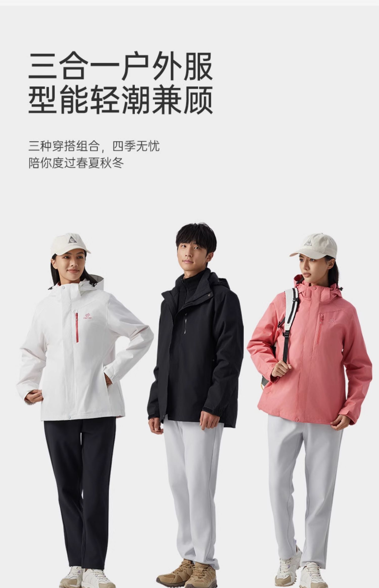 【史低!159秒杀!】探拓户外冲锋衣女三合一外套男冬季加厚保暖可拆卸防水防风登山服