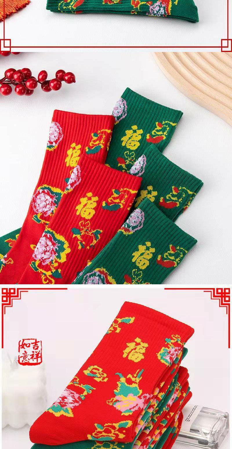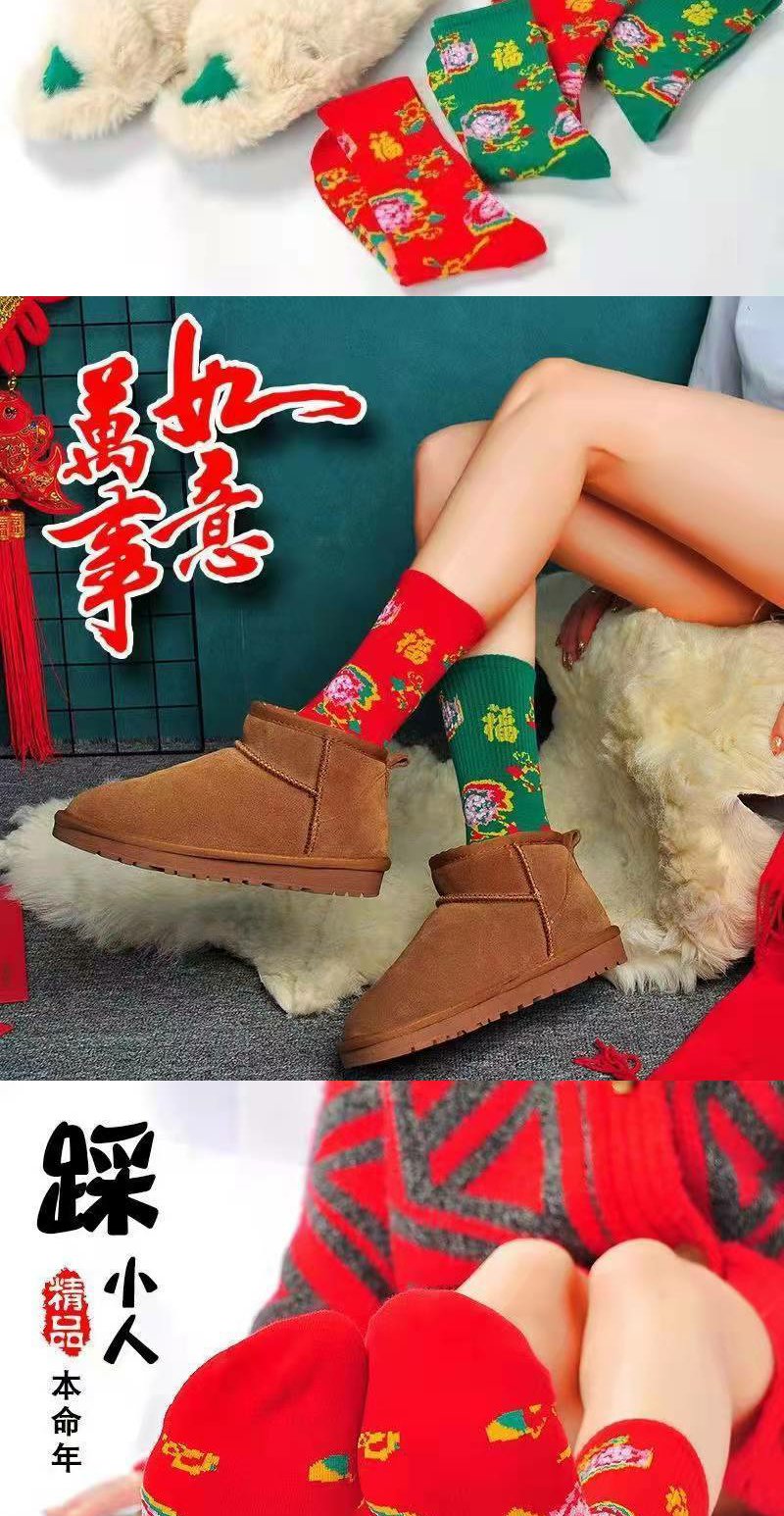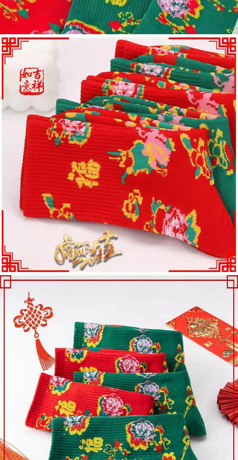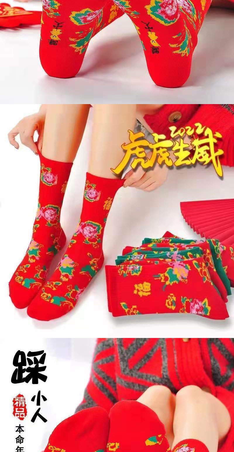袜子男女红袜子本命年踩小人秋冬款东北大花袜国潮风