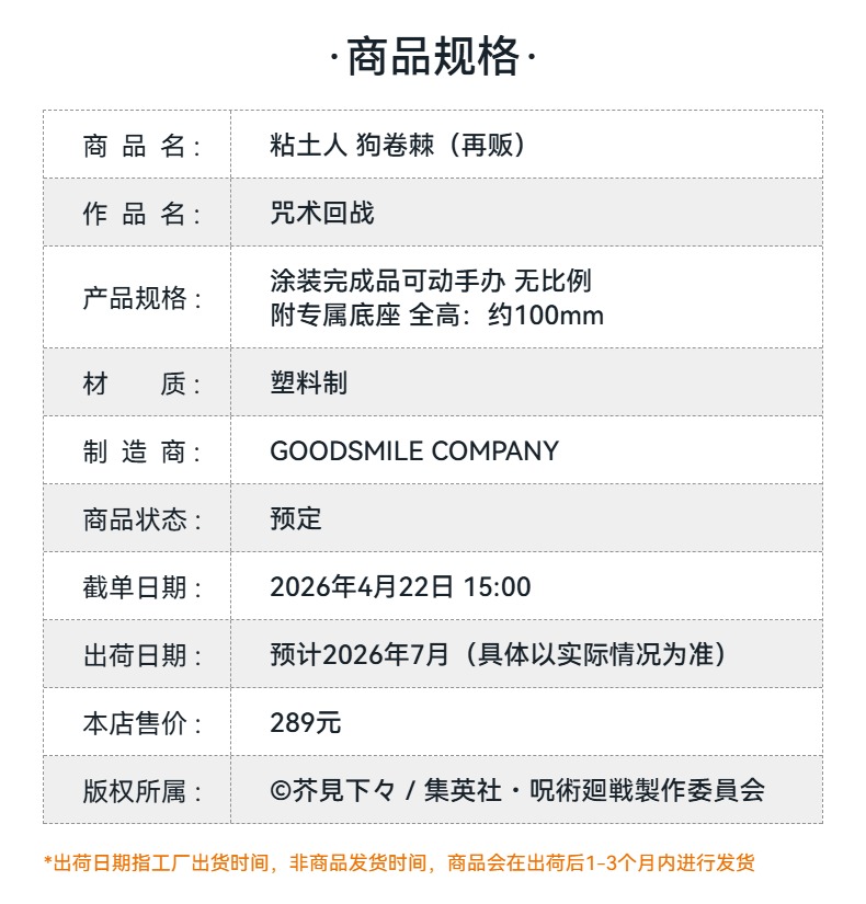 【GSC预售定金】粘土人 狗卷棘 咒术回战 手办模玩