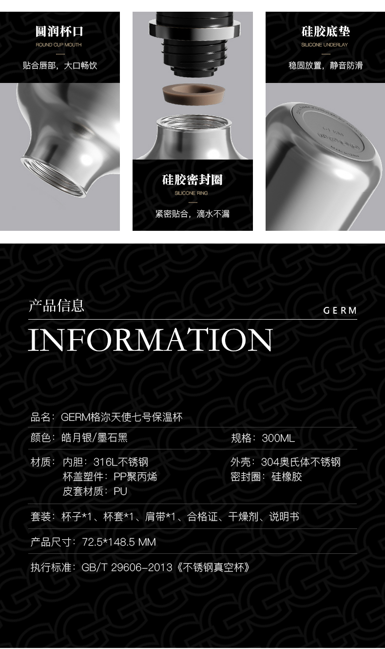 GERM【天使7号杯】高档便携式316水杯镜炫保温杯 AY