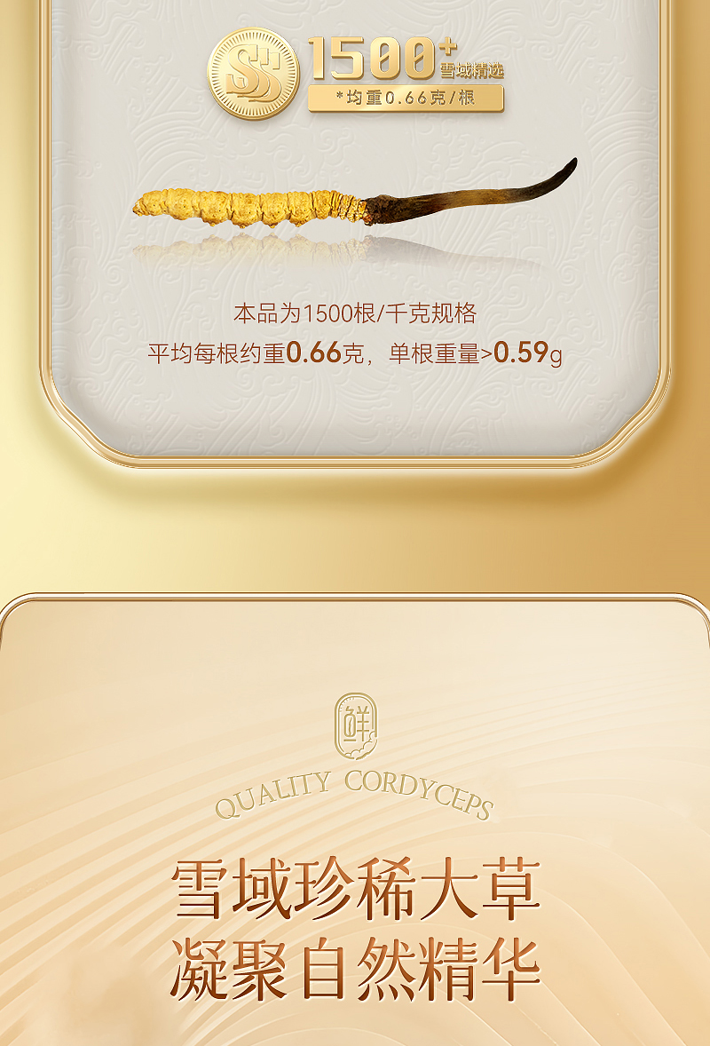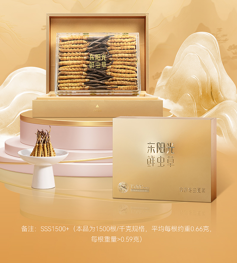 东阳光冬虫夏草 锁鲜虫草50克装(SSS1500+)小金砖礼盒