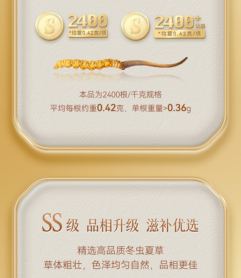 东阳光冬虫夏草 锁鲜虫草(S2400)60克装 2-3根/克 【锁鲜虫草 滋补礼盒】