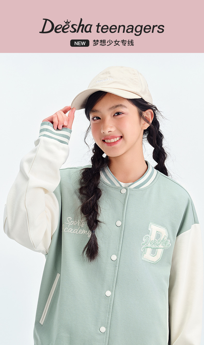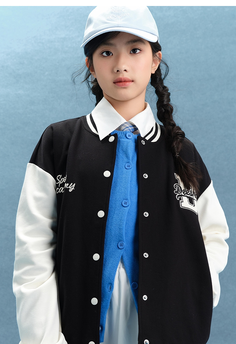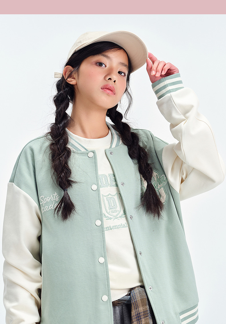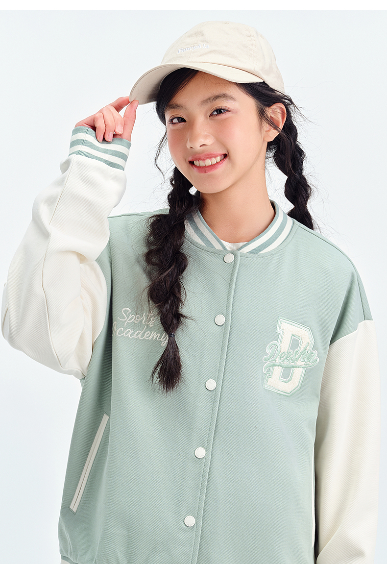 笛莎Deesha青少年女童外套2025春季女童撞色绣花棒球外套