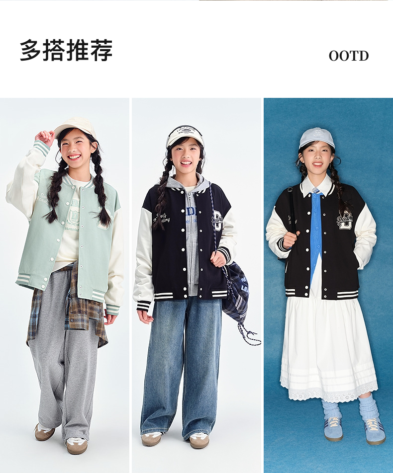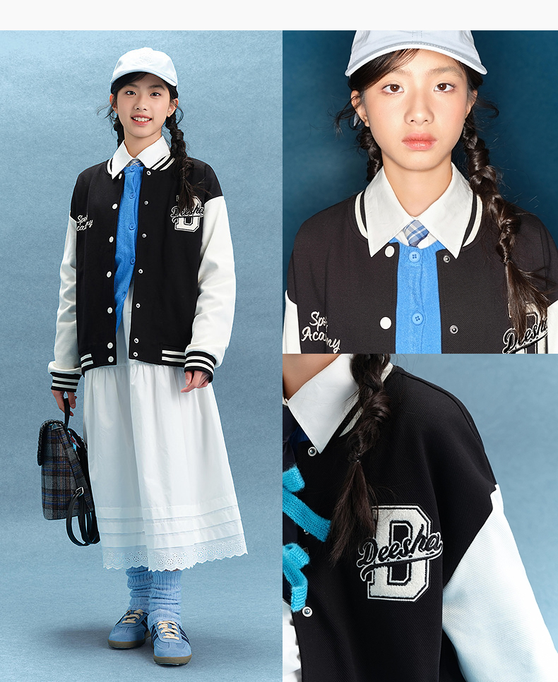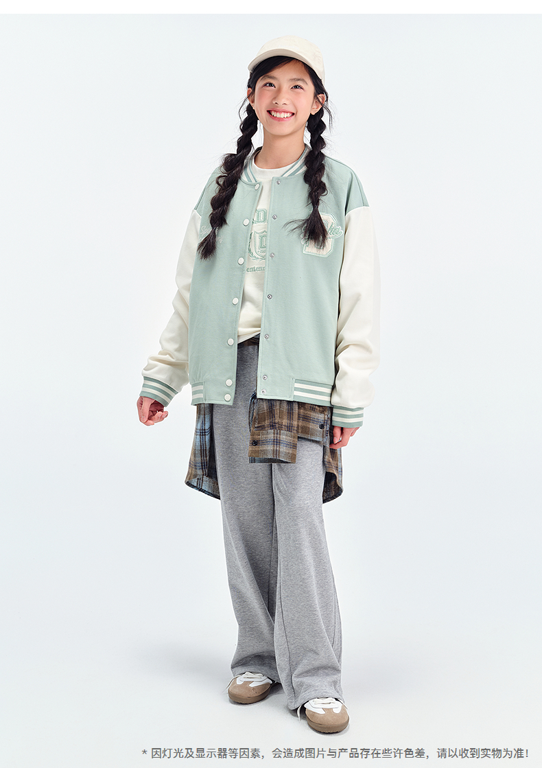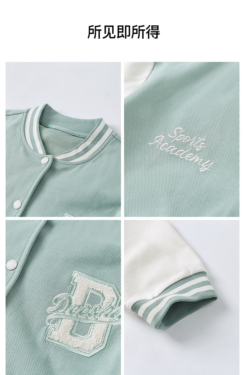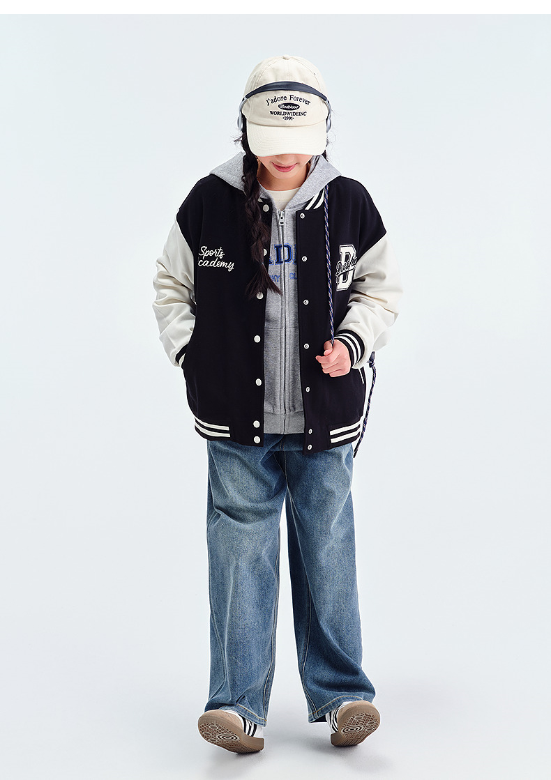 笛莎Deesha青少年女童外套2025春季女童撞色绣花棒球外套