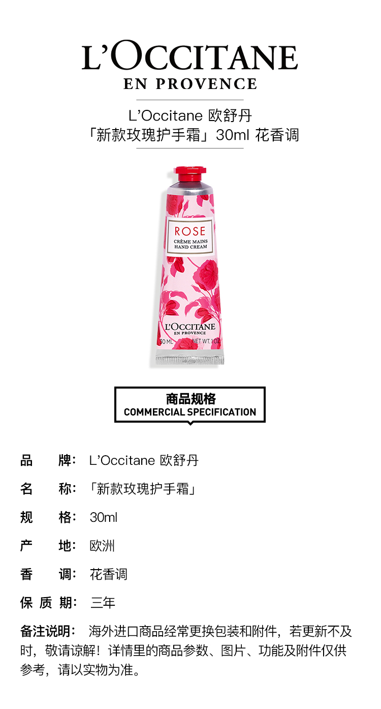 L'Occitane 欧舒丹新款玫瑰护手霜30mlx2支装 花香调