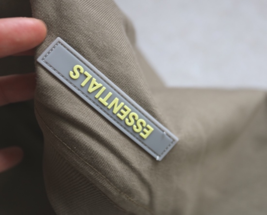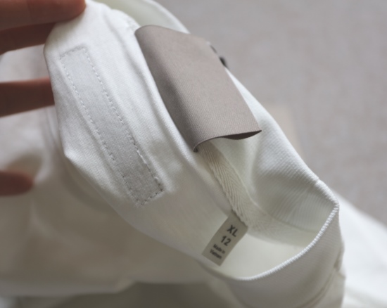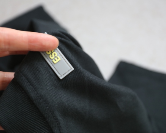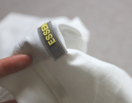 有吊牌 领标旁还有个码数小标 上面字母 都是硅胶的 有明显突起